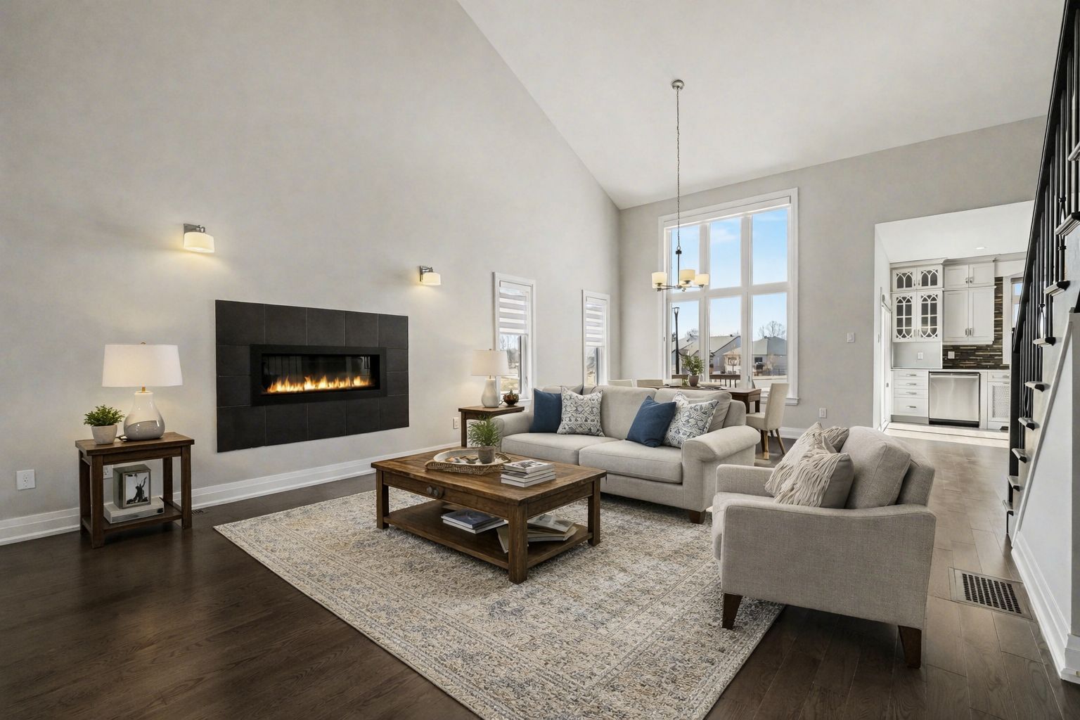• Inviting living room featuring a cozy fireplace for relaxation.
