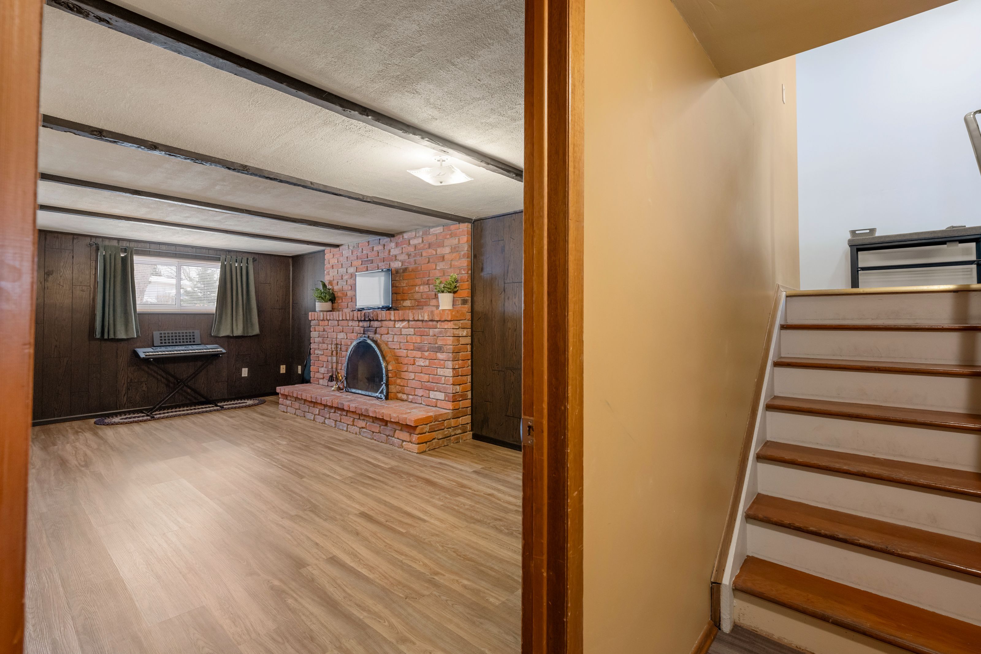 Incredible opportunity on hamilton's desirable west mountain. Proudly owned by the same family for decades, this well-maintained bungalow sits on an impressive 57 ft x 210 ft lot,offering space, privacy, and endless potential. The 1,113 sq ft main floor features 3 bedrooms, a 4-piece bath, kitchen, dining room, and a bright living room-ideal for family gatherings. The finished basement adds valuable additional space with a recreation room featuring a wood-burning fireplace, fourth bedroom, den, 4-piece bathroom, and laundry area. A detached 1. 5-car garage and long driveway provide parking for up to 10 vehicles-a rare find. Enjoy a fenced backyard, perfect for kids, pets, and entertaining. Located in a sought-after, family-friendly neighbourhood close to schools, parks, shopping,transit, and easy highway access. A solid home on an exceptional lot in a prime west mountain location-don't miss out on this opportunity.