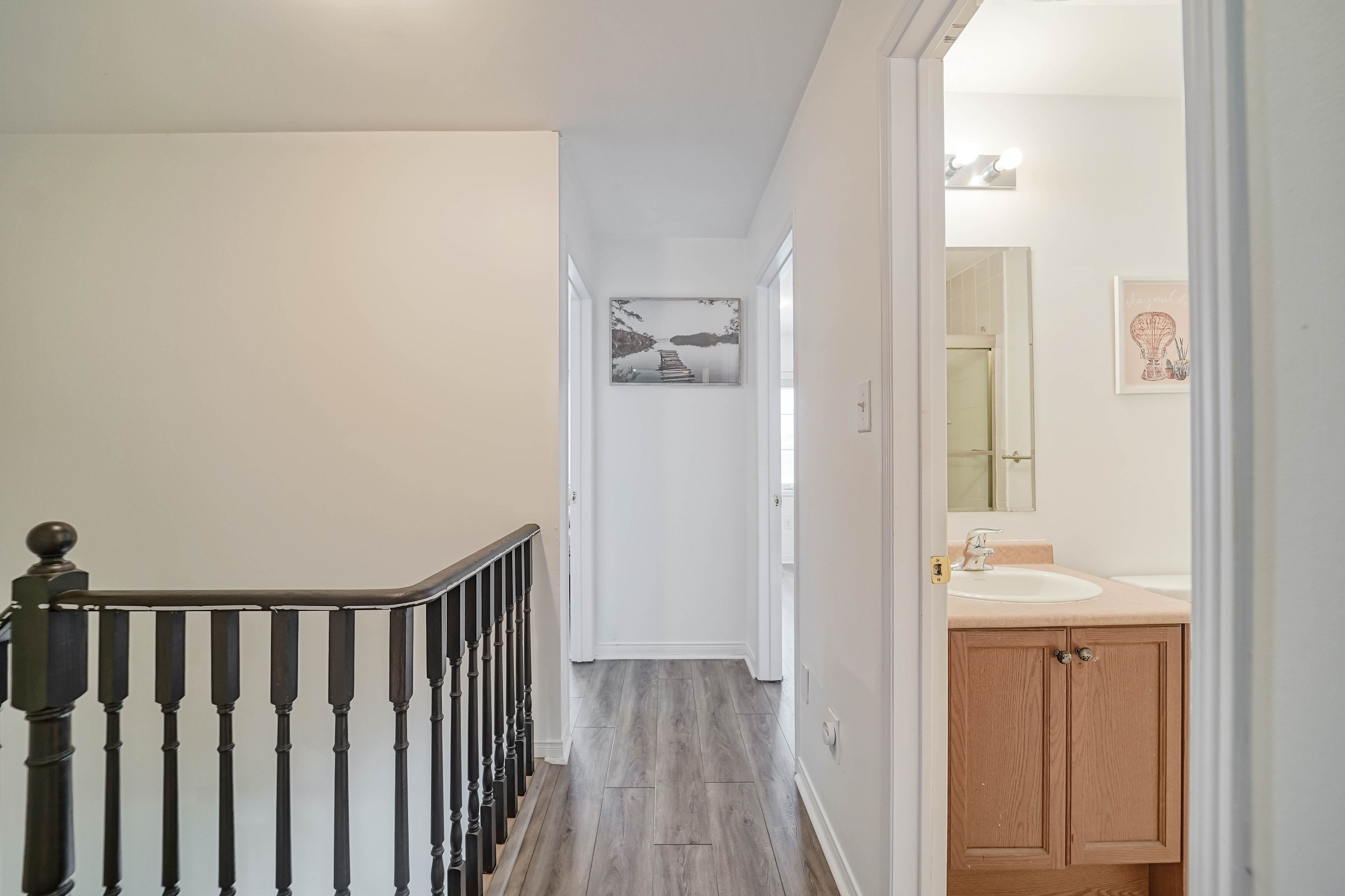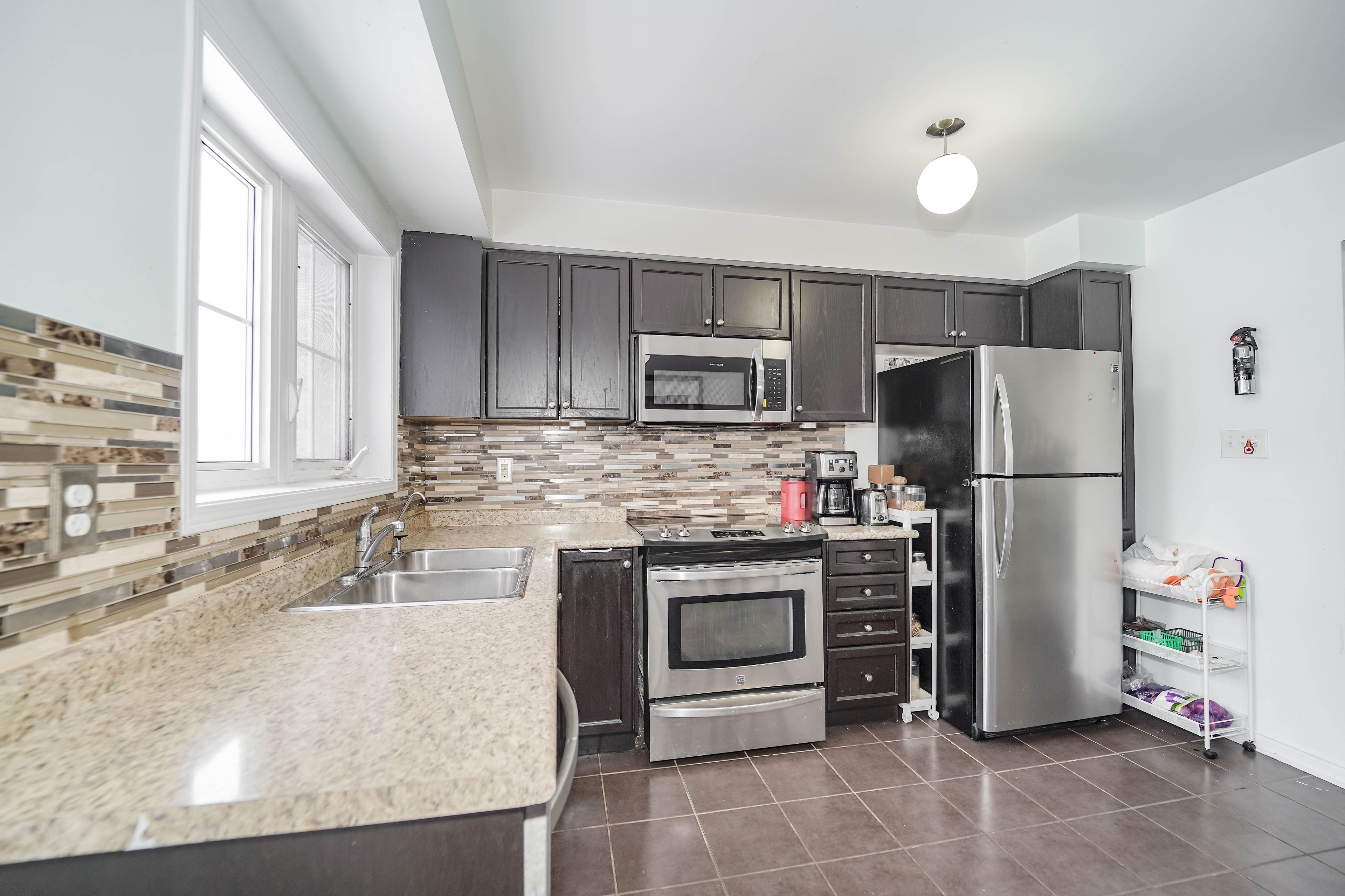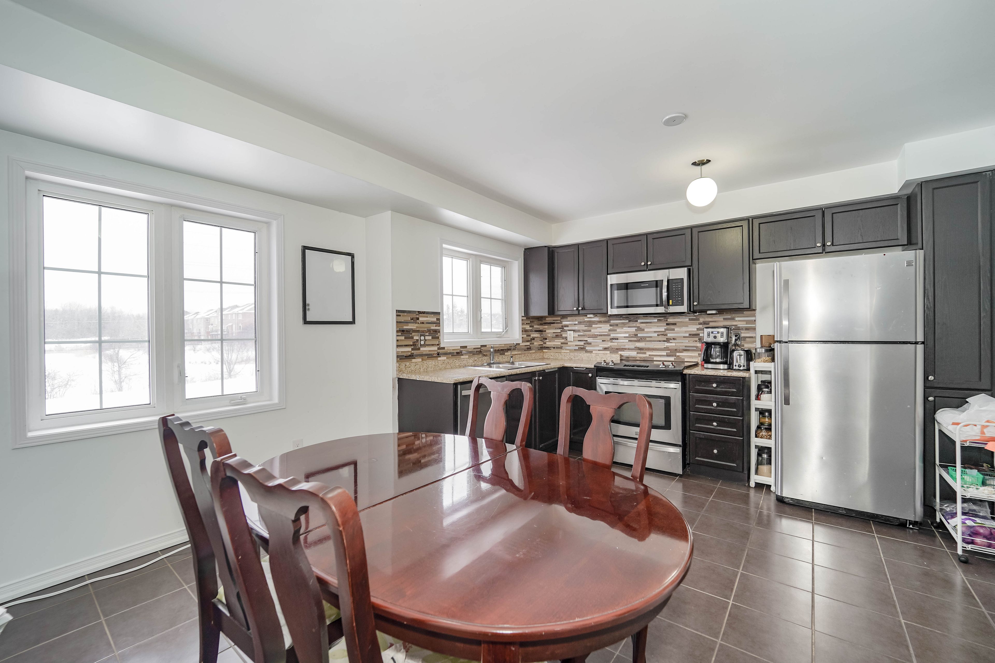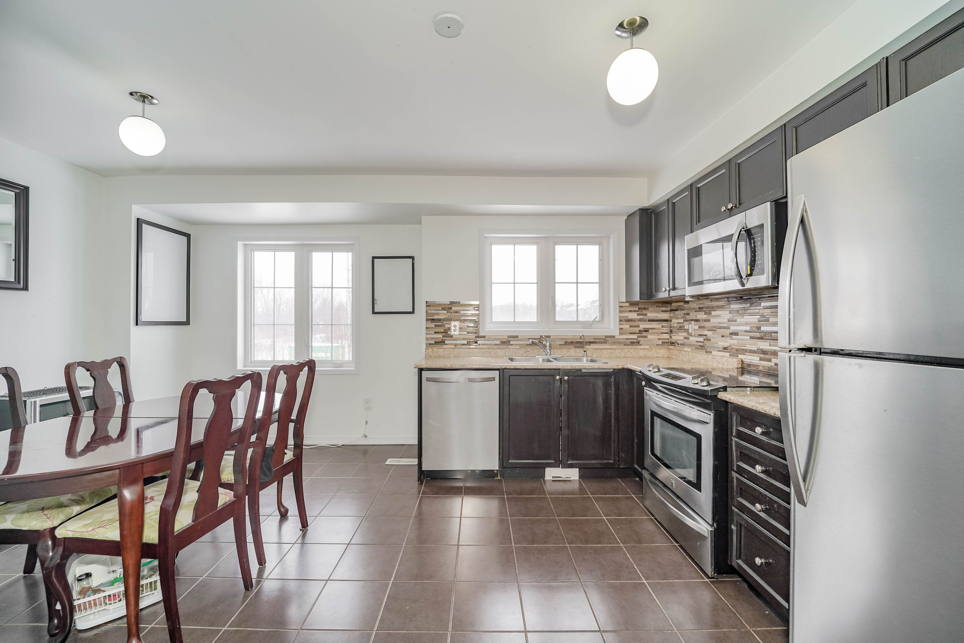 Bright and spacious open-concept townhome featuring 3 generous bedrooms and 3 bathrooms in a prime central ajax location. This well-maintained home offers two convenient entrances from both the front and back. The north-facing windows overlook a beautiful pond and park, providing peaceful views and plenty of natural light. Enjoy seamless indoor-outdoor living with a walkout to a private terrace from the living area. The kitchen features a large breakfast area, perfect for family meals and entertaining. Hardwood flooring throughout the second floor, with laminate flooring on the ground level and in all bedrooms. The primary bedroom includes a walk-in closet and an upgraded 3-piece ensuite. Additional highlights include direct access to the garage from inside the home for added convenience. The property includes 1 parking space in the garage and 1 driveway parking space. The home also features a basement area that can be used for additional storage. Ideally located minutes to highways 401 and 407, public transit, schools, shopping, audley recreation centre, amazon fulfillment centre, and many everyday amenities. Steps to schools and parks, making it a great location for families and commuters alike.