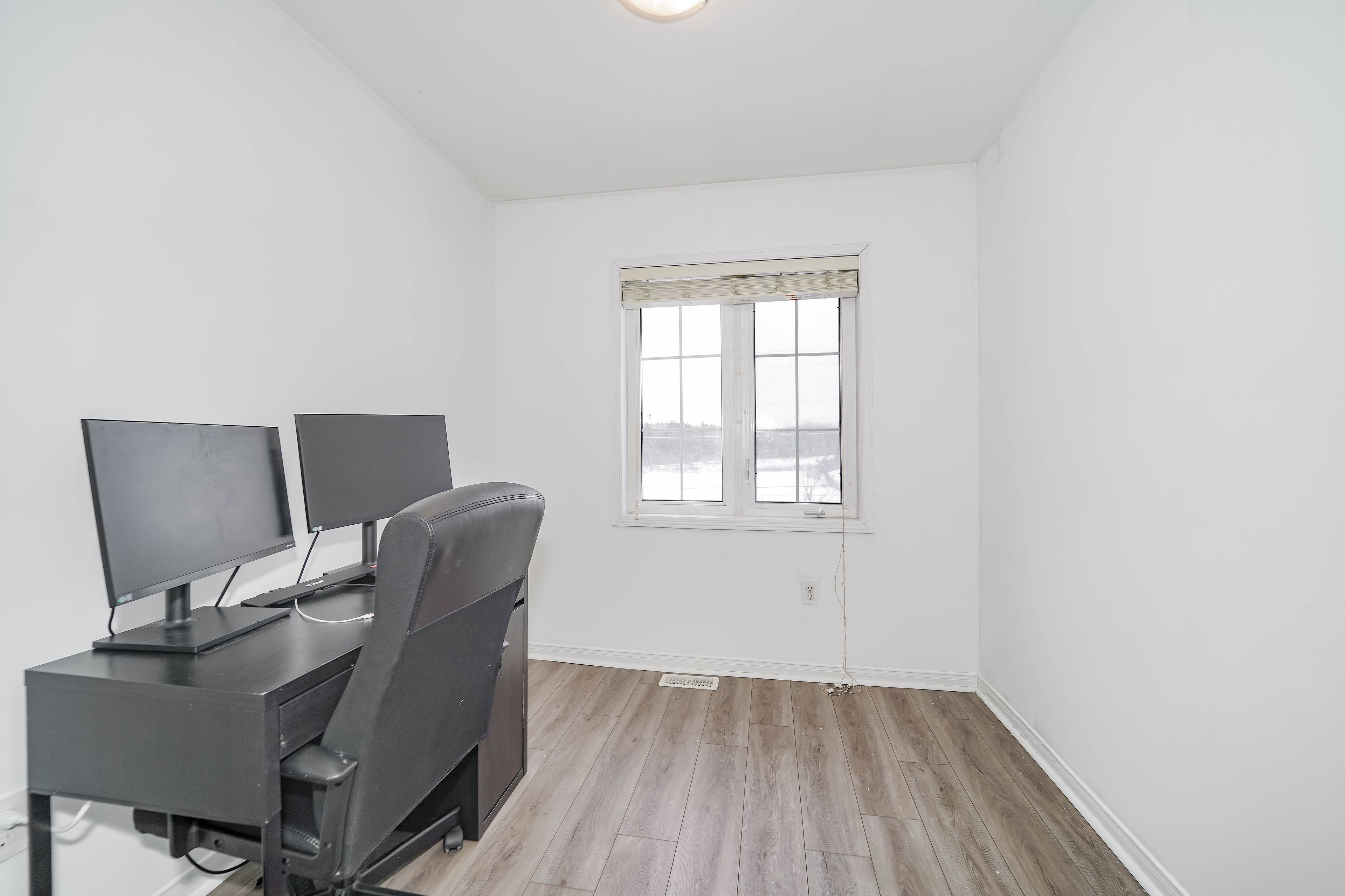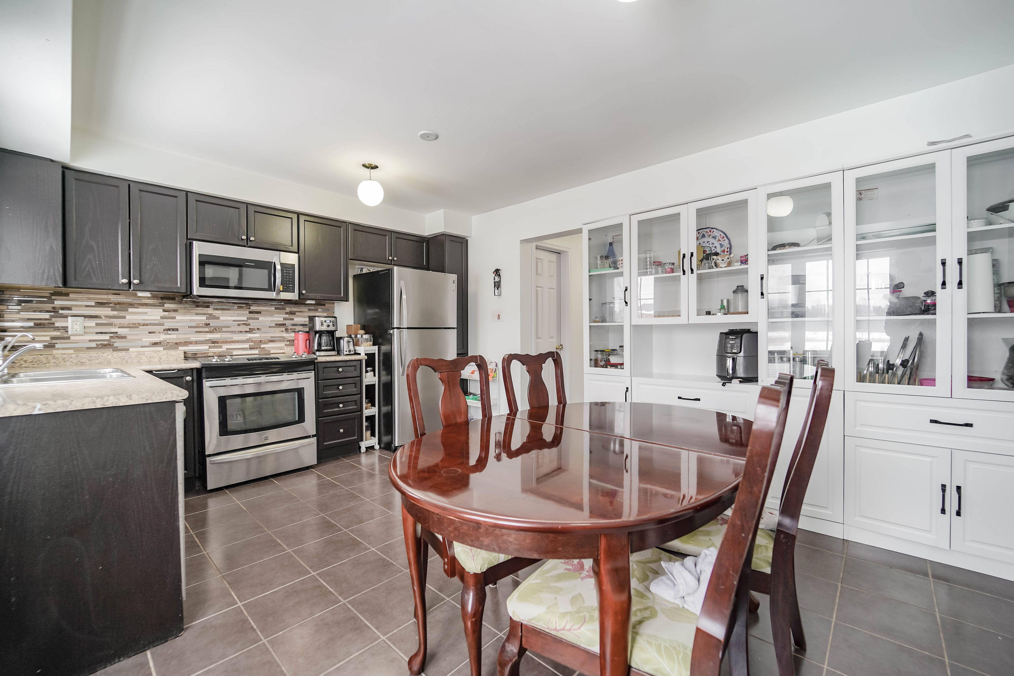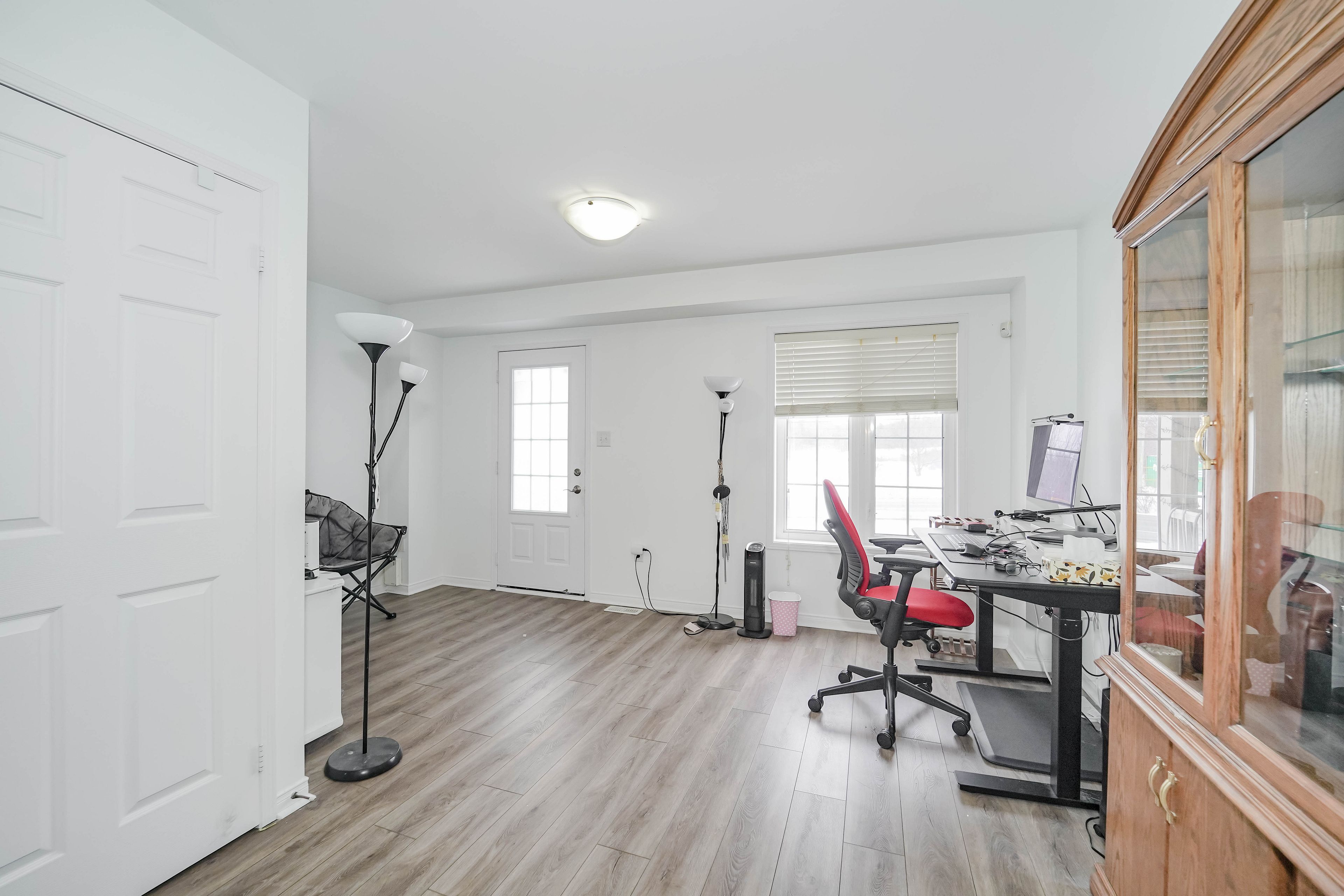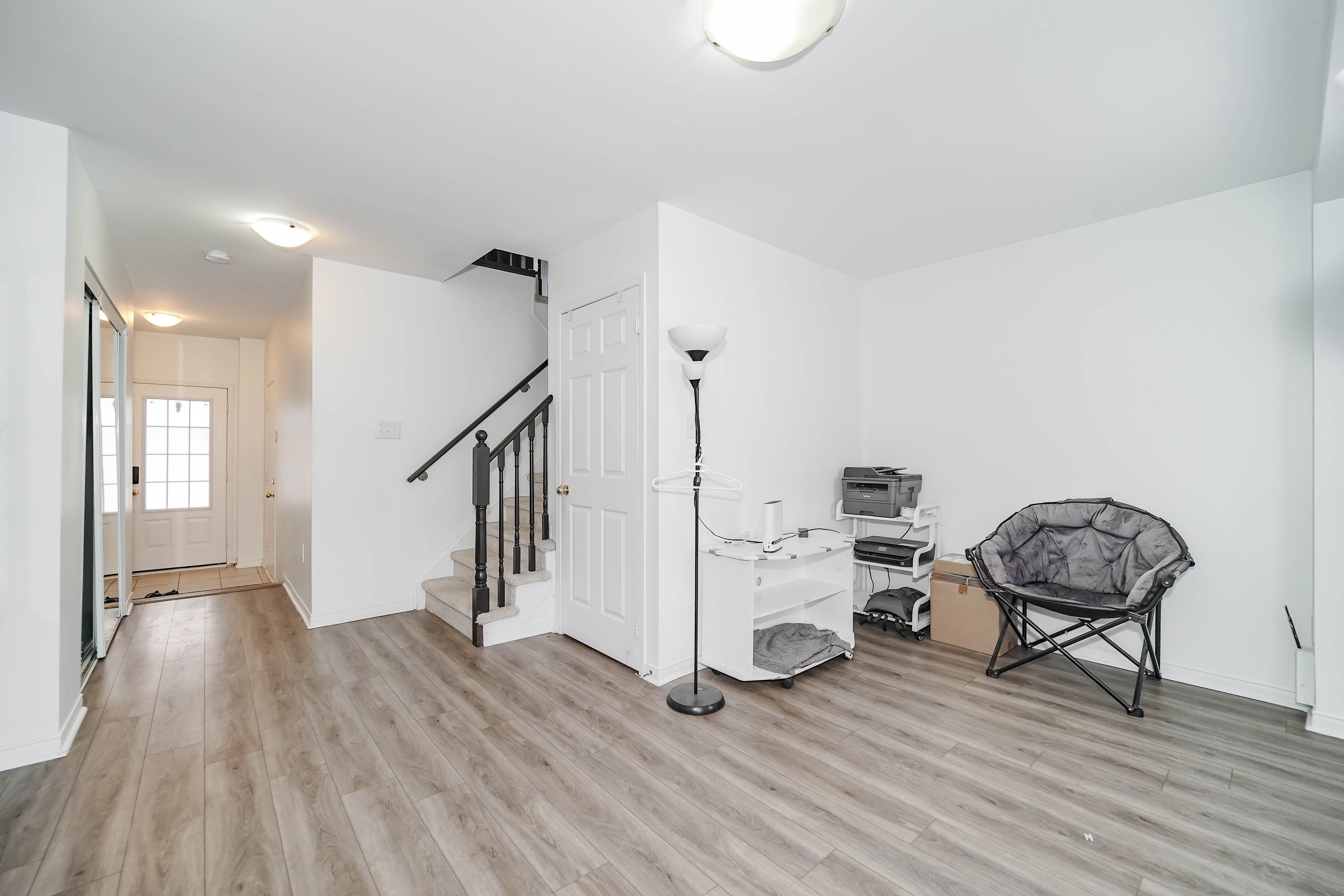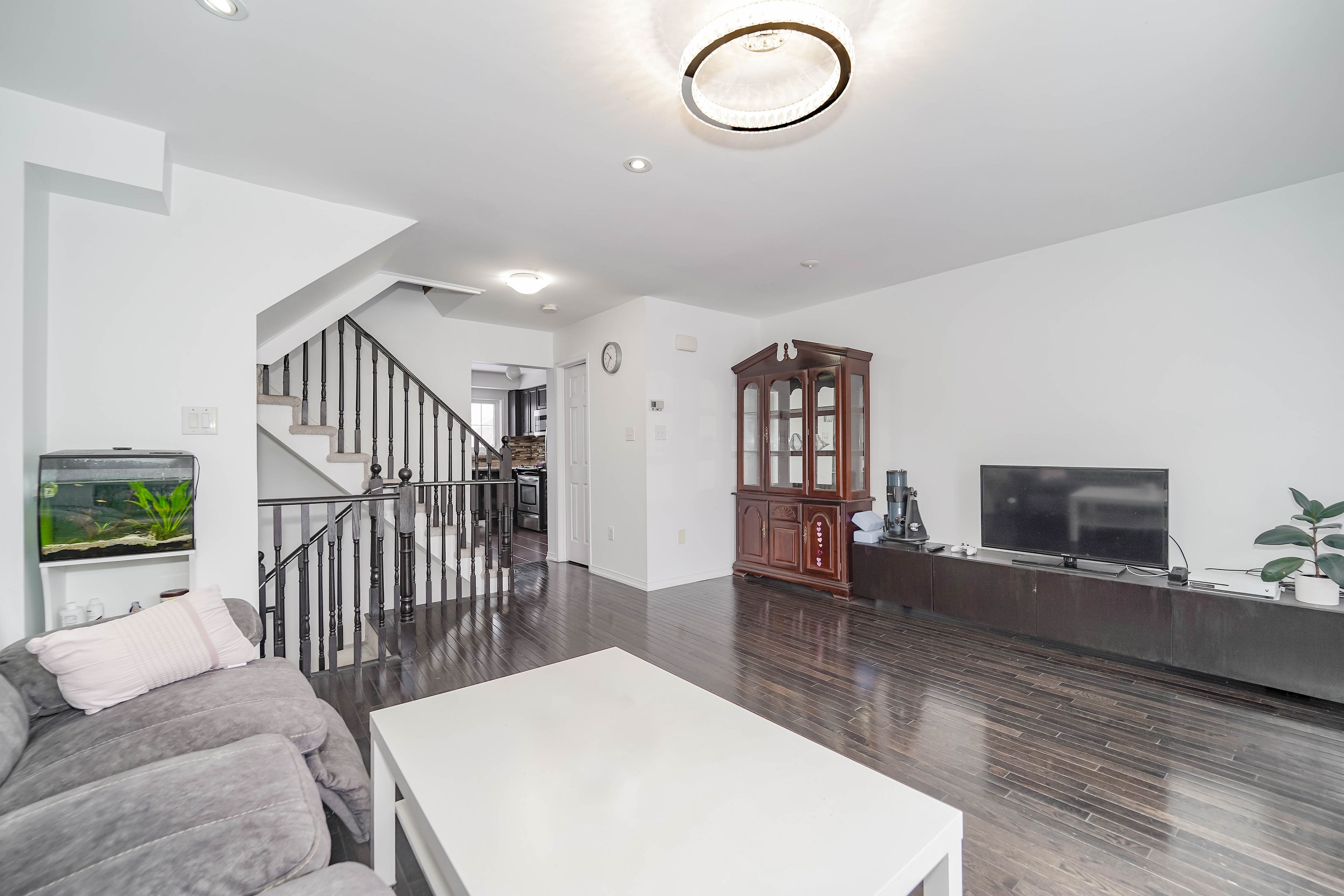 Bright and spacious open-concept townhome featuring 3 generous bedrooms and 3 bathrooms in a prime central ajax location. This well-maintained home offers two convenient entrances from both the front and back. The north-facing windows overlook a beautiful pond and park, providing peaceful views and plenty of natural light. Enjoy seamless indoor-outdoor living with a walkout to a private terrace from the living area. The kitchen features a large breakfast area, perfect for family meals and entertaining. Hardwood flooring throughout the second floor, with laminate flooring on the ground level and in all bedrooms. The primary bedroom includes a walk-in closet and an upgraded 3-piece ensuite. Additional highlights include direct access to the garage from inside the home for added convenience. The property includes 1 parking space in the garage and 1 driveway parking space. The home also features a basement area that can be used for additional storage. Ideally located minutes to highways 401 and 407, public transit, schools, shopping, audley recreation centre, amazon fulfillment centre, and many everyday amenities. Steps to schools and parks, making it a great location for families and commuters alike.