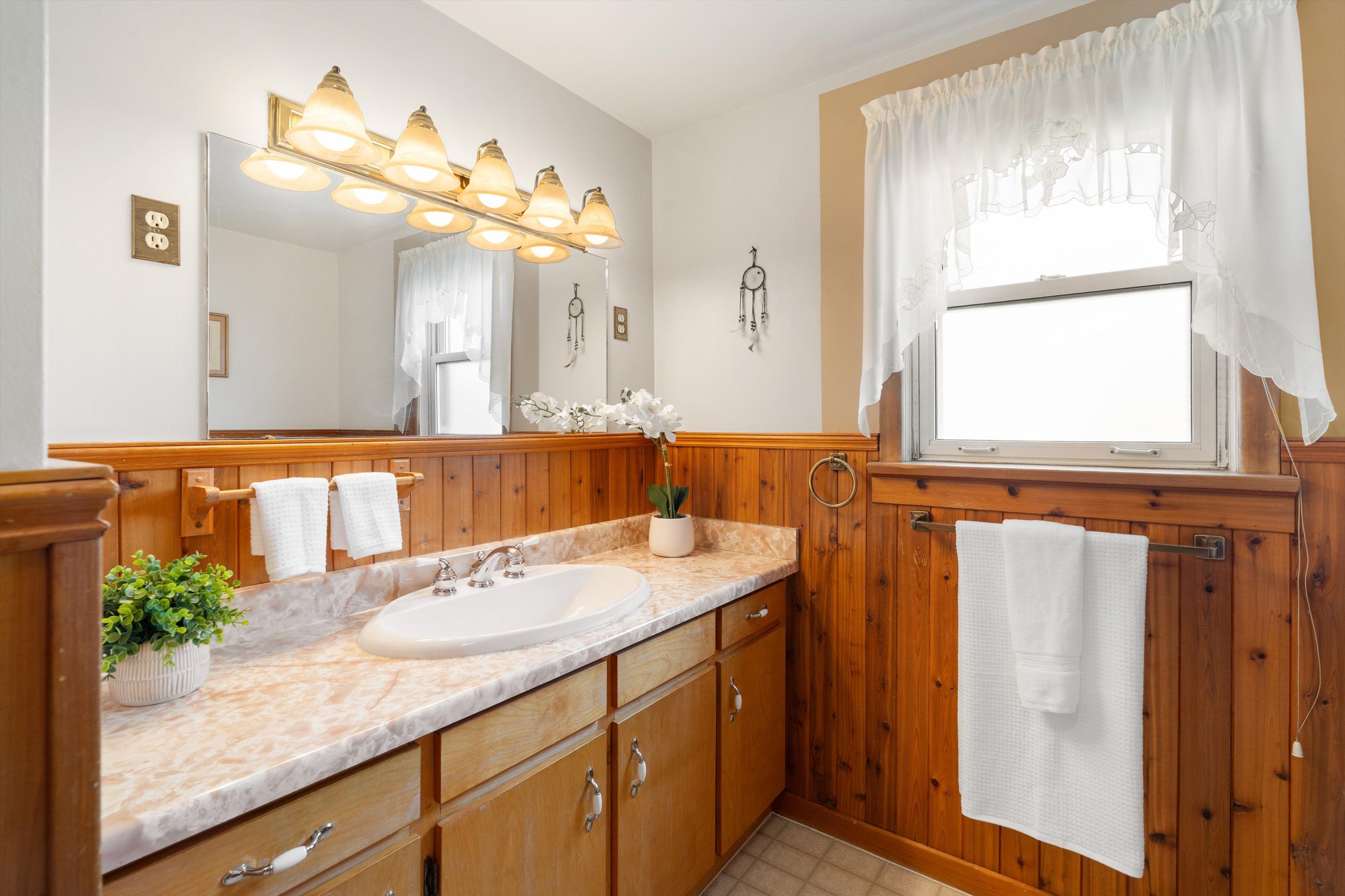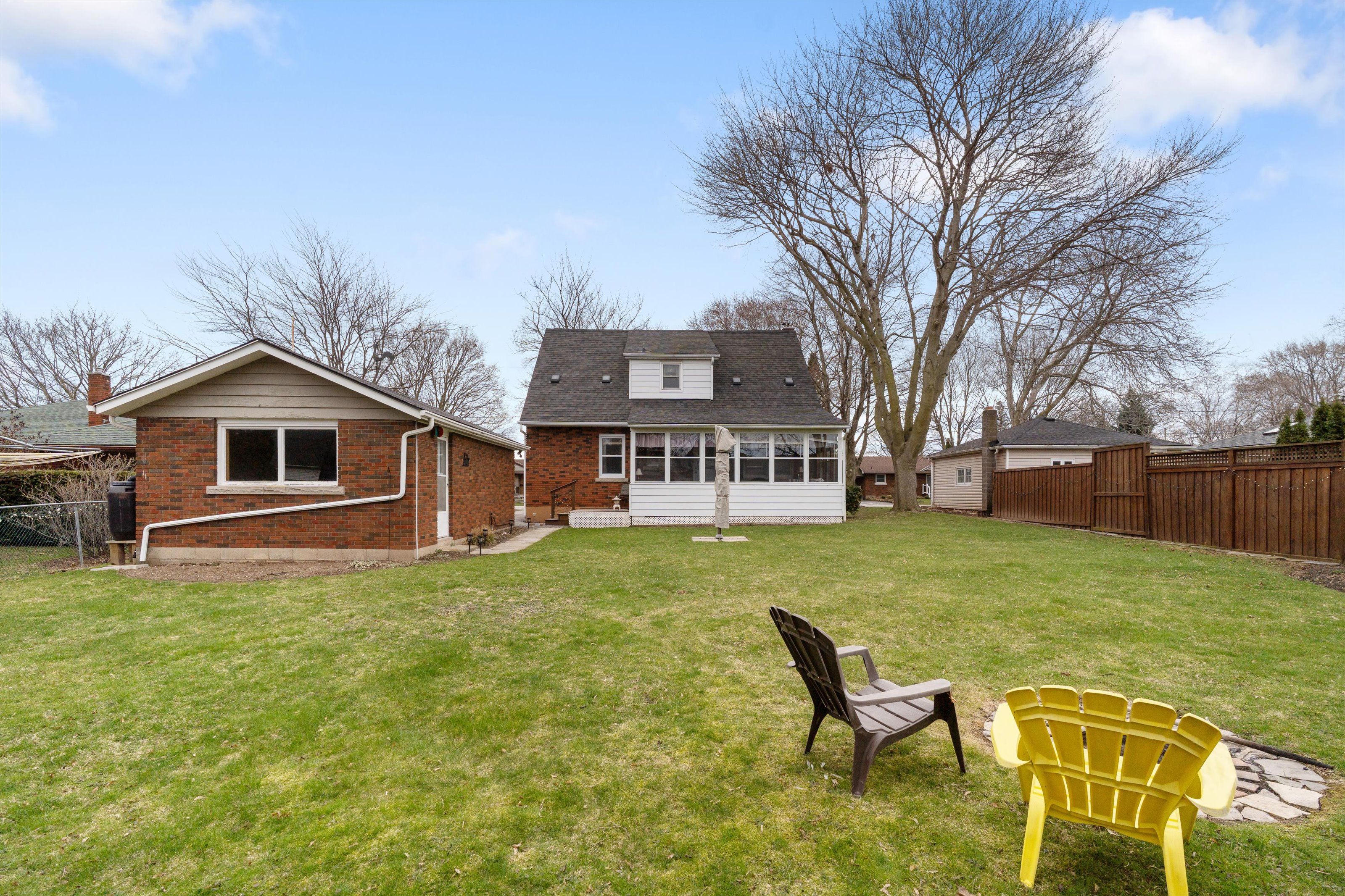 • Bright sunroom and spacious backyard for relaxation and entertaining.