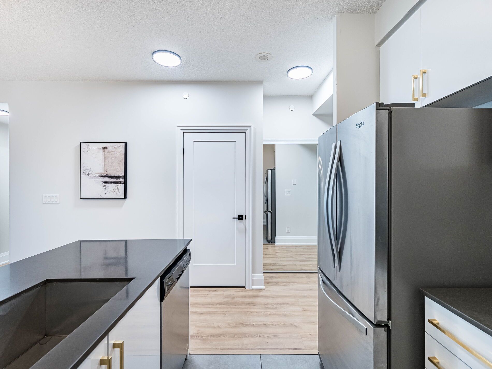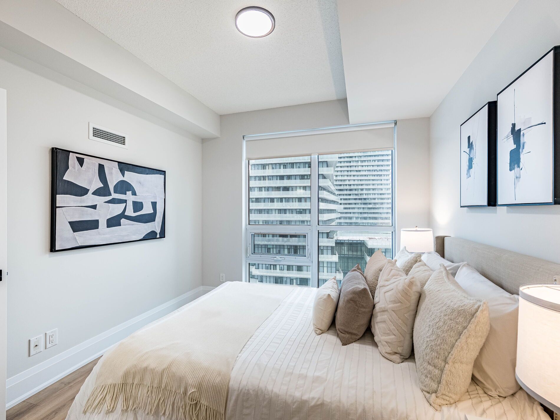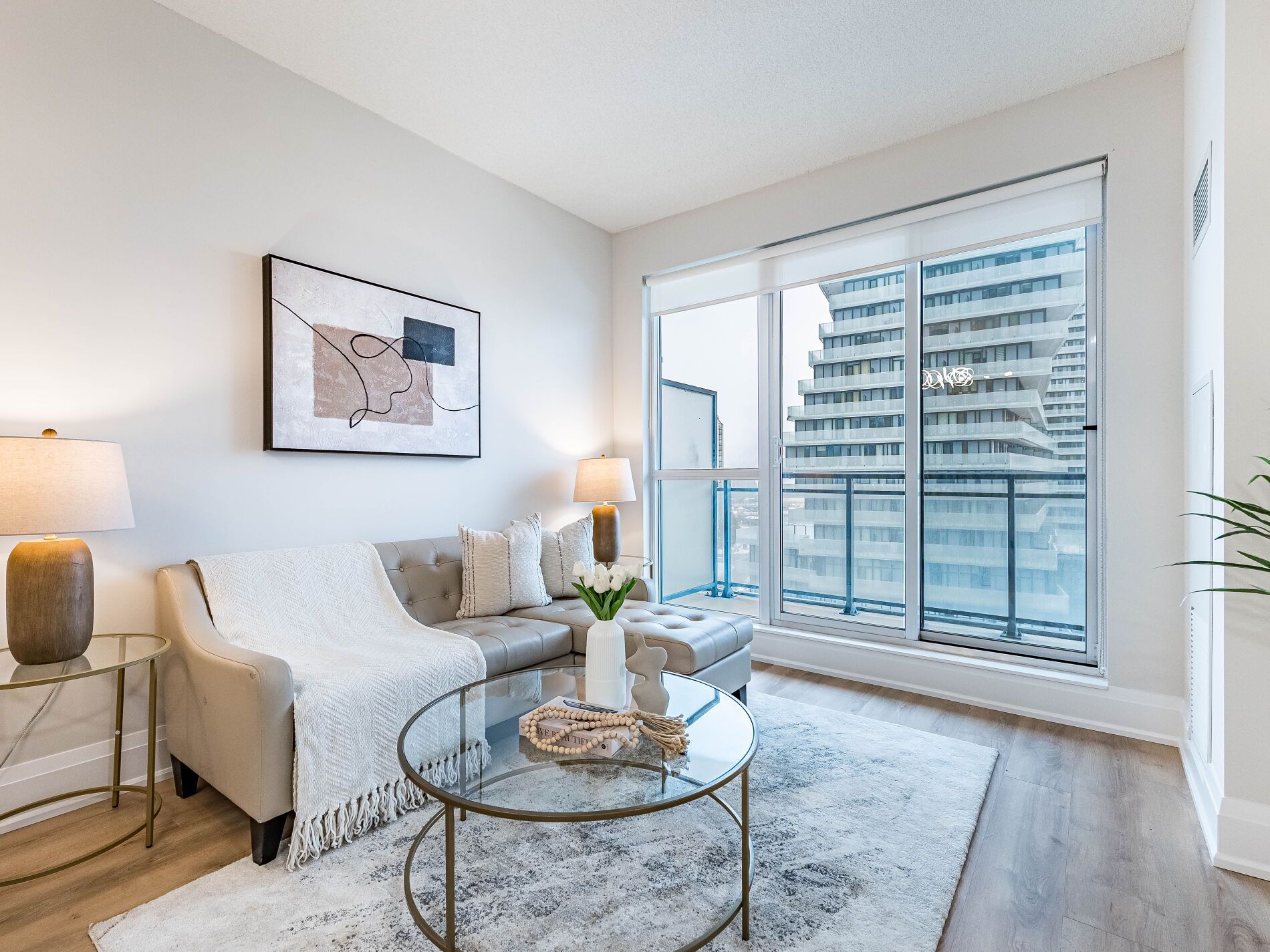 Elevated design! Prime location! Exceptional lifestyle! Experience refined city living in this exquisitely renovated 1-bedroom residence located in the prestigious brickstone community in the heart of mississauga's vibrant city centre. Thoughtfully redesigned with contemporary elegance, this suite offers a seamless blend of style, comfort, and functionality. The open-concept living and dining area is bathed in natural light, creating an inviting yet sophisticated ambiance ideal for both intimate evenings and stylish entertaining. The designer kitchen showcases sleek cabinetry, premium stainless steel appliances, modern countertops, and refined finishes that elevate everyday living. Retreat to the spacious primary bedroom, a serene sanctuary featuring generous closet space and large windows that enhance the bright, airy atmosphere. The beautifully updated bathroom reflects clean architectural lines and upscale detailing. This exceptional offering includes one premium parking space and one private locker, adding both convenience and value. Perfectly positioned just steps from square one, celebration square, fine dining, boutique shopping, sheridan college, and major transit routes, this address provides effortless access to highways 403, 401, and qew - ideal for professionals and discerning buyers seeking connectivity without compromise. Whether you are a first-time buyer, executive professional, or investor, this turnkey residence presents a rare opportunity to own a refined home in one of mississauga's most dynamic and sought-after locations. A true turnkey opportunity in the heart of it all - don't miss your chance to call this beautiful unit home!