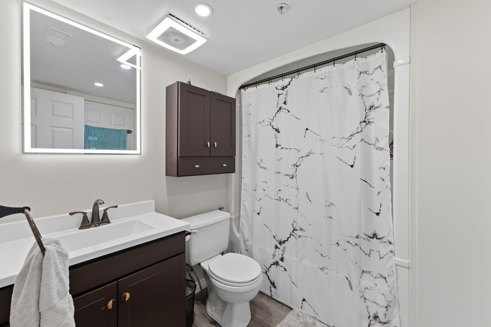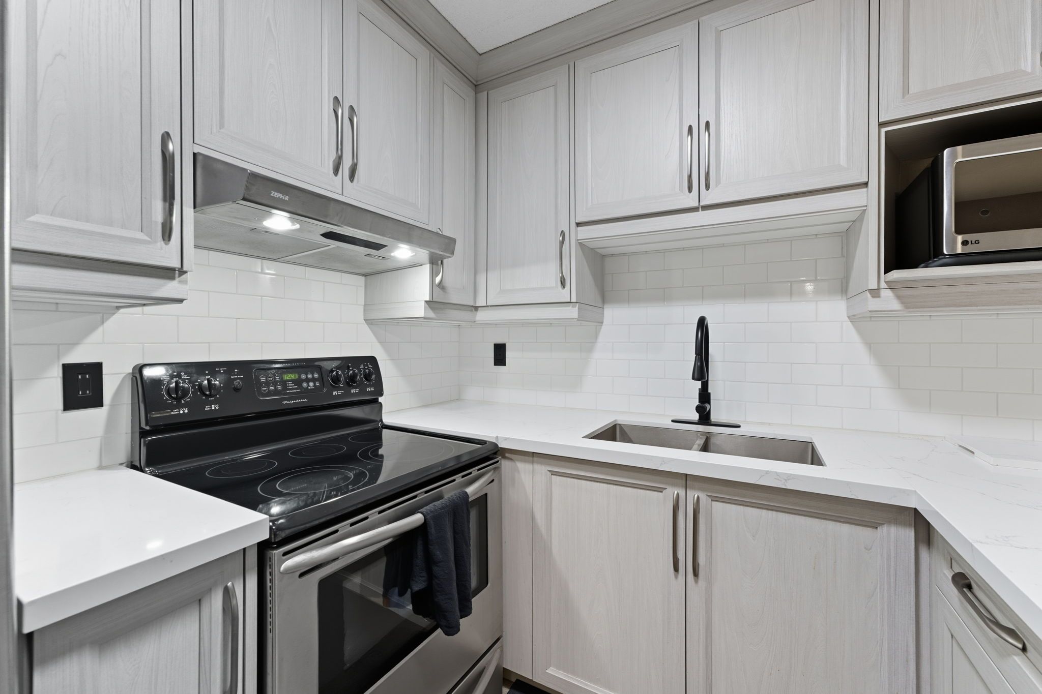 • Updated kitchen with quartz countertops and modern cabinetry.