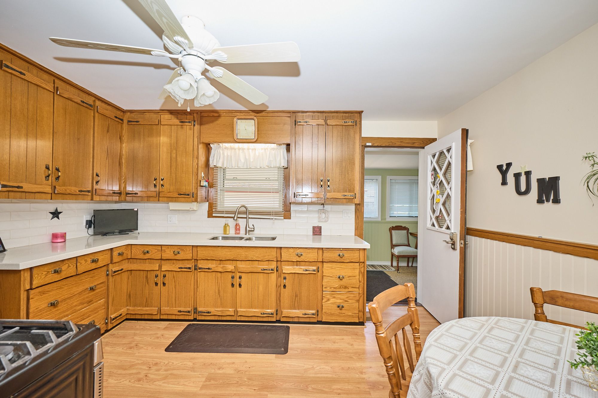 • Spacious eat-in kitchen with updated quartz countertops and a separate dining room.