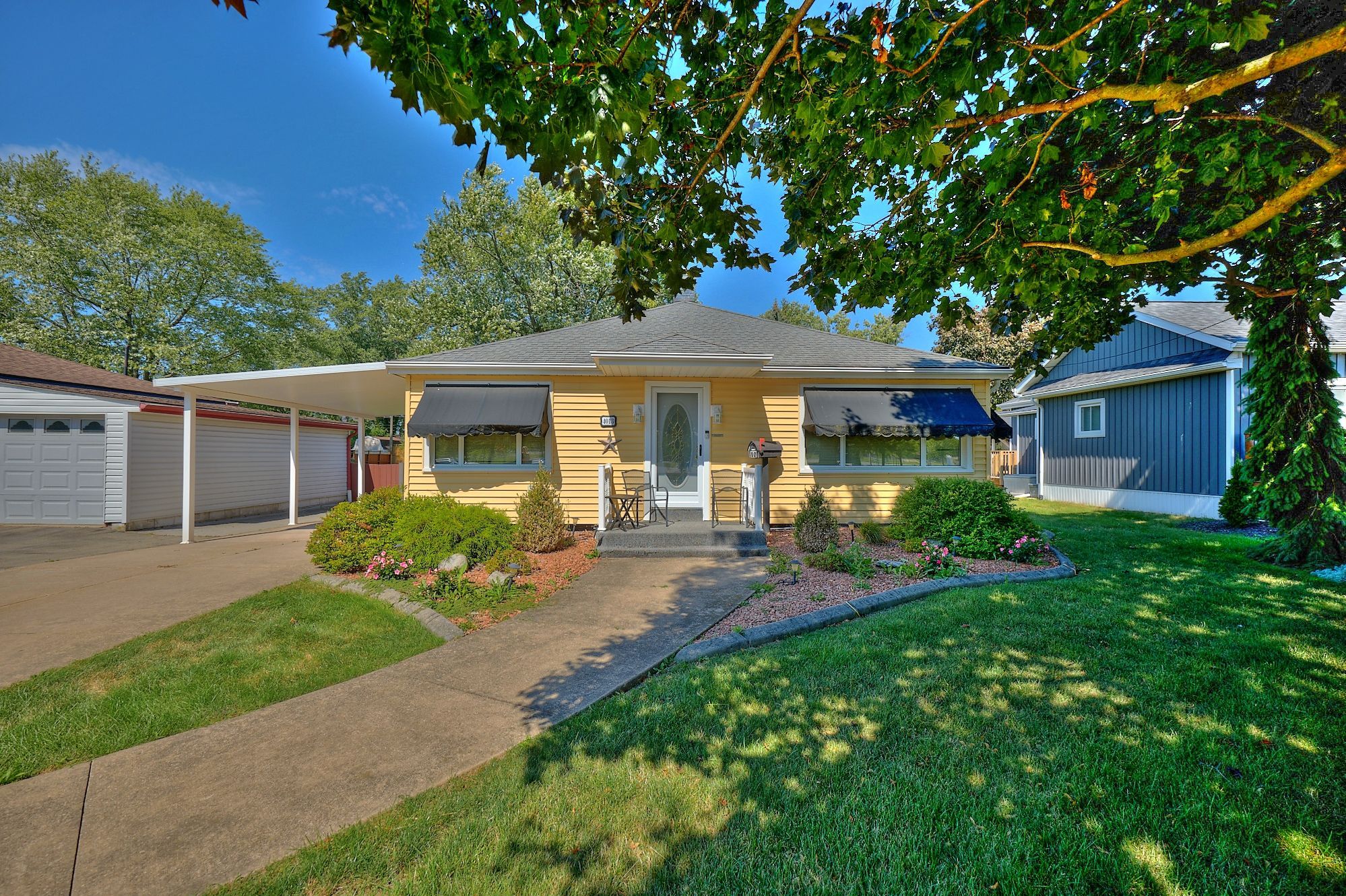 Pride of ownership in this well maintained 2+1 bedroom, 2 bathroom home on a large 60' x 185' lot situated across the street from chippawa lions park in the quiet community of chippawa. This spacious home features a large mud room, an eat-in kitchen with updated quartz counter tops, separate dining room, living room, gleaming hardwood flooring, primary bedroom w/wall to wall closet and a beautiful 3 season sun room. The lower level boasts a rec room, a bedroom, 3 pc bathroom, & a laundry room with tons of storage space. You'll love the outdoors with the beautifully landscaped, pool sized back yard with a patio and a storage shed. Other notable features include central vac, natural gas bbq hook-up, lawn sprinkler system and updated roof, windows, furnace & a/c in recent years. Awnings on the home are removable. Whether you are a first-time buyer or looking for a home to enjoy retirement in, this home is one you won't want to miss.