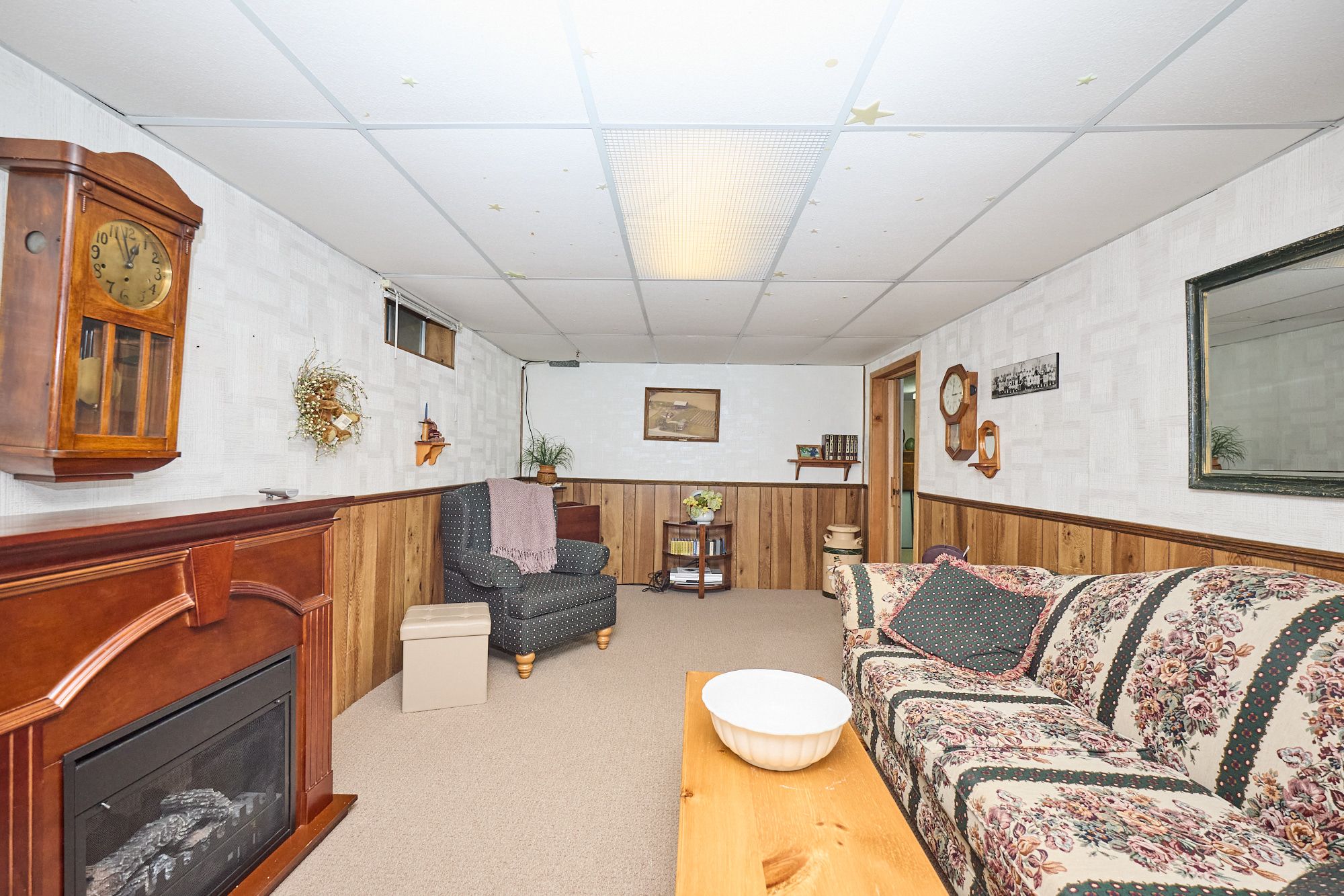 • Lower level features a rec room and extra bedroom.