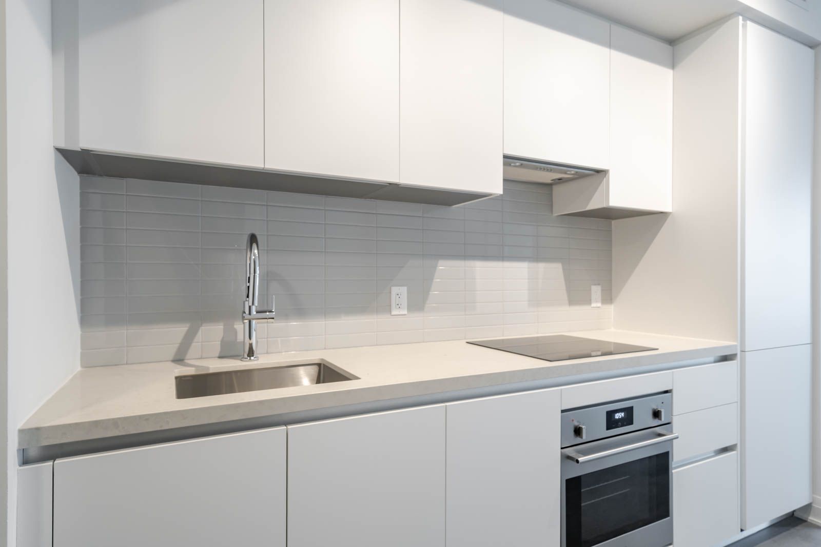 • Modern kitchen with quartz countertops and stainless steel appliances.