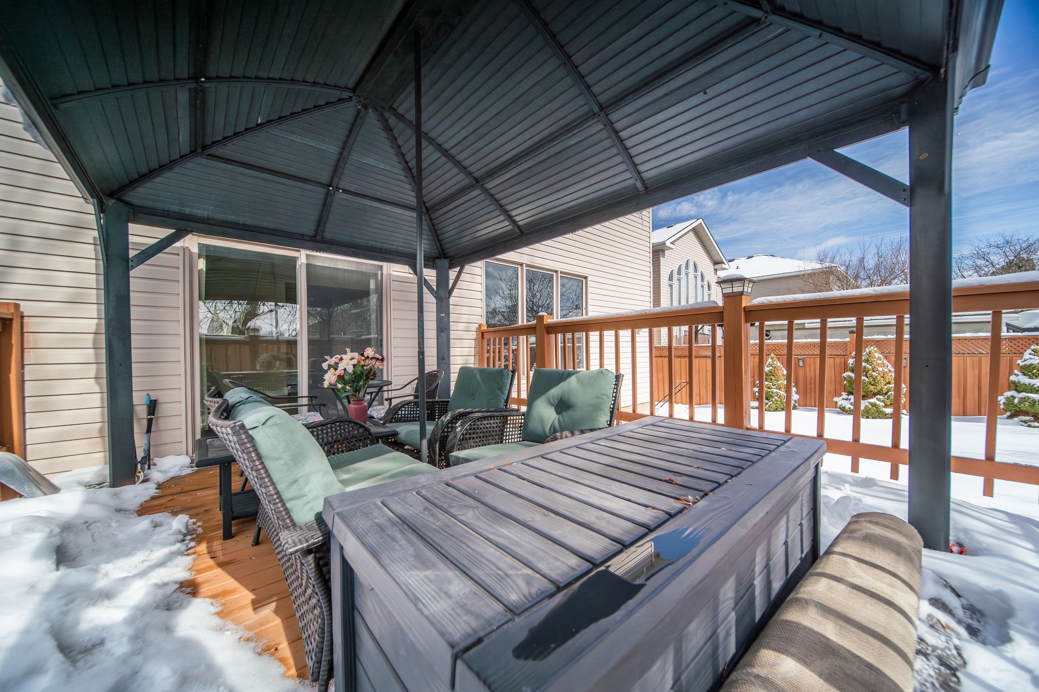 • Fully fenced backyard with a deck and gazebo for relaxing.