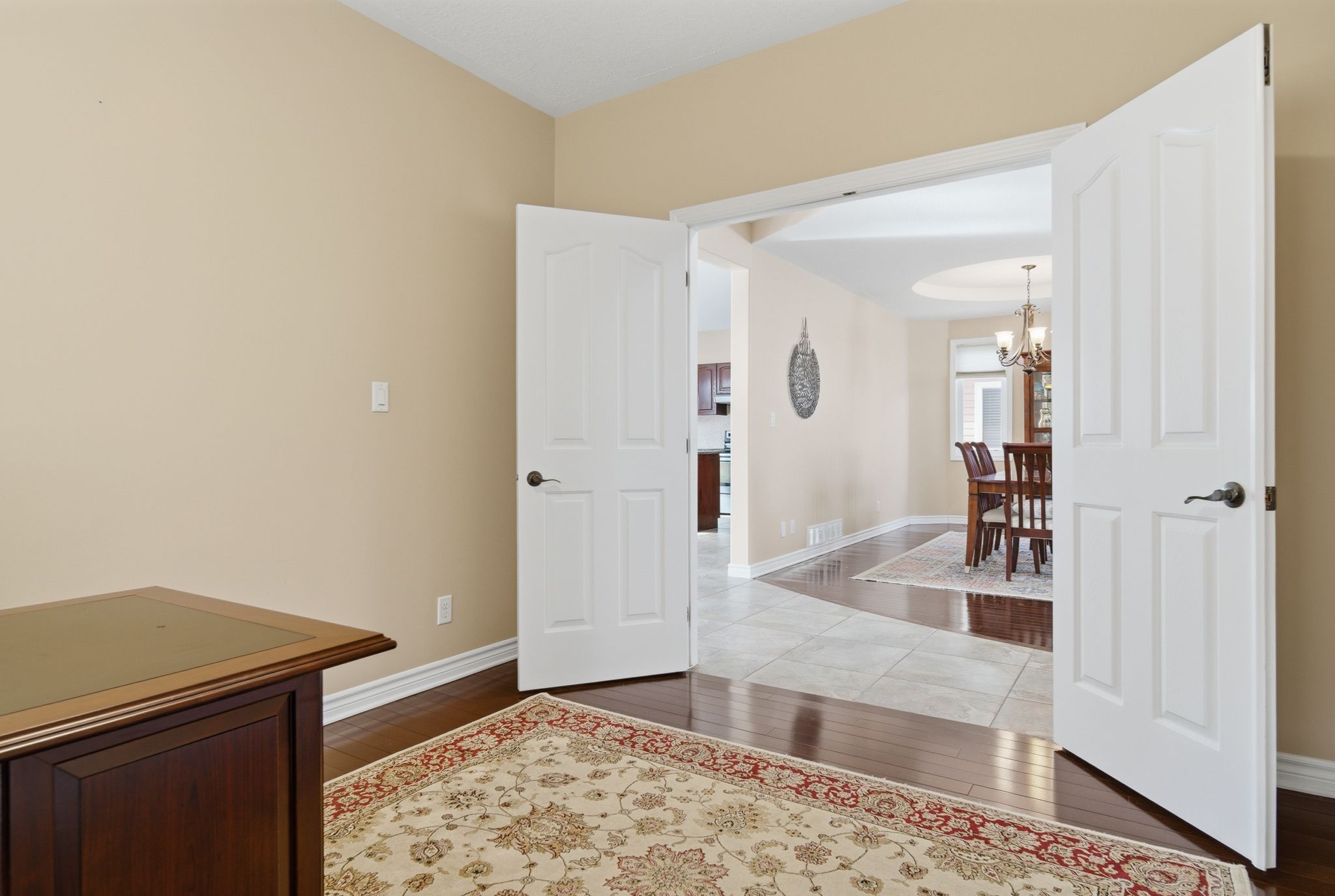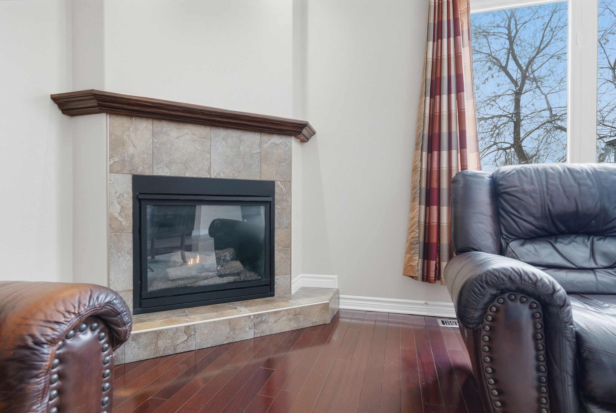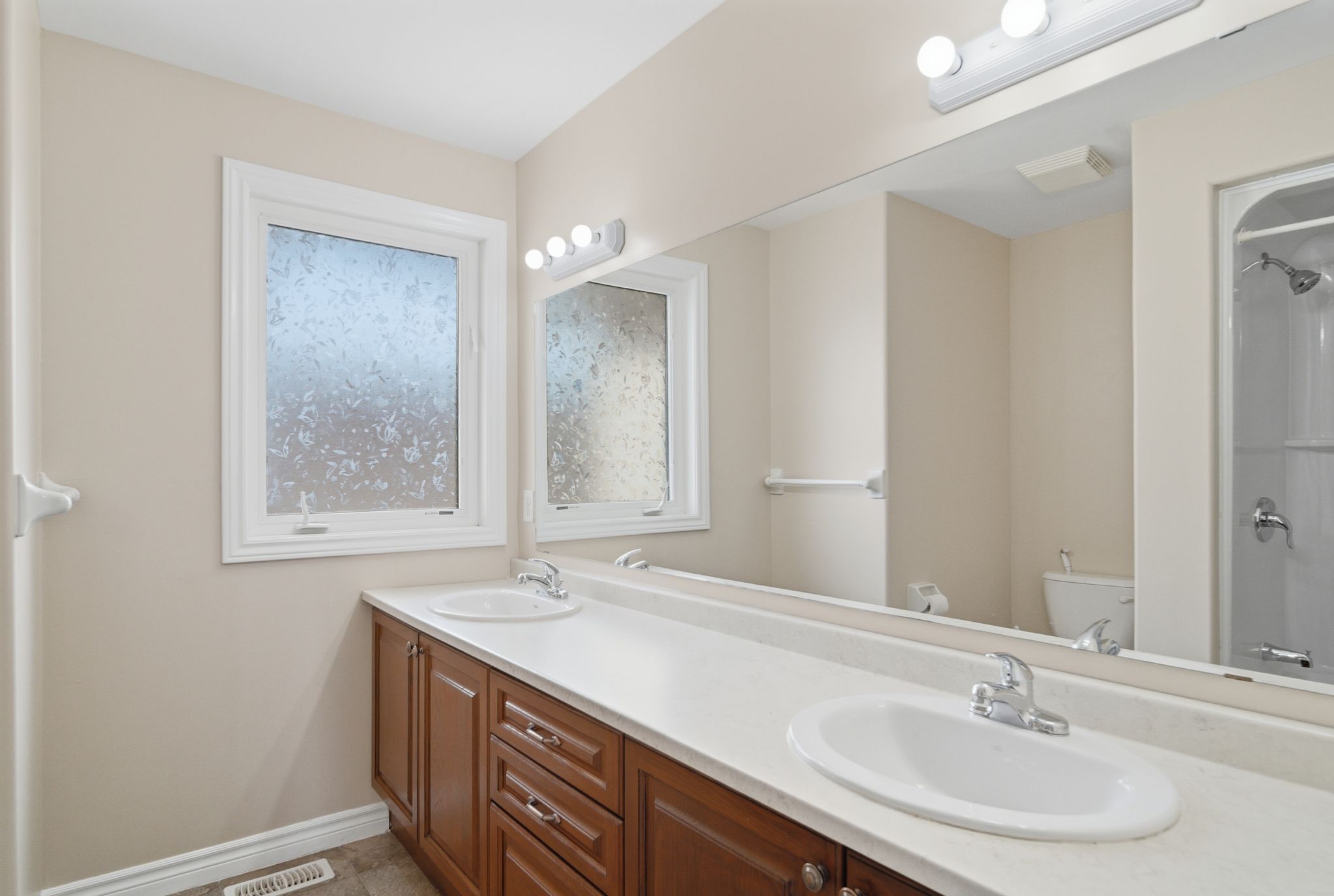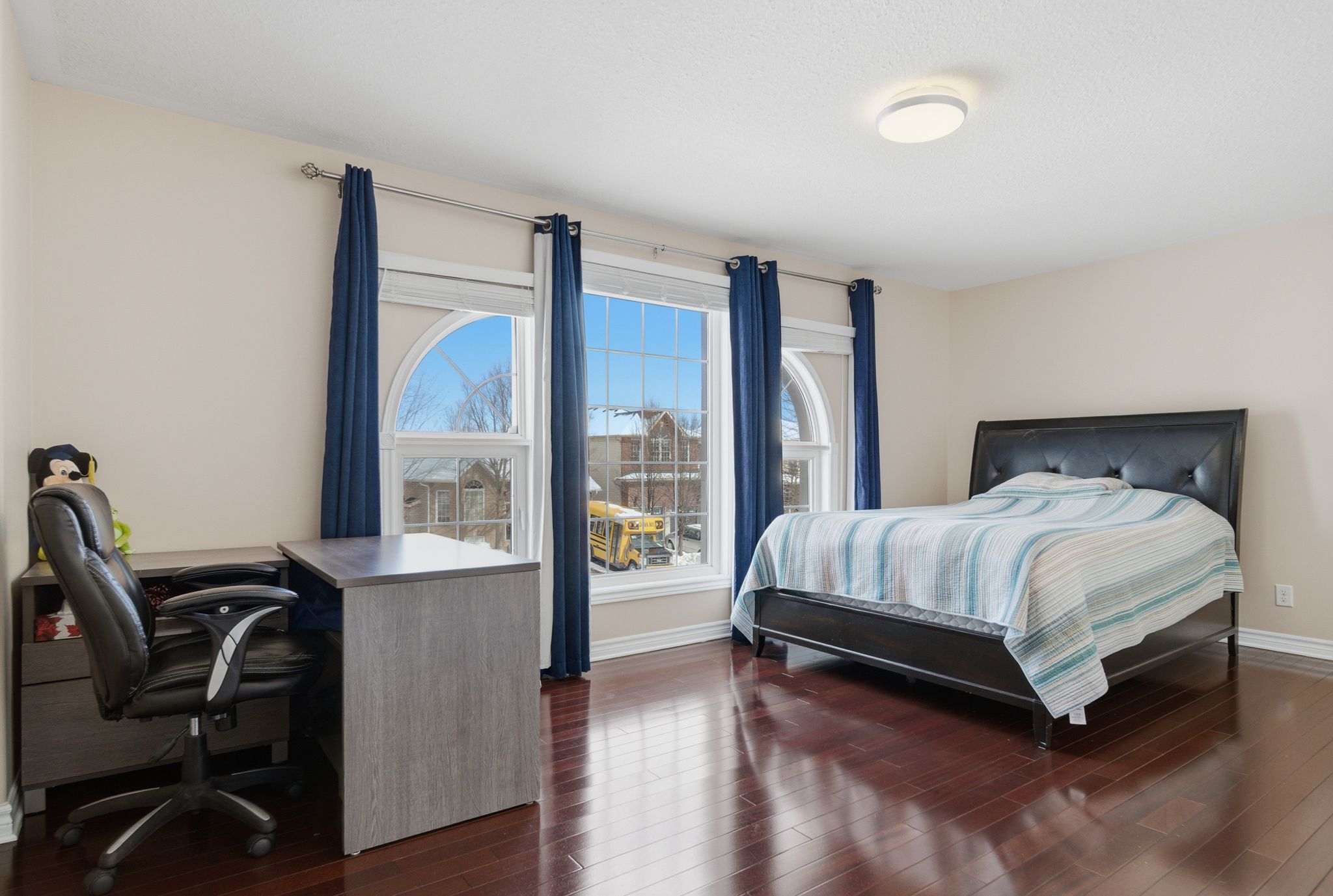 • Stunning two-storey foyer with a dramatic curved staircase and natural light.