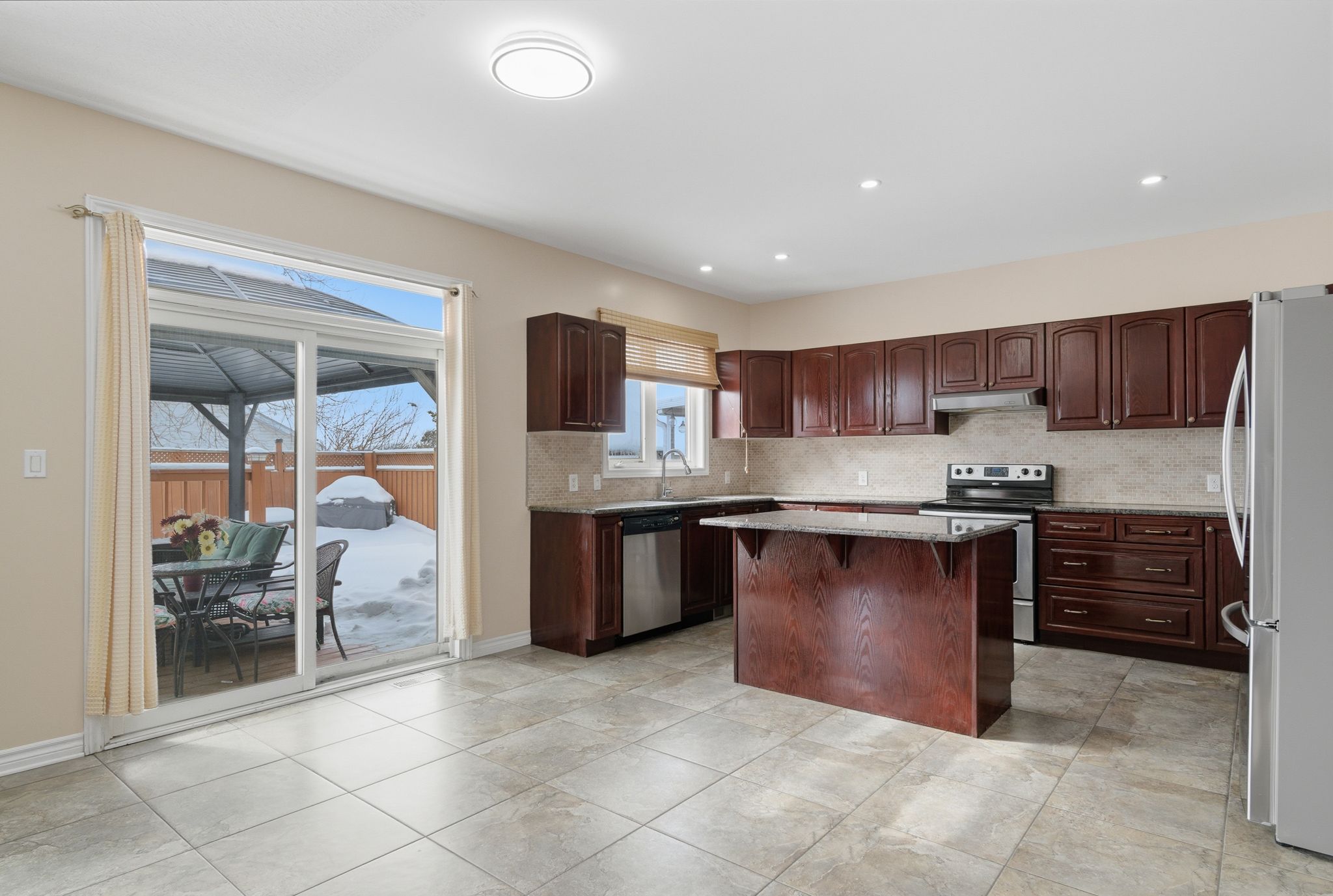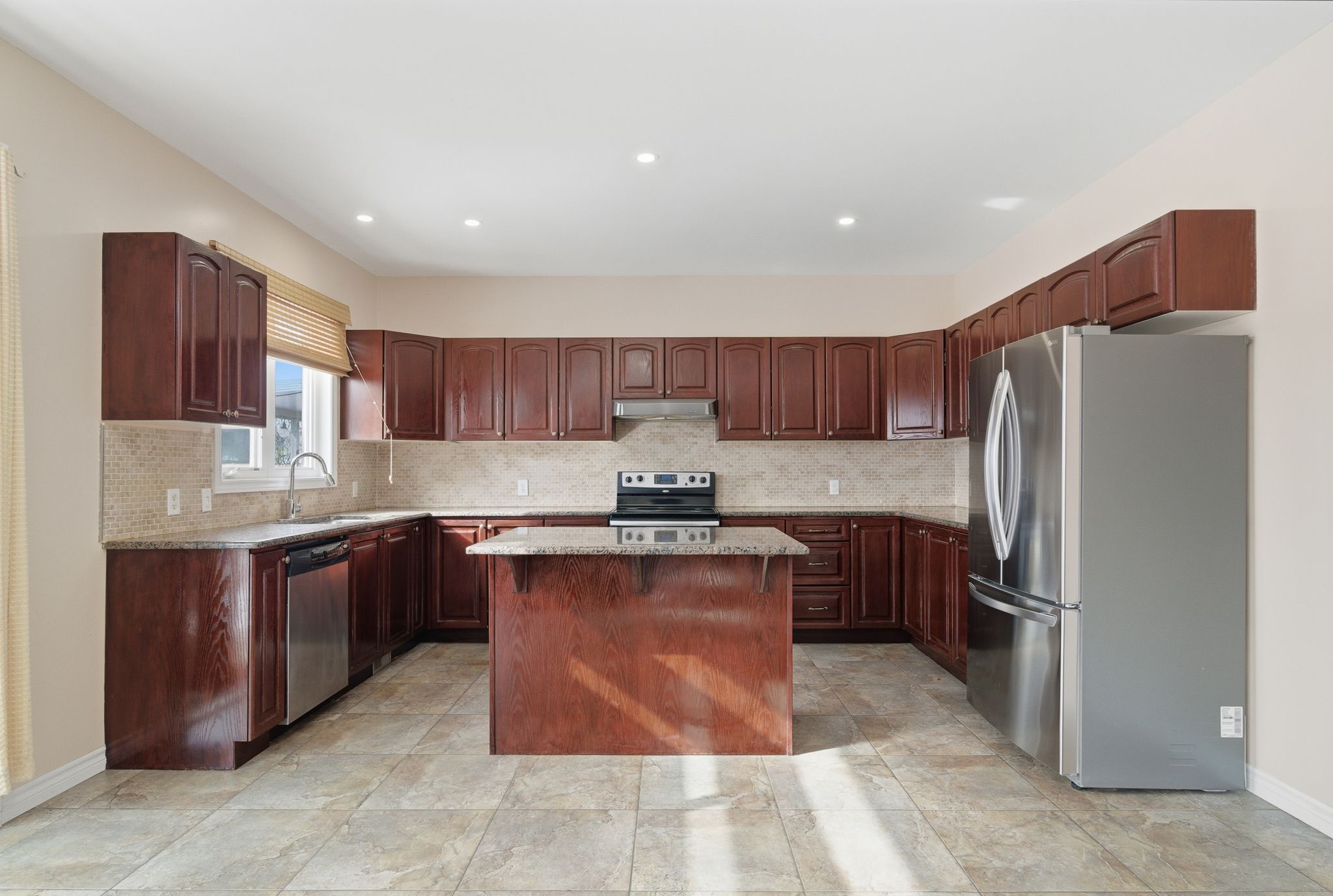 • Functional kitchen with granite countertops and generous cabinetry.