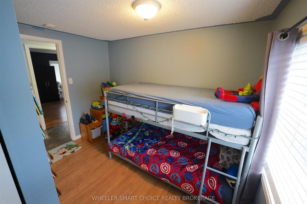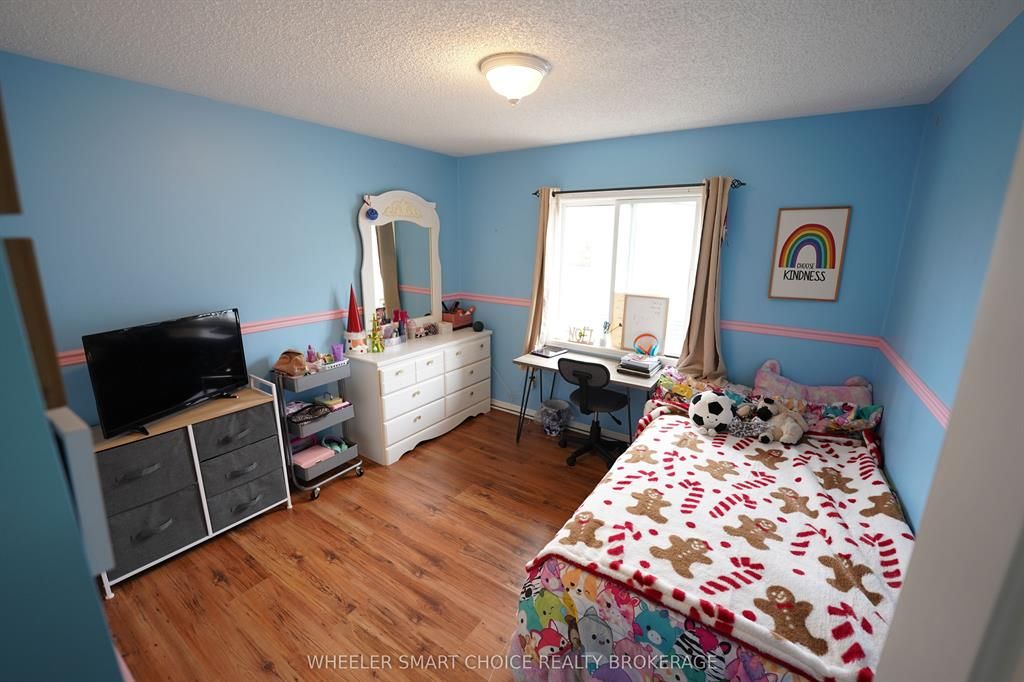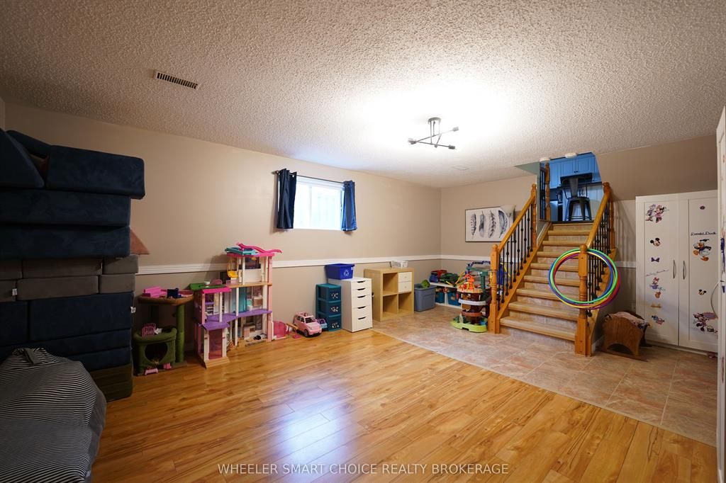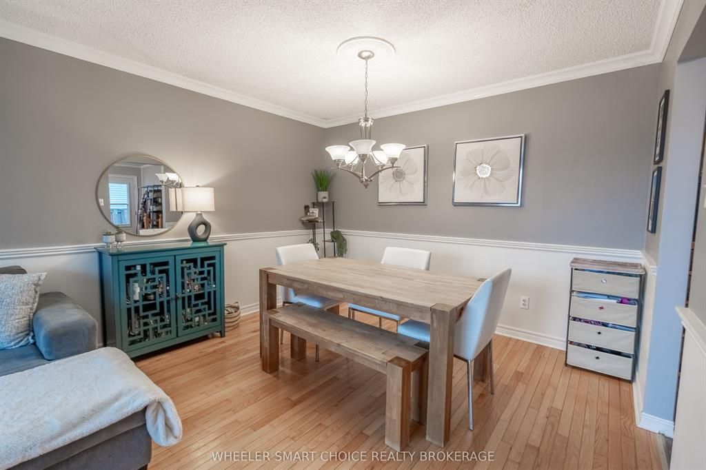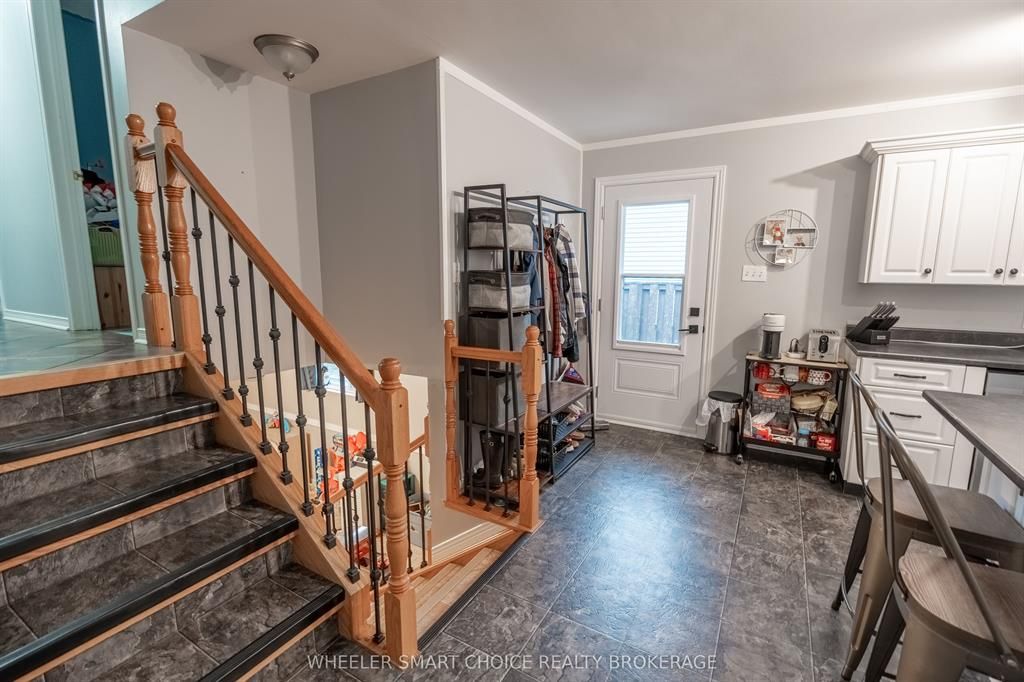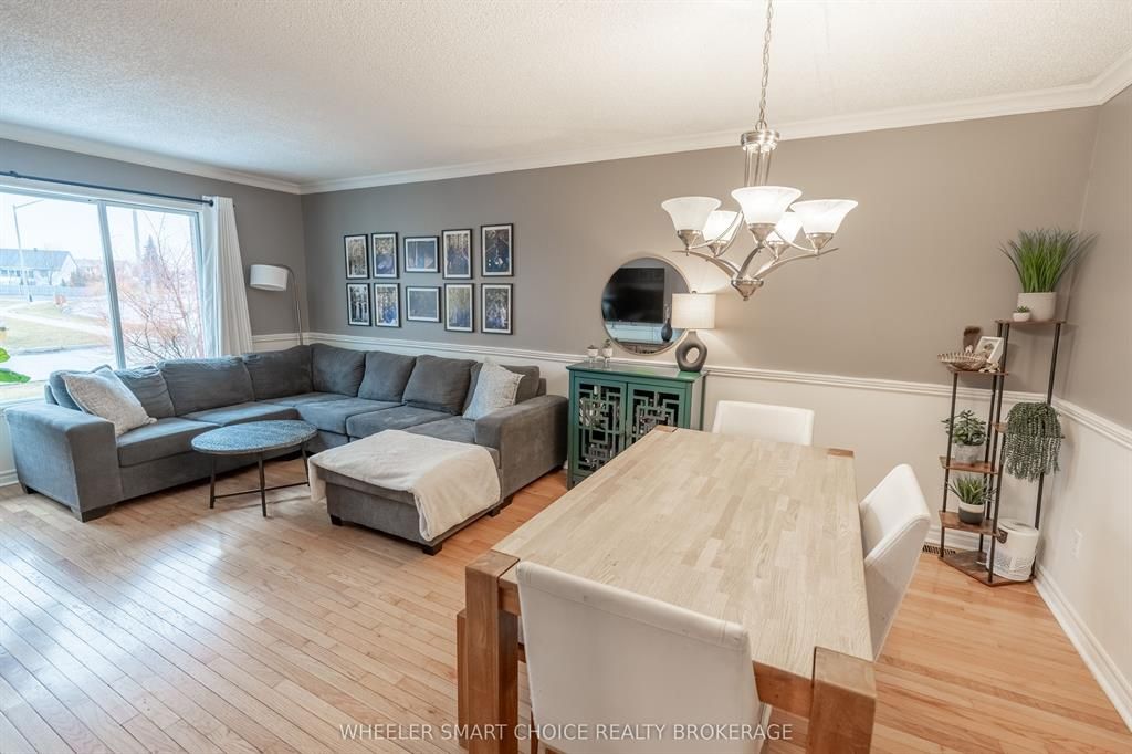 Welcome to your families next home. This well-maintained property offers a bright and functional main floor featuring an updated kitchen with abundant cabinetry and workspace. This home has a spacious living/dining area highlighted by hardwood flooring and crown moldings. Upstairs, you'll find three generous bedrooms and a 4-piece bathroom with a relaxing soaker tub. The primary bedroom includes patio door access to the backyard-perfect for morning coffee or quiet evenings. The finished basement adds valuable living space with a large rec room, a combined 2-piece bath/laundry room, and a convenient crawl space offering extensive storage. Recent updates include new patio door and side door, gas furnace and shingles (2016). Step outside to a fully fenced backyard complete with a screened-in gazebo, a good-sized patio, and interlocking walkways-ideal for entertaining or relaxing with family. This home is truly move-in ready and waiting for its next family to enjoy!