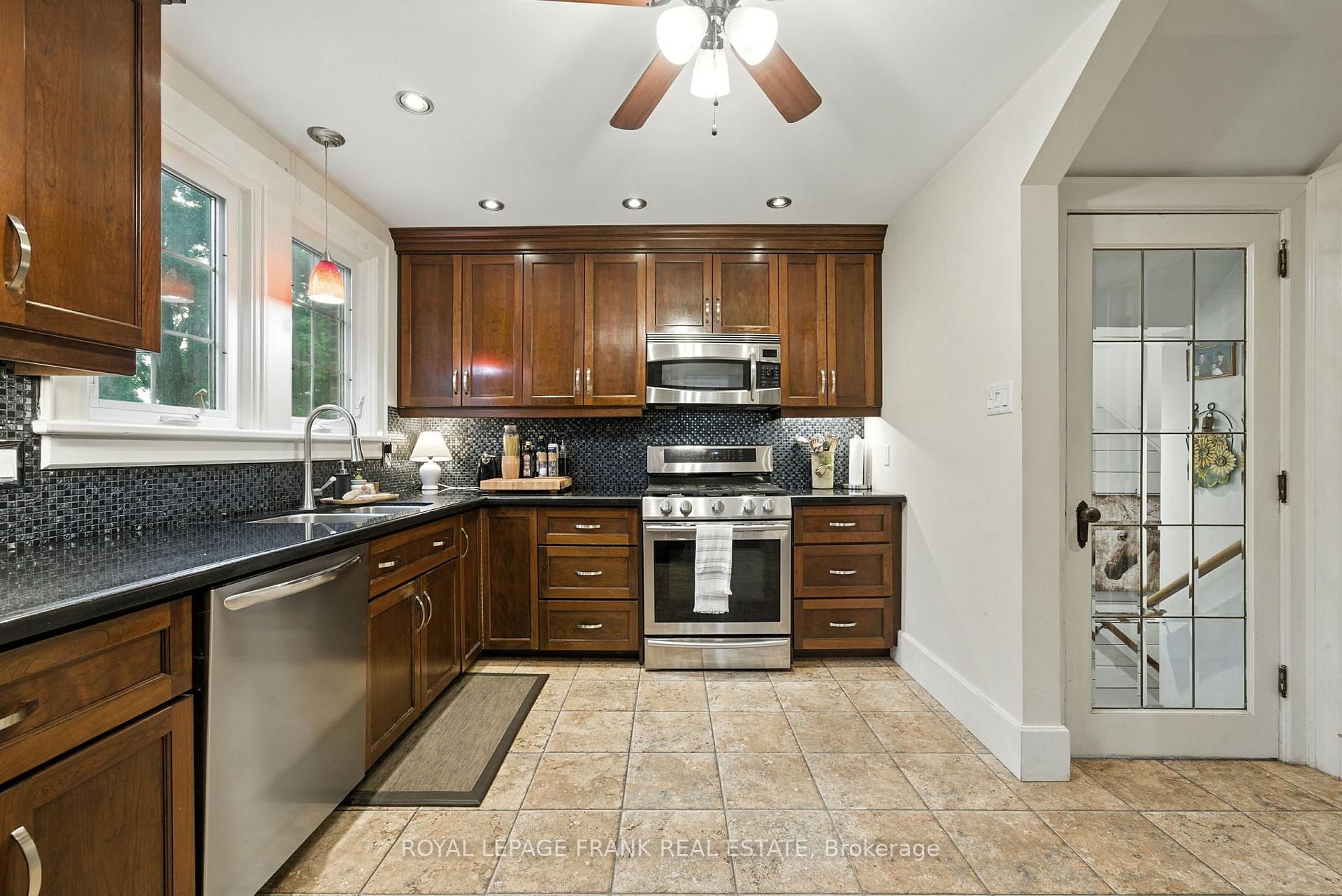 Small town perfection in little britain! This updated 4+1 bedroom, 2 bathroom, family home sits on a large lot with mature trees, perennial gardens, and has a detached garage with power. Inside, you'll love the modern kitchen with granite countertops and ample storage, renovated bathrooms, newer doors and windows, hardwood floors and the cozy gas fireplace. The bright basement with separate entrance offers endless possibilities. Fully fenced yard, backing onto green space and within walking distance to all amenities, this property is the perfect balance of small-town charm and city commuting convenience. A true hidden gem in character-filled little britain!