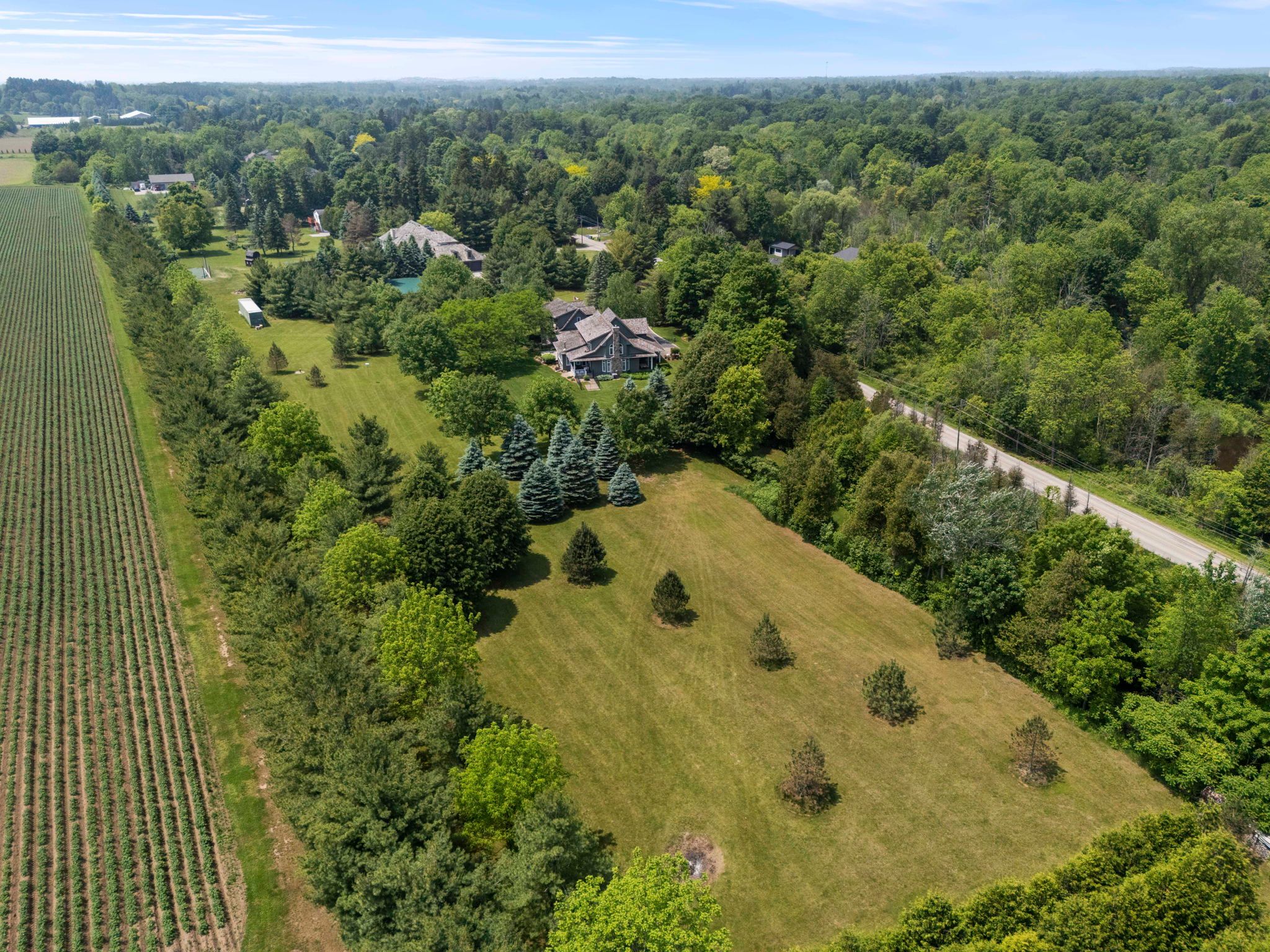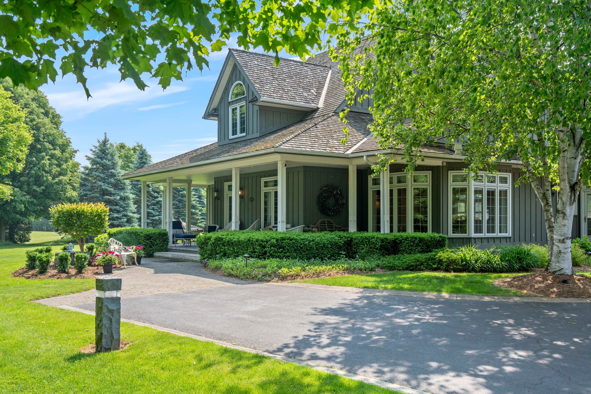 Welcome to your private country retreat on nearly 4 acres in the heart of carlisle. From the moment you arrive, this property leaves a lasting impression with its winding driveway, lush natural surroundings, and timeless centre-hall design. Nestled on a quiet hill and surrounded by mature trees, this custom-built home offers an exceptional blend of craftsmanship, quality, and classic charm. The inviting front and covered side porches provide peaceful spaces to relax and take in the views. Inside, the home showcases maple hardwood flooring and a bright, open-concept layout designed for modern living. The kitchen is equipped with high-end stainless steel appliances, quartz countertops, and a large central island that flows seamlessly into the dining and living areas, perfect for both entertaining and everyday comfort. Just off the kitchen, a sunroom offers a serene spot to enjoy morning coffee while overlooking the greenery. The family room exudes warmth with its inviting fireplace and direct walkout to the backyard. Upstairs, the primary suite is a true retreat. Designed with spa-like comfort in mind, this space features a spacious layout, walk-in closets, and a luxurious en-suite bathroom complete with a glass shower, soaker tub, double vanity, and heated floors. The fully finished basement offers generous additional living space and ample storage, making it perfectly suited for a variety of needs. A standout feature of this property is the workshop, ideal for storage, projects, or equipment. Another highlight is the spacious, fully finished apartment above the double garage with a separate entrance, offering incredible potential for guests, in-laws, or rental income. This is a rare opportunity to own a truly versatile property in one of carlisle's most picturesque locations. With premium finishes, thoughtful design, and expansive indoor and outdoor living spaces, this home delivers a lifestyle that's increasingly hard to come by.