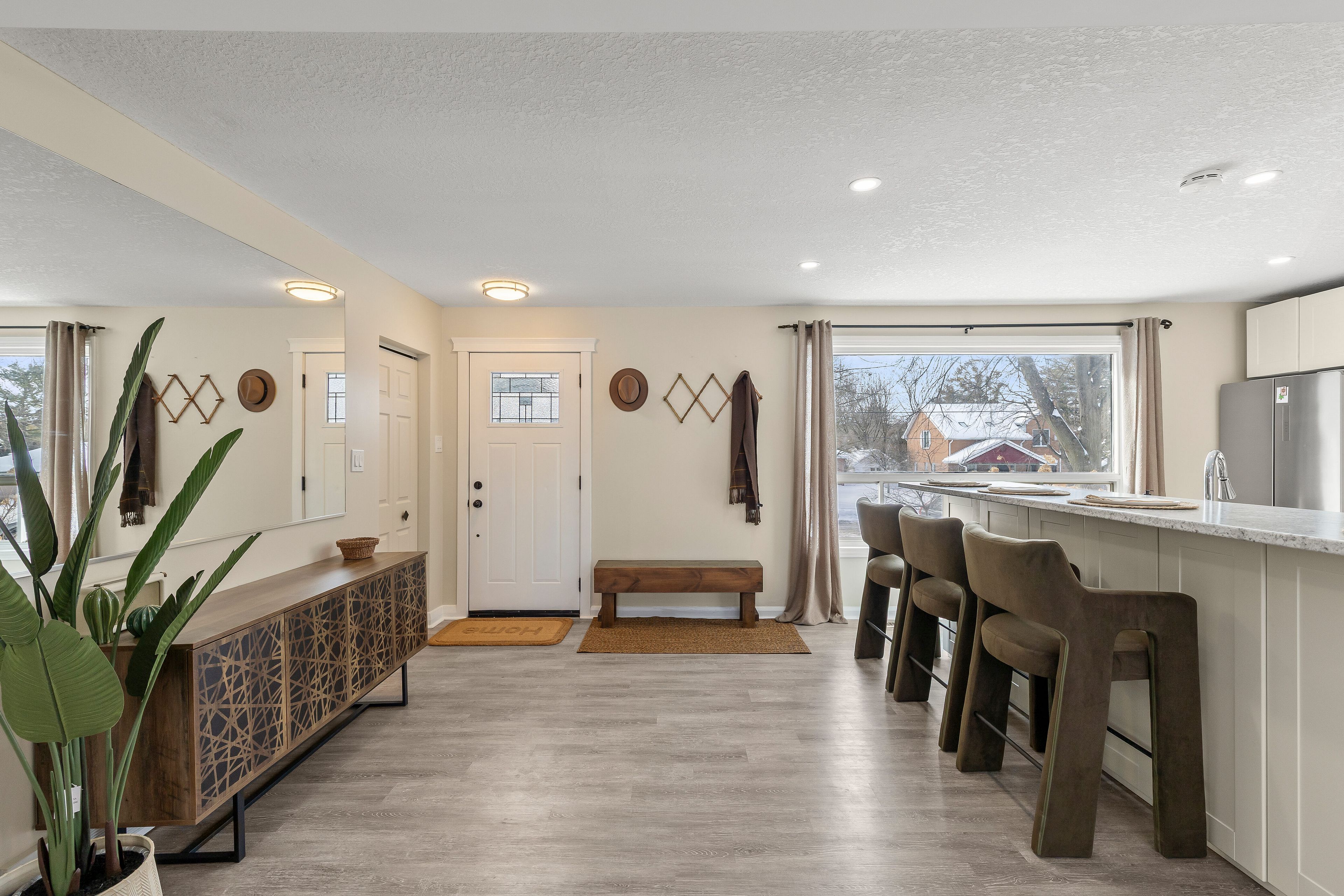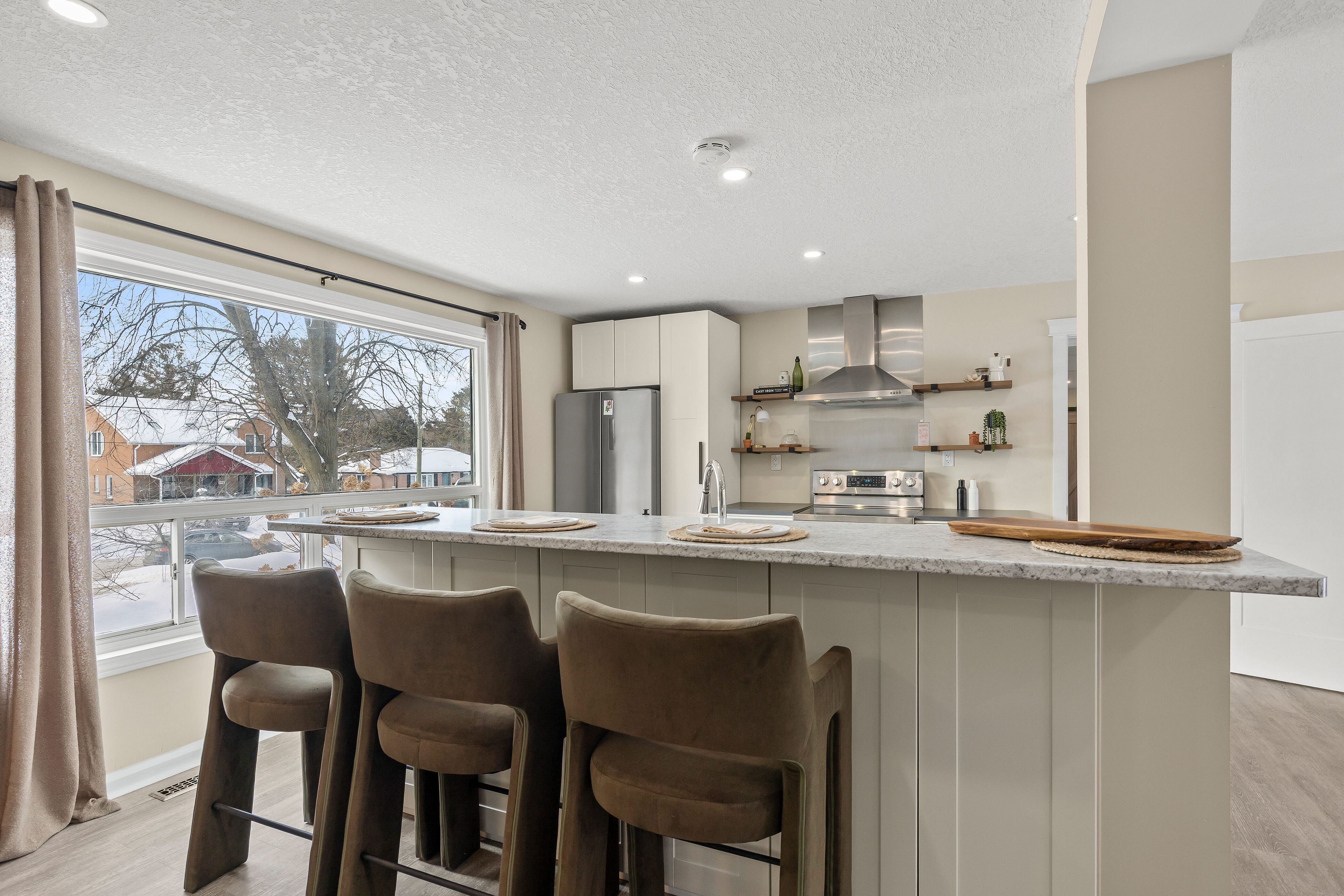 Desirable byron bungalow on a premium oversized lot! Welcome to 402 stephen st, this sought-after bungalow in the heart of byron, where large lots and expansive frontage are increasingly rare in today's real estate climate. Whether you're investor-minded with future adu potential (buyer to verify), or dreaming of creating your own staycation-style backyard, this property offers outstanding flexibility and opportunity. Thoughtfully updated to suit busy families and empty nesters alike, the main floor features a bright open-concept kitchen, living, and dining area, highlighted by oversized windows that overlook the spacious deck (2024)-perfect for entertaining or relaxing outdoors. The primary bedroom and 4-piece bath are set apart from the additional bedrooms, offering a quiet, private retreat at the end of the day. The former garage has been converted into a highly versatile space, currently used as a home business/office, with the ability to easily function as a second main-floor bedroom. This area also includes a workout/flex space and a convenient main-floor laundry room. The fully finished lower level expands your living space with a rec room, 3-piece bathroom, and three bedrooms, each featuring egress windows, making it ideal for teenagers, guests, or extended family. All of this is set in a prime byron location, just steps to byron village, byron northview, parks, schools, and trails, with quick access to major shopping and highways 401/402. A rare opportunity in one of london's most desirable neighbourhoods-don't miss this gem. Book your private showing today! Notables: shingles (2017) furnace & ac (2017) view floor plan in photo gallery for room dimensions