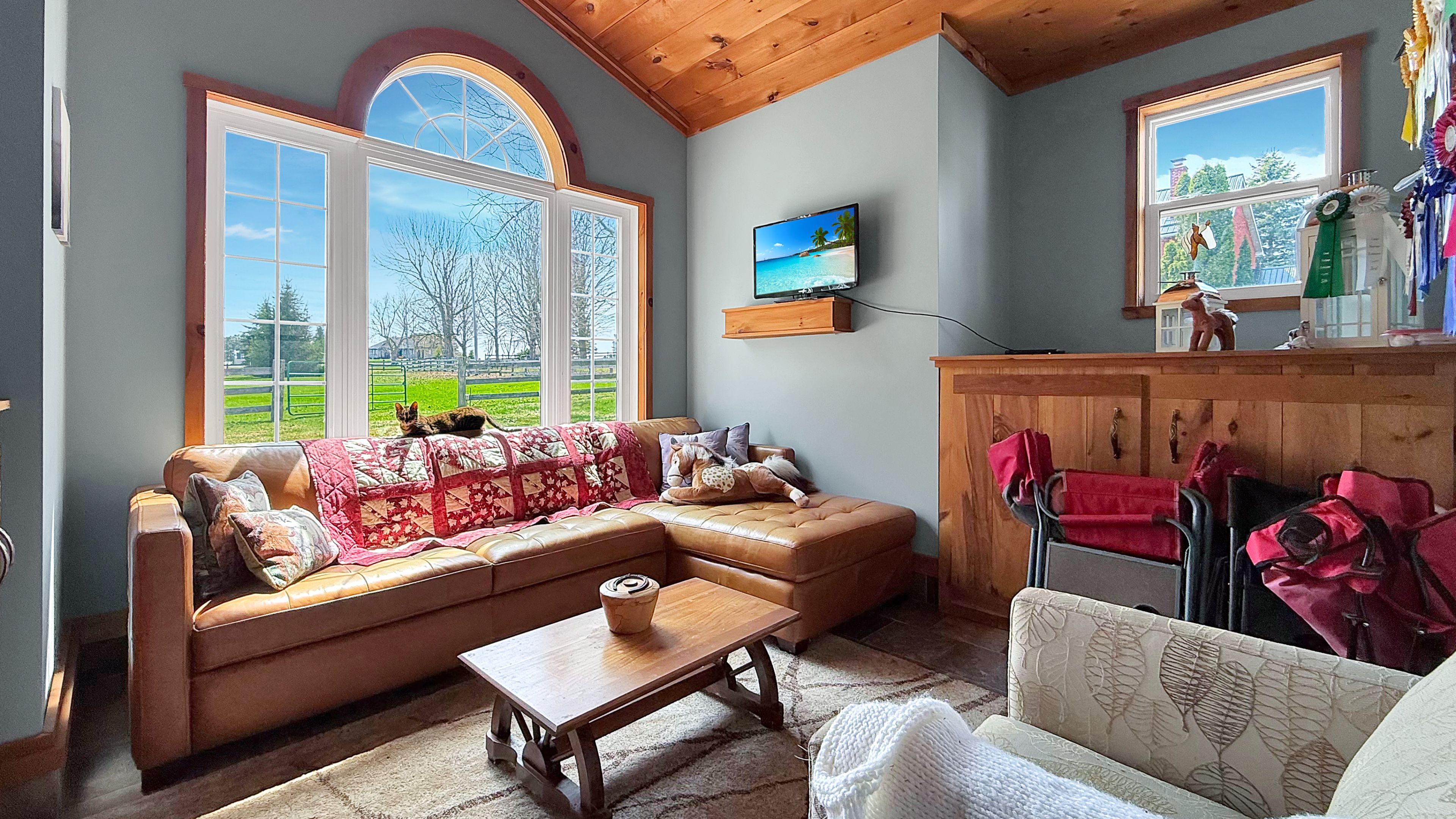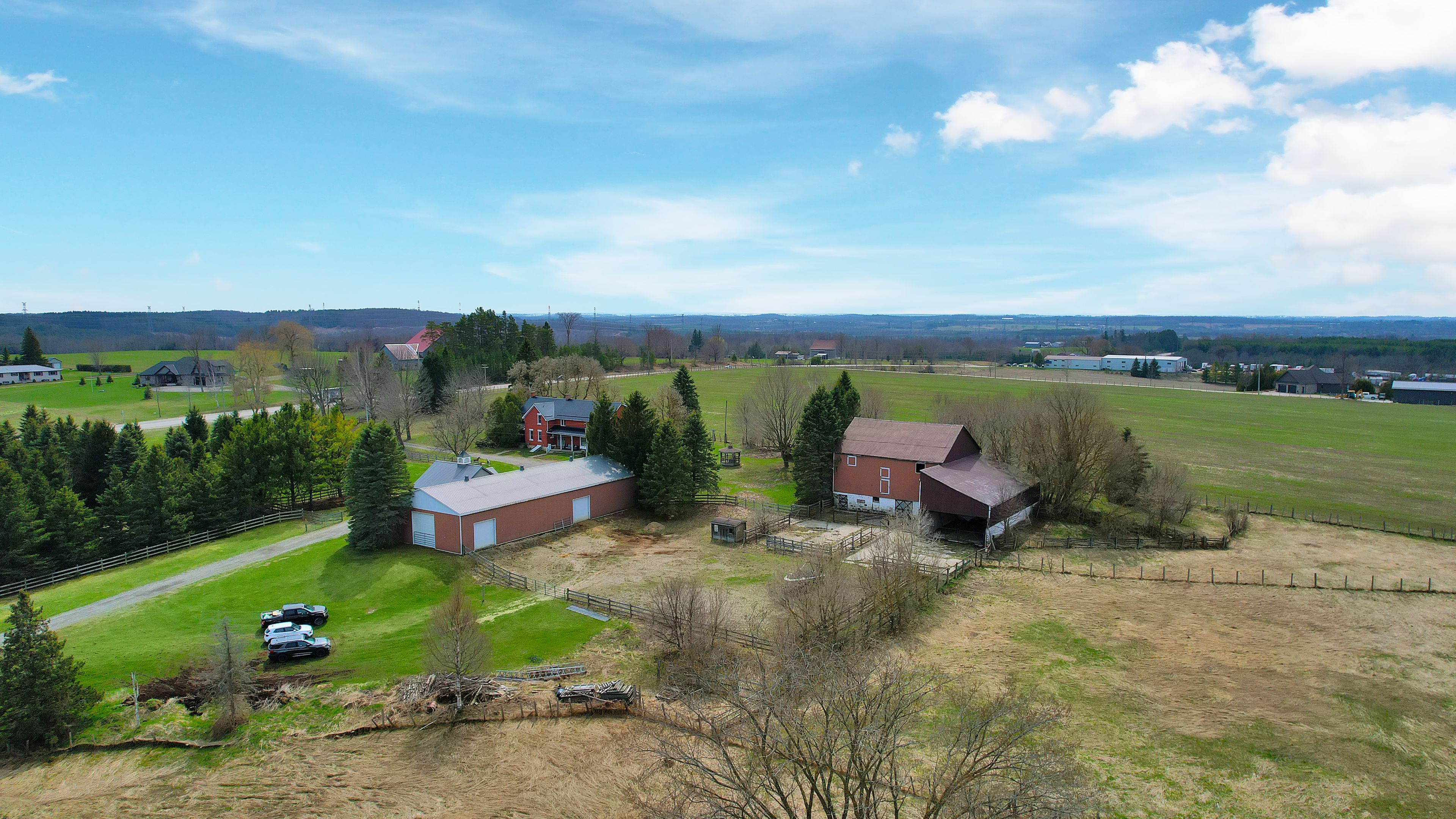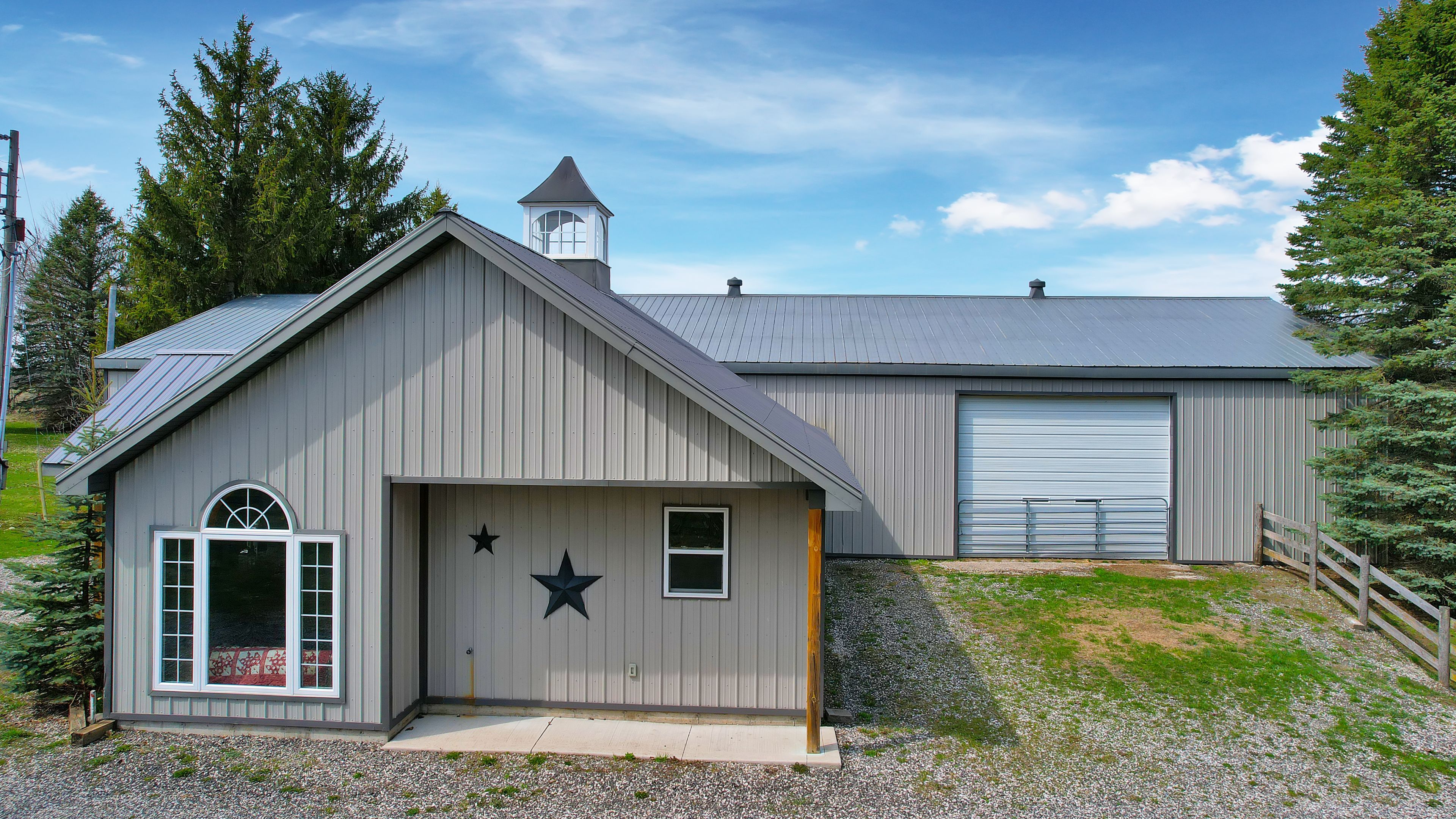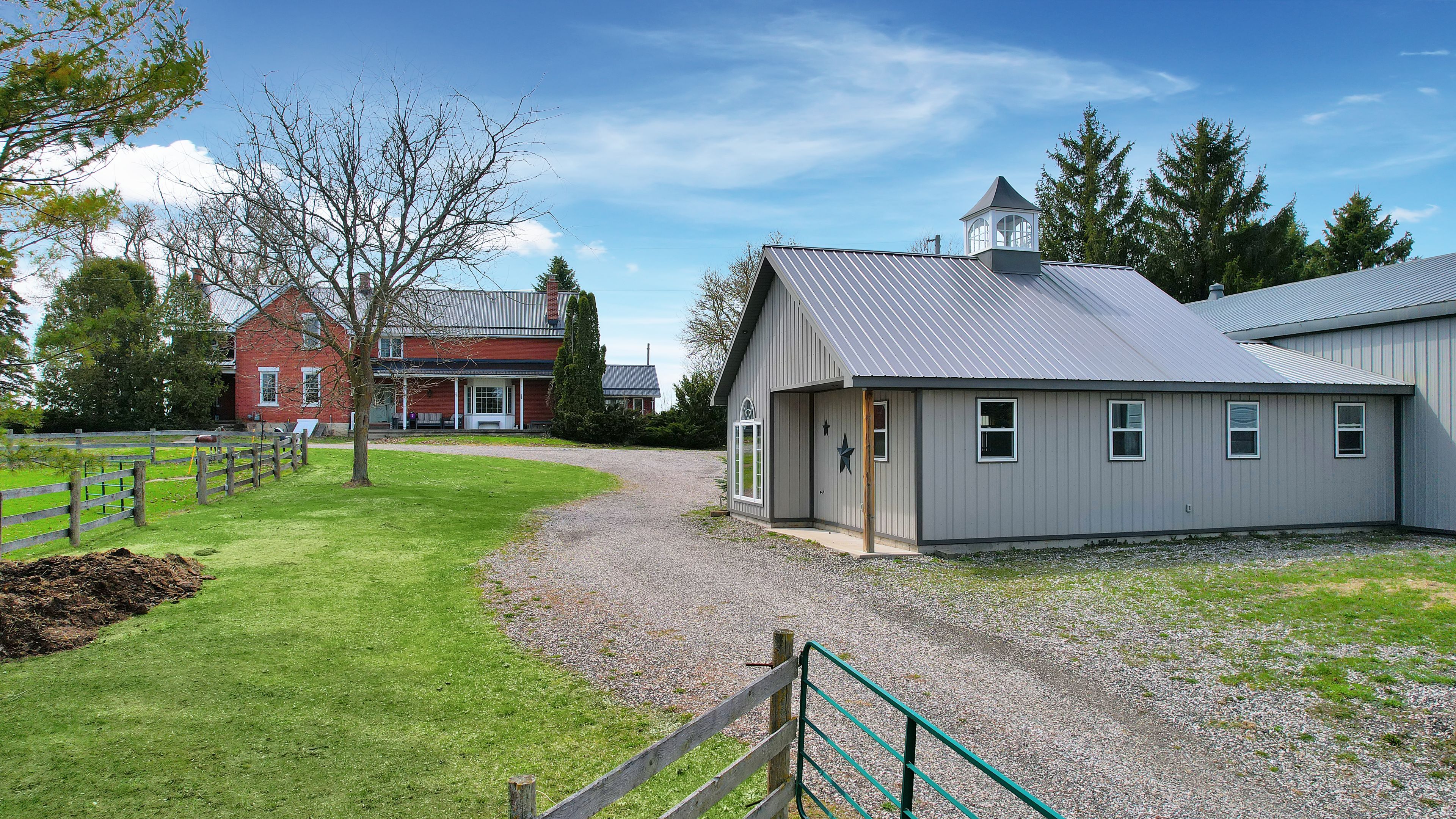 This 48+ acre farm offers plenty of space and practical features for both living and working, including roughly 30 workable acres. The home includes an impressive great room with high ceilings and large windows. The show barn is built for comfort and efficiency, with 4 stalls, a wash station, lounge area, and in-floor heating. An additional 12 stalls are located in the bank barn, providing the flexibility needed for larger operations or multiple uses.