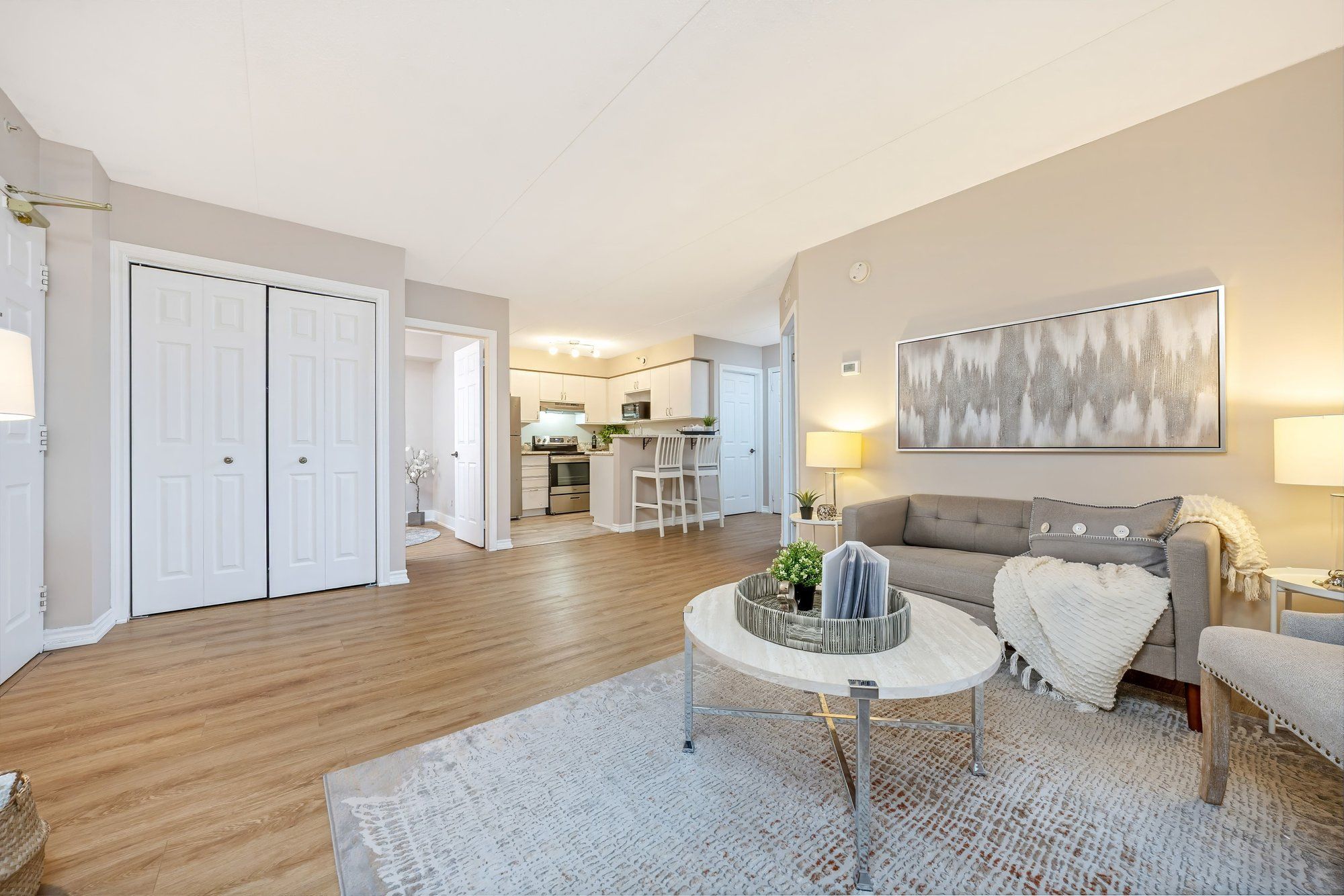 • Open-concept layout with new kitchen appliances and breakfast bar.