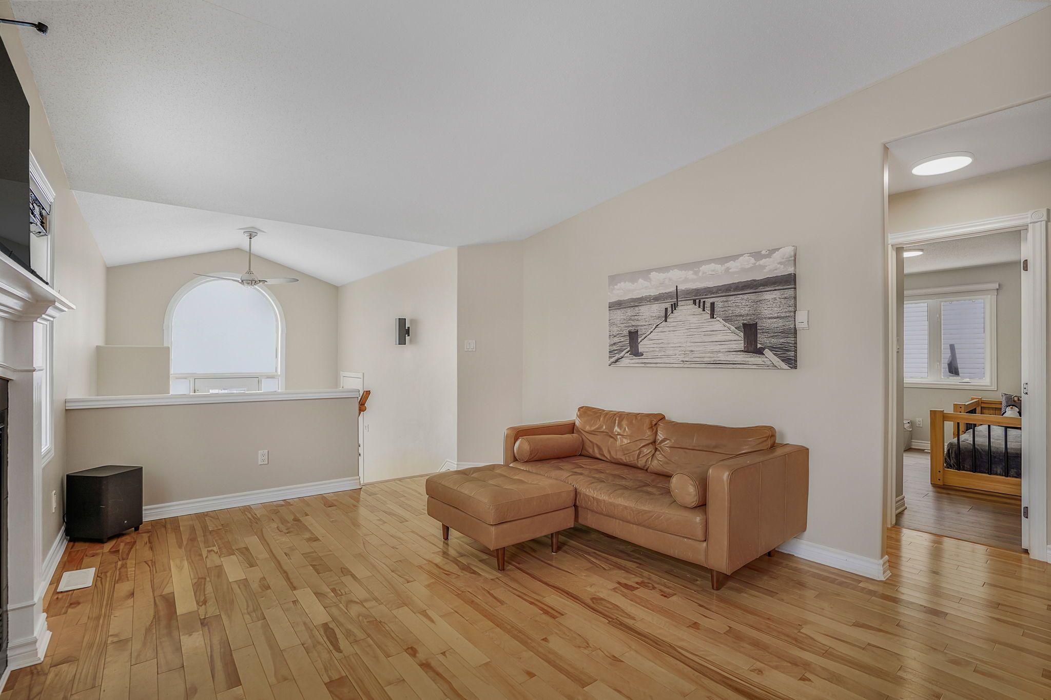 • Bright main level with cozy living room and gas fireplace.