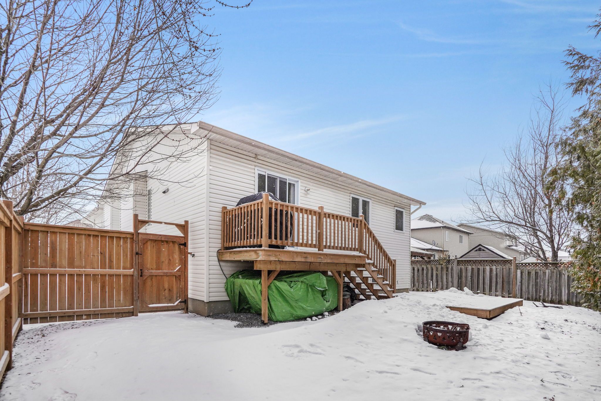 • Private backyard with spacious deck, great for relaxing or entertaining.