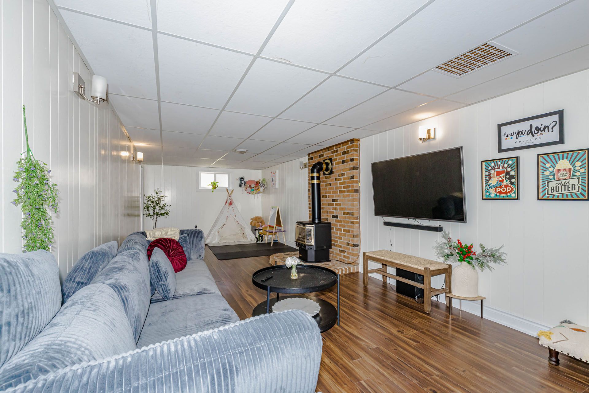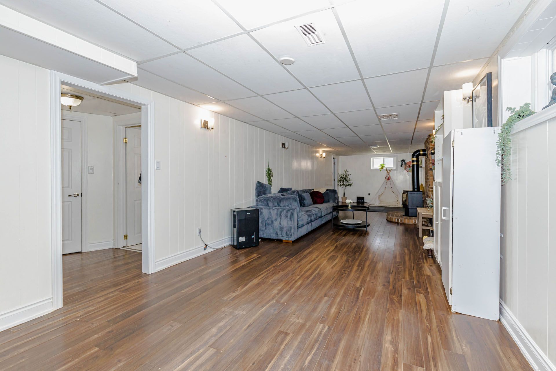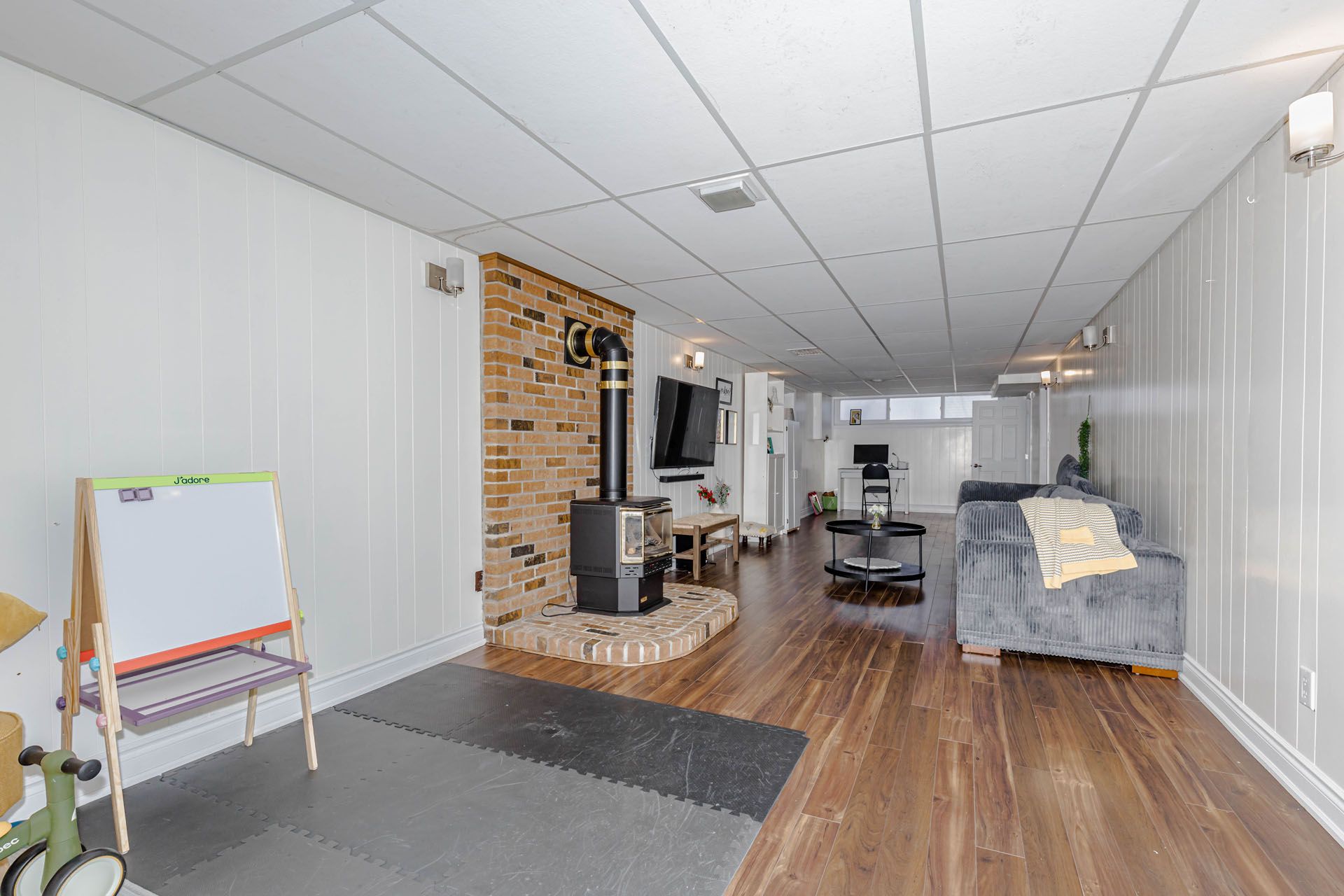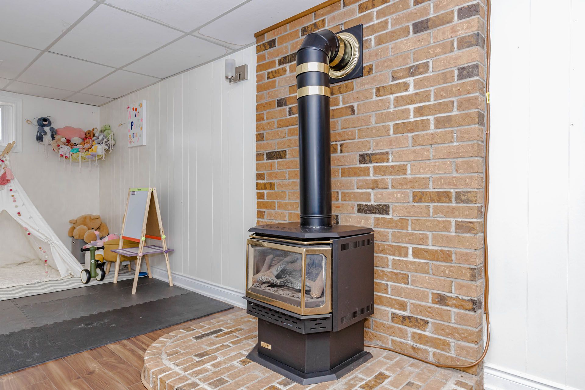 • Finished basement adds an extra bedroom and bathroom for guests.