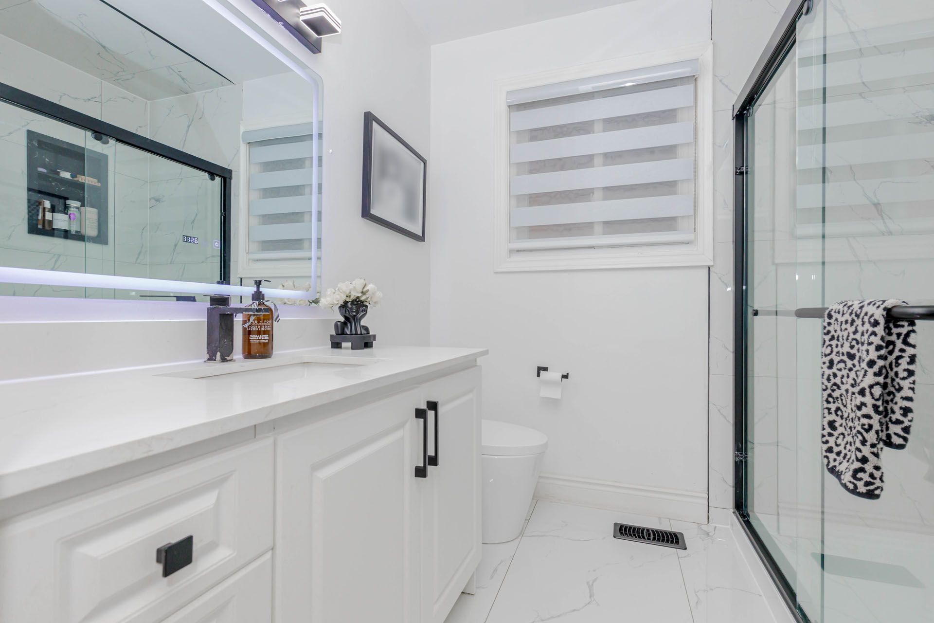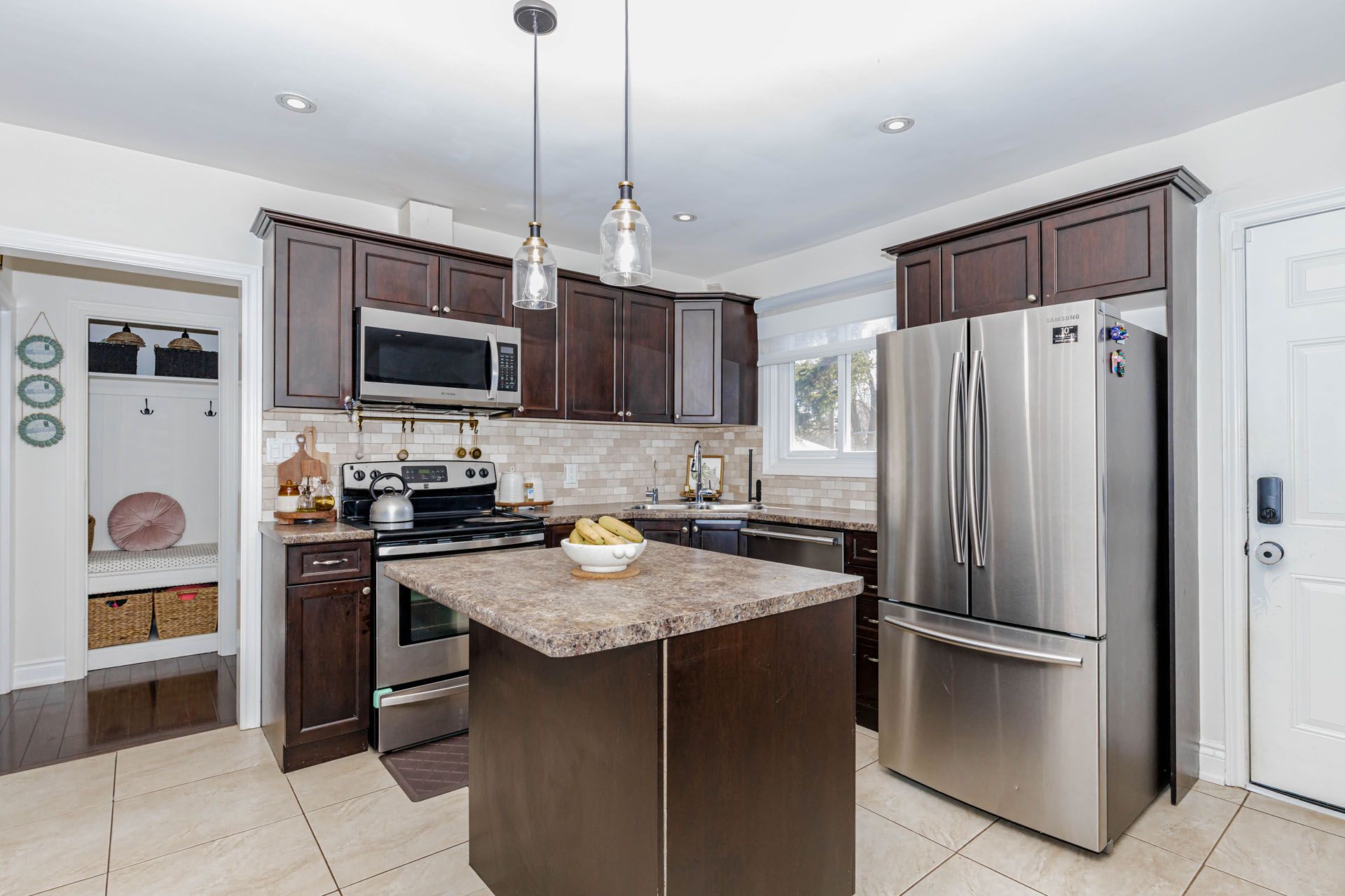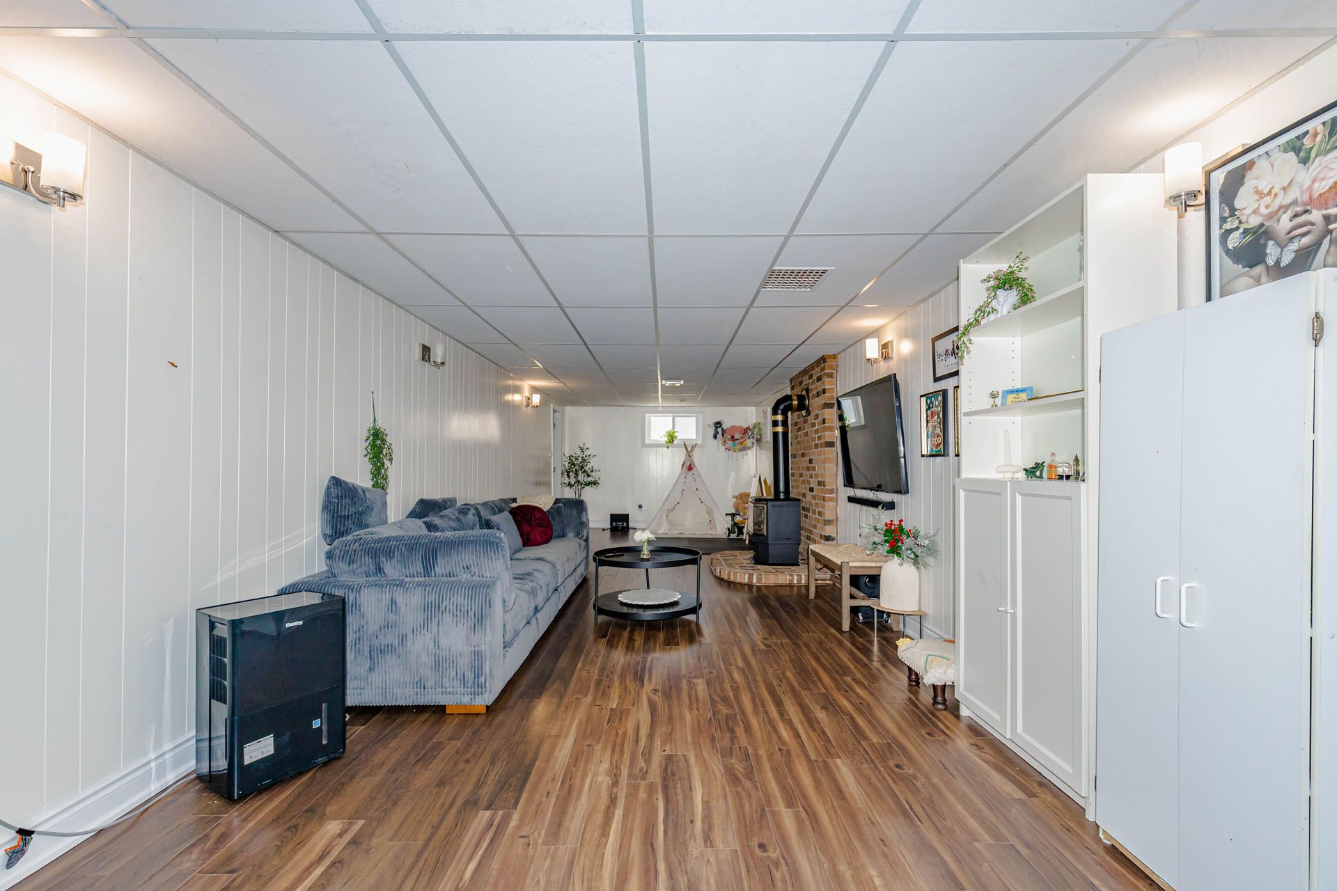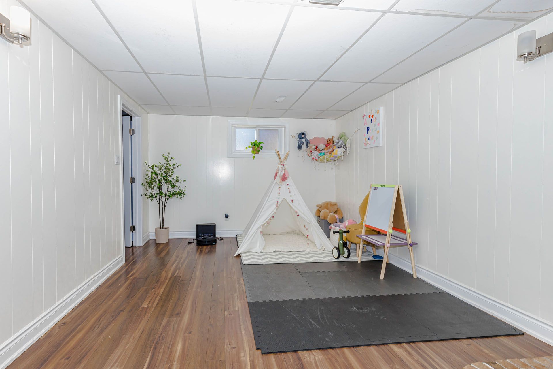 • Finished basement adds an extra bedroom and bathroom for guests.