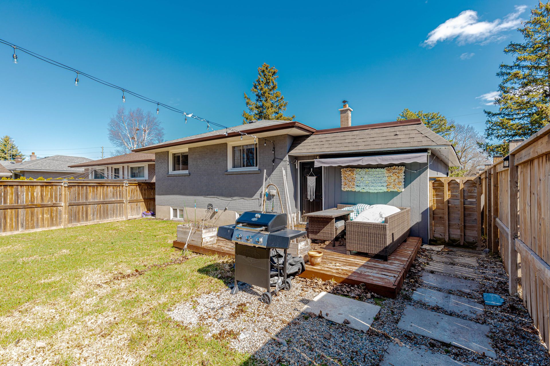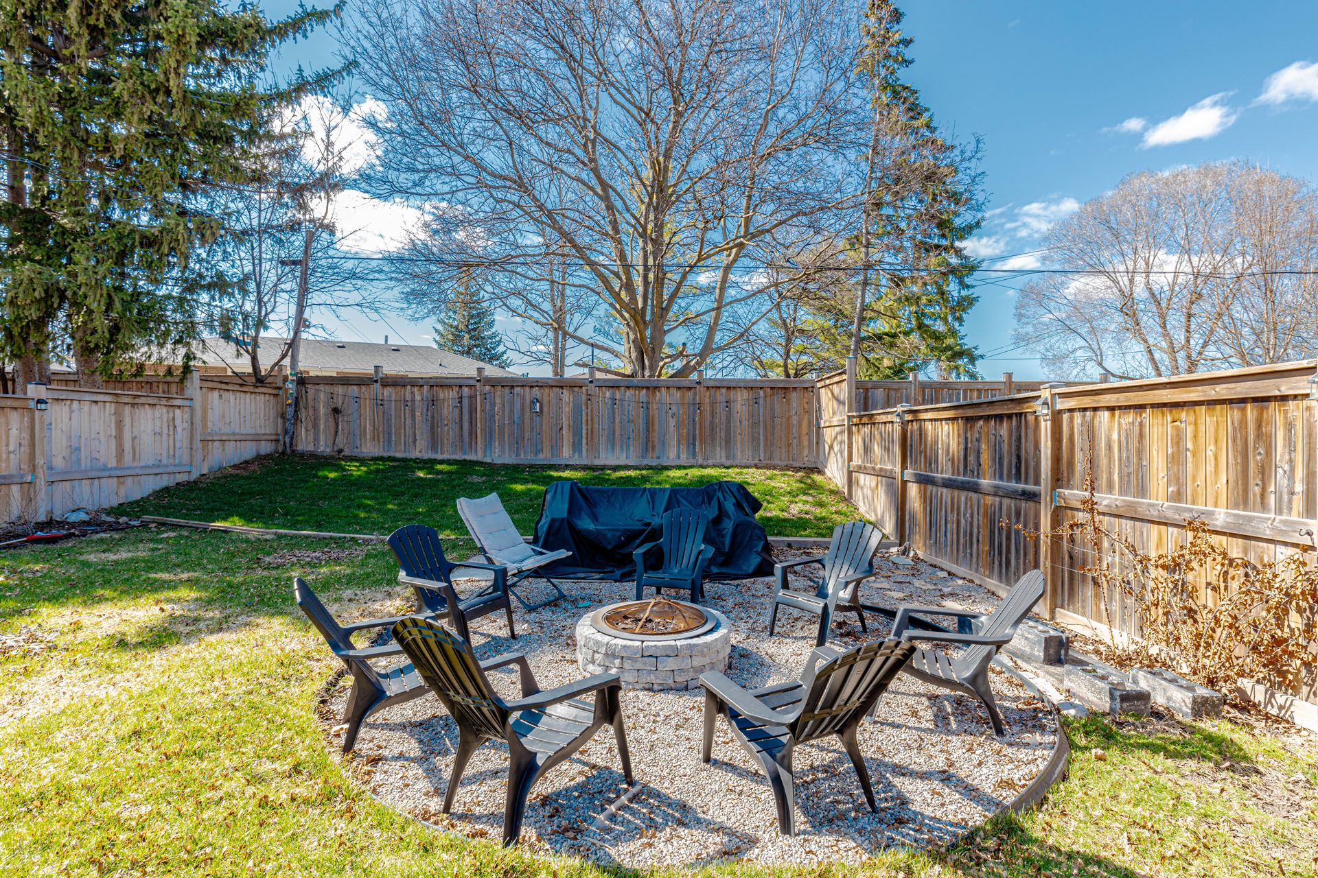 • Massive fully fenced backyard with a private fire pit for gatherings.