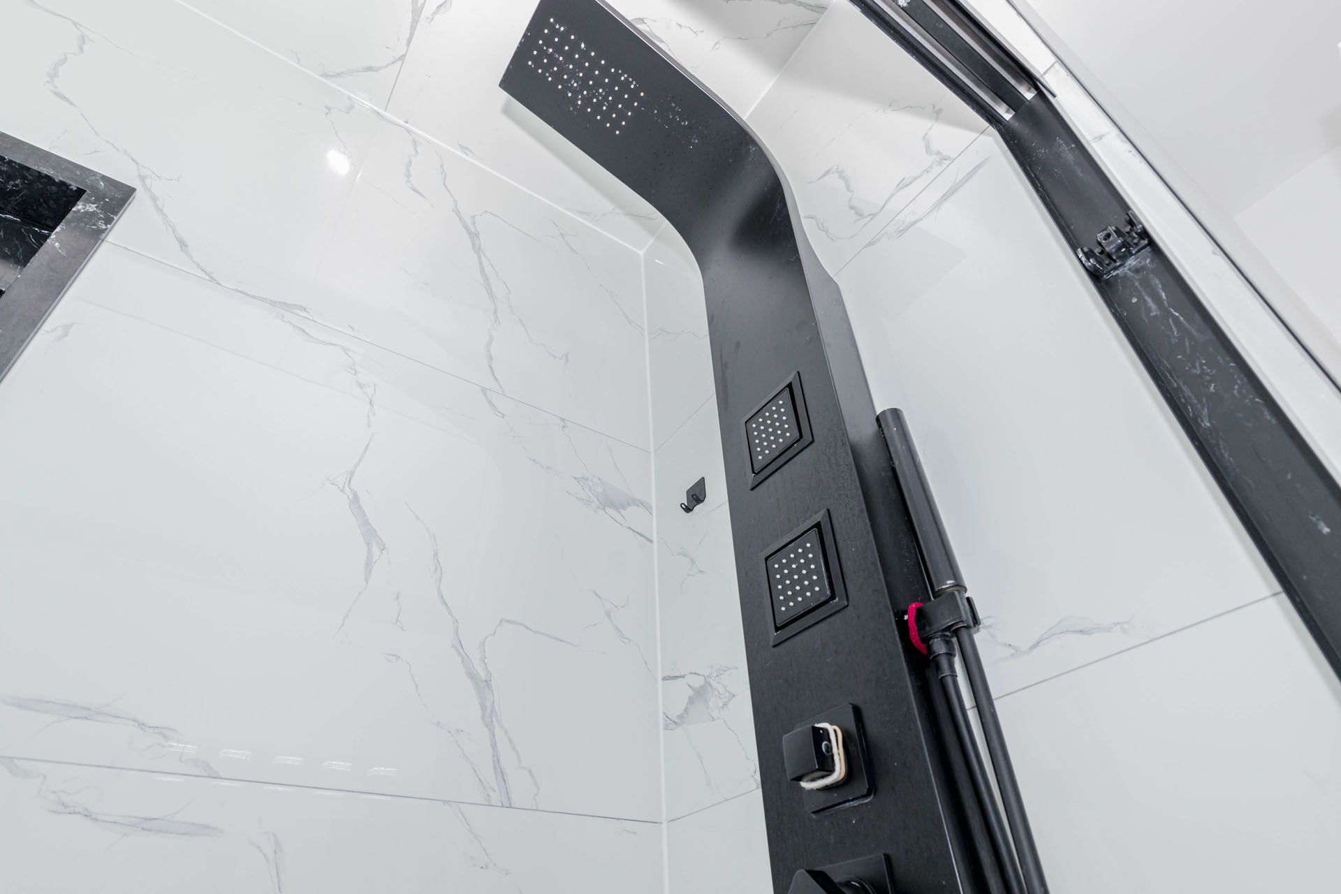 • Efficient tankless water heater ensures endless hot showers.