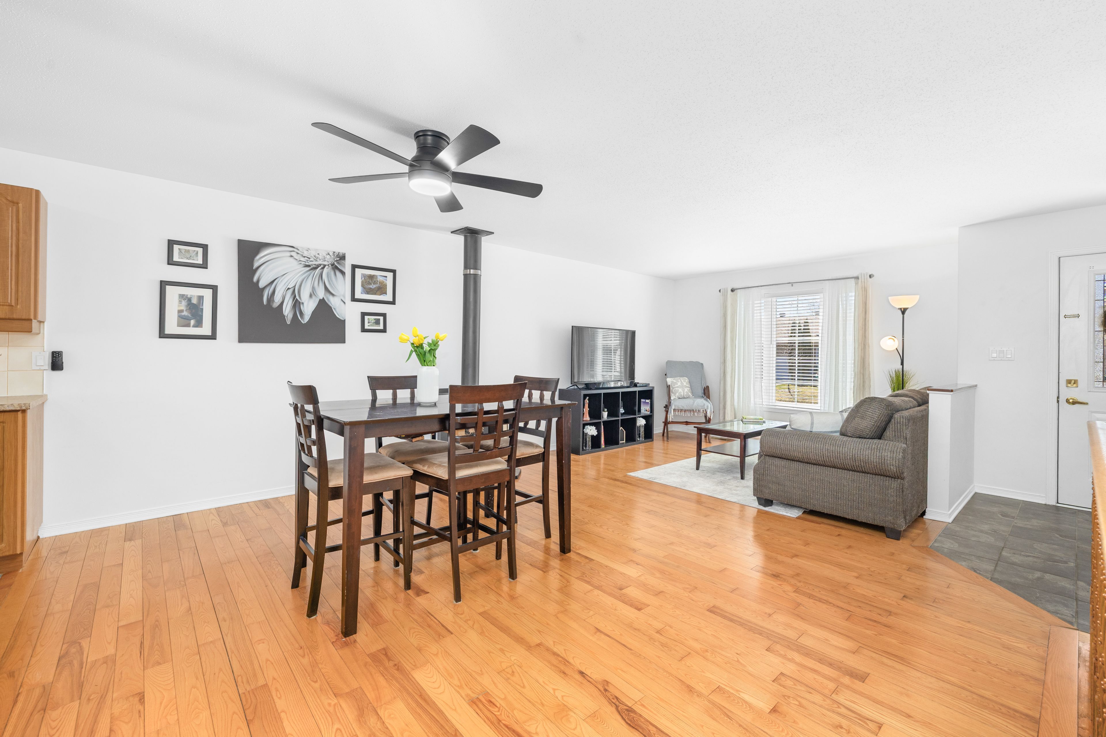 Welcome to flora street in the growing town of carleton place. This well-maintained bungalow townhouse offers a bright and functional open-concept layout, featuring elegant hardwood floors, a cozy natural gas fireplace, and plenty of natural light throughout the main living space. The main floor includes an oversized primary bedroom with a 3-piece ensuite, along with the convenience of main floor laundry and inside access to the attached garage. The kitchen and dining area provide easy access to the back deck, perfect for summer gardening and outdoor entertaining. The fully finished lower level offers excellent additional living space, including a large family room, a den, a 2-piece bathroom, and a versatile home office or flex room currently styled as a bedroom. This space could be converted into a legal bedroom with window expansion. Located just minutes from downtown carleton place, this home offers the perfect balance of comfort and functionality while being close to local shops, restaurants, great schools, and all the charm that makes small-town living so appealing.