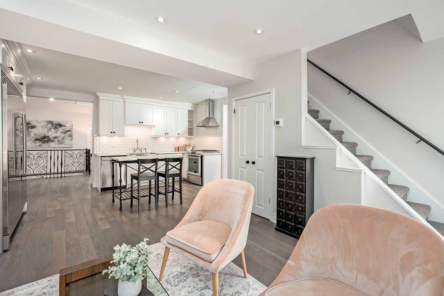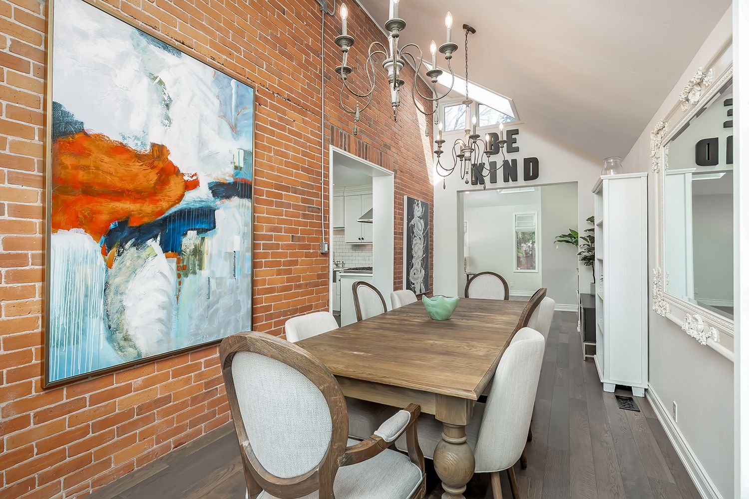 This tastefully renovated century farmhouse sits on one of the most sought after streets in downtown burlington, offering a truly unique opportunity on a premium park like 60 x 181 ft lot adjacent to the waterfront trail and bike path. This 3 bedroom, 3. 5 bathroom home features hardwood floors, exposed brick, skylights and pot lighting that add warmth and character throughout. The main level features a beautiful primary bedroom with a spa inspired 5 piece ensuite and a large walk in closet with stacked washer and dryer. The open concept kitchen includes stainless steel appliances, marble counters, tile backsplash and under cabinet lighting. Enjoy the formal dining room with exposed brick, vaulted ceiling and a rough in wet bar, perfect for entertaining. Along the back is an inviting family room with custom built ins, a charming office or reading nook, and a powder room overlooking the expansive fully fenced backyard. The upper level offers 2 bedrooms and a full bathroom, ideal for kids or guests. The finished lower level provides even more flexibility, featuring a comfortable rec room or home office along with a 3 piece bathroom. There is inside access to the spacious 1. 5 car garage with a bonus fully finished kids retreat above, complete with electric fireplace and ac. The driveway provides parking for 4 cars. Steps to schools, parks, lake ontario, spencer smith park, the ymca, performing arts centre, library, shops and restaurants, this home offers an unmatched walk-able lifestyle in downtown burlington.