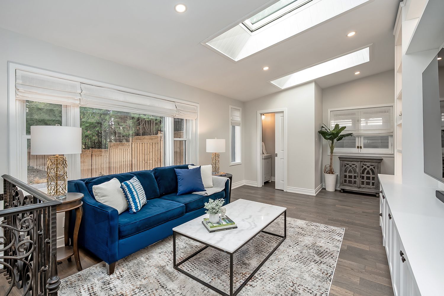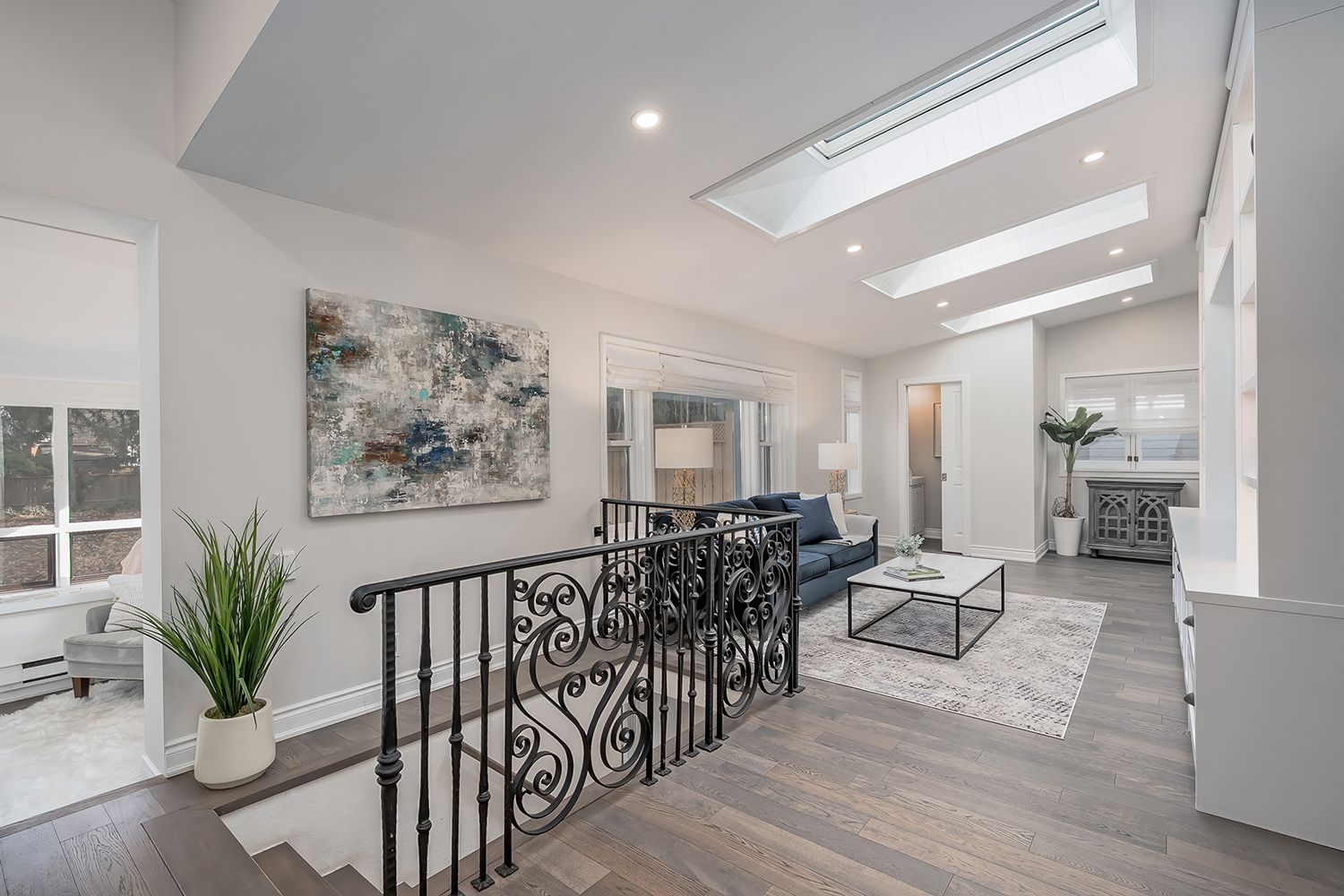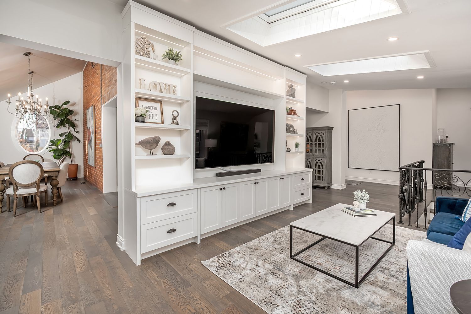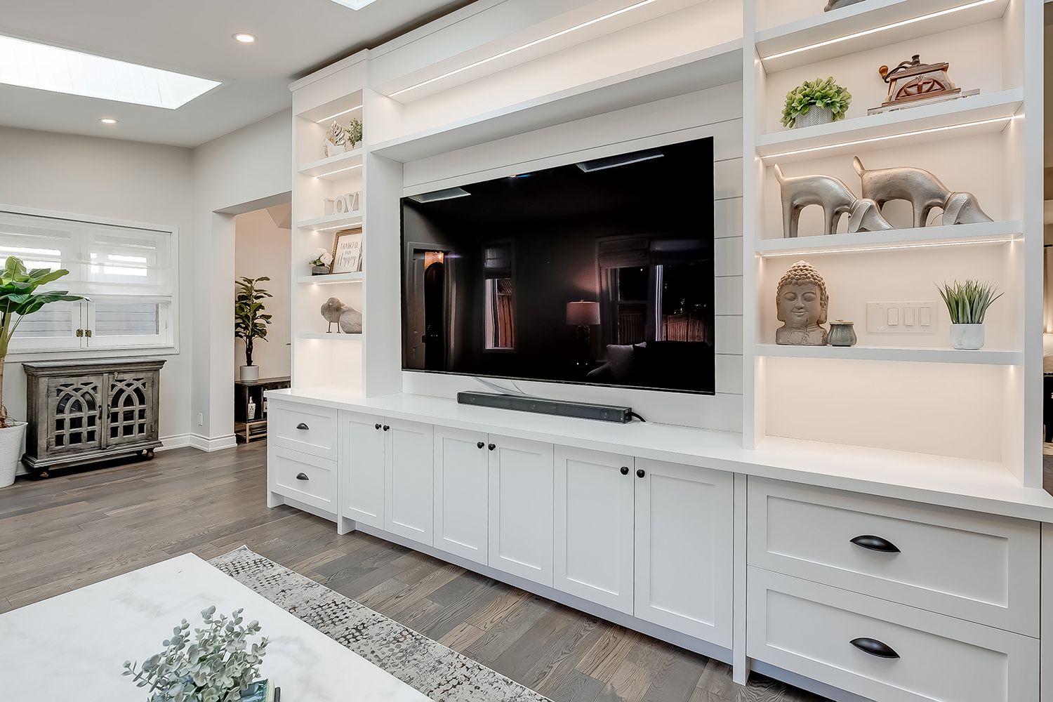 • Family room with custom built-ins and an inviting office nook.