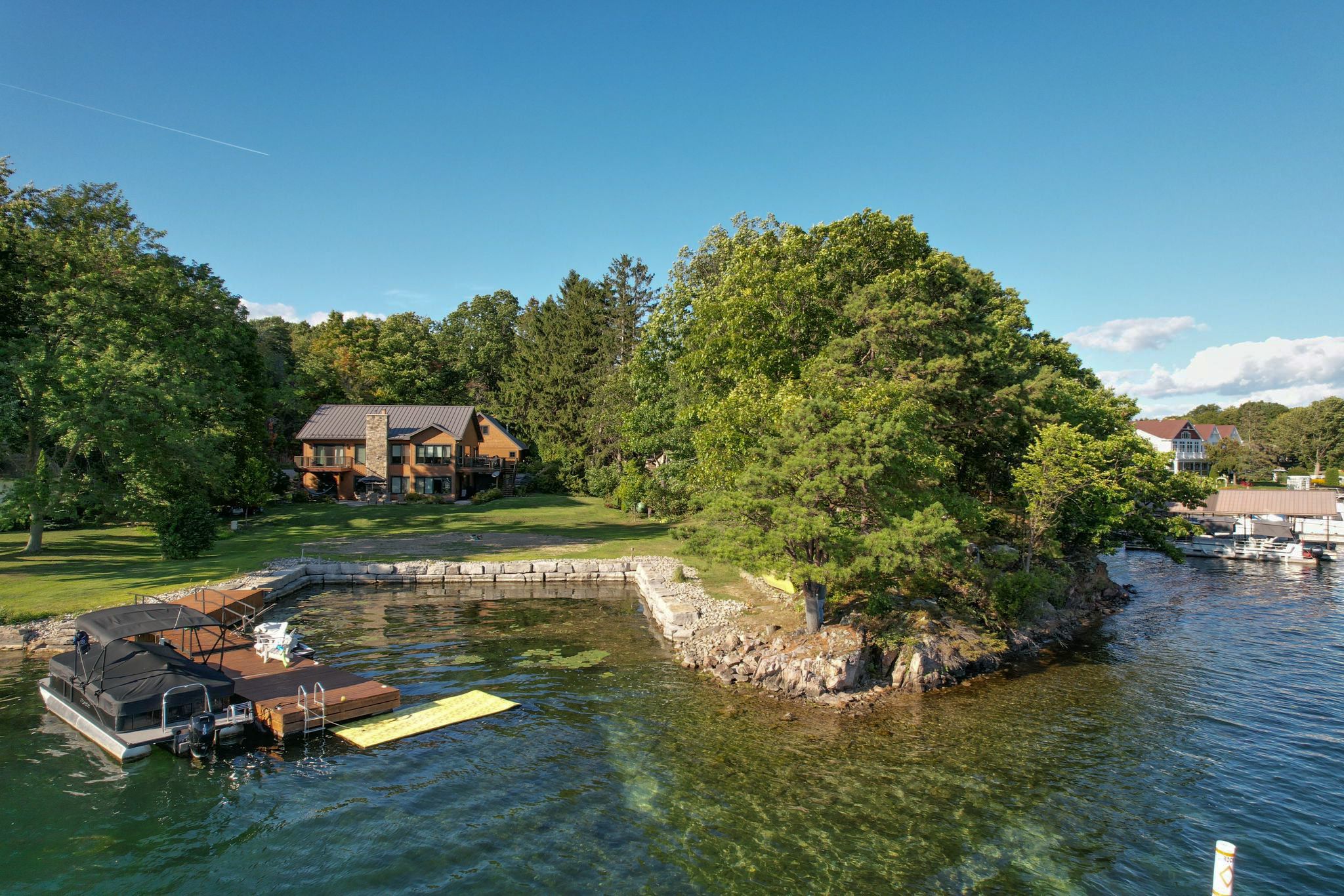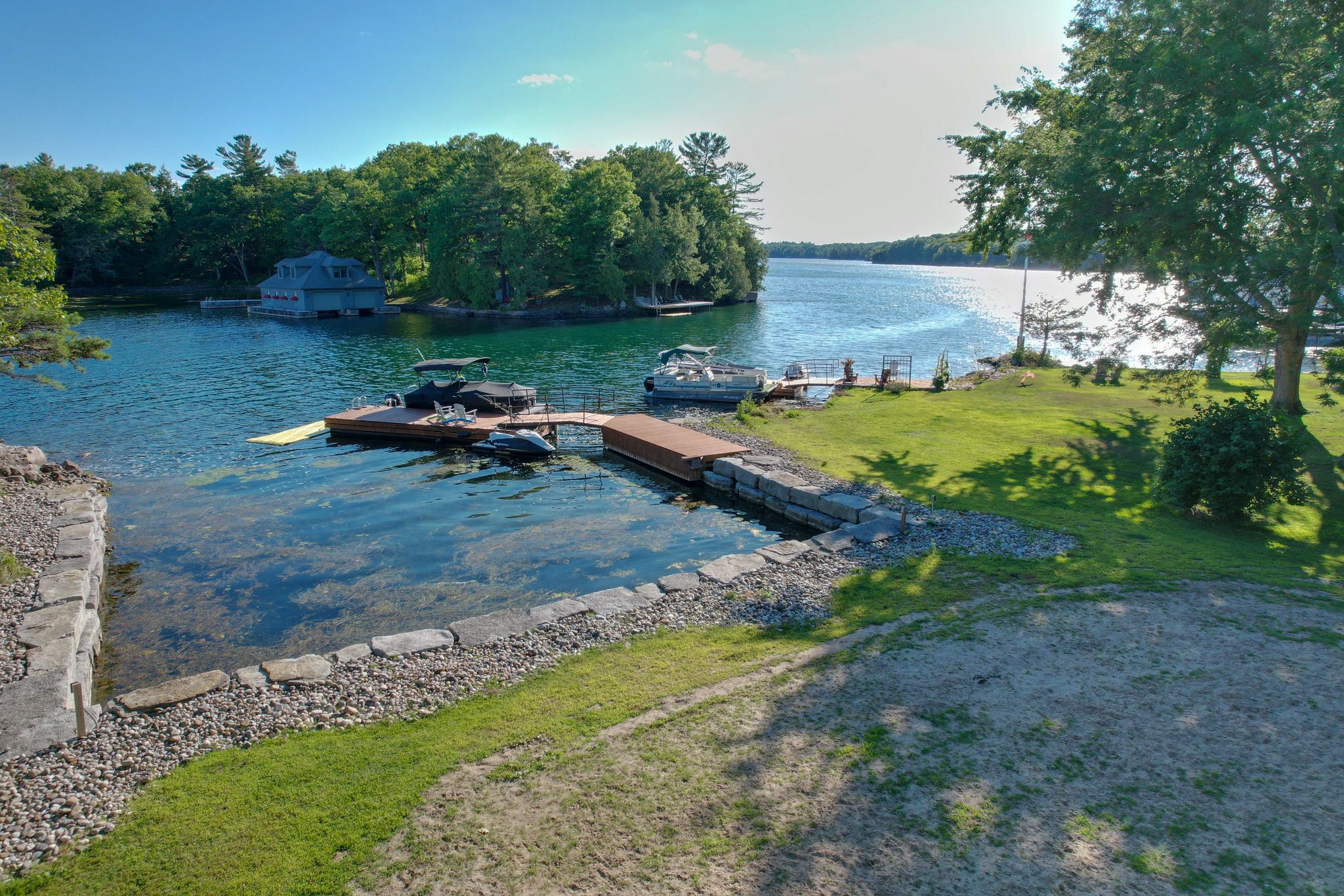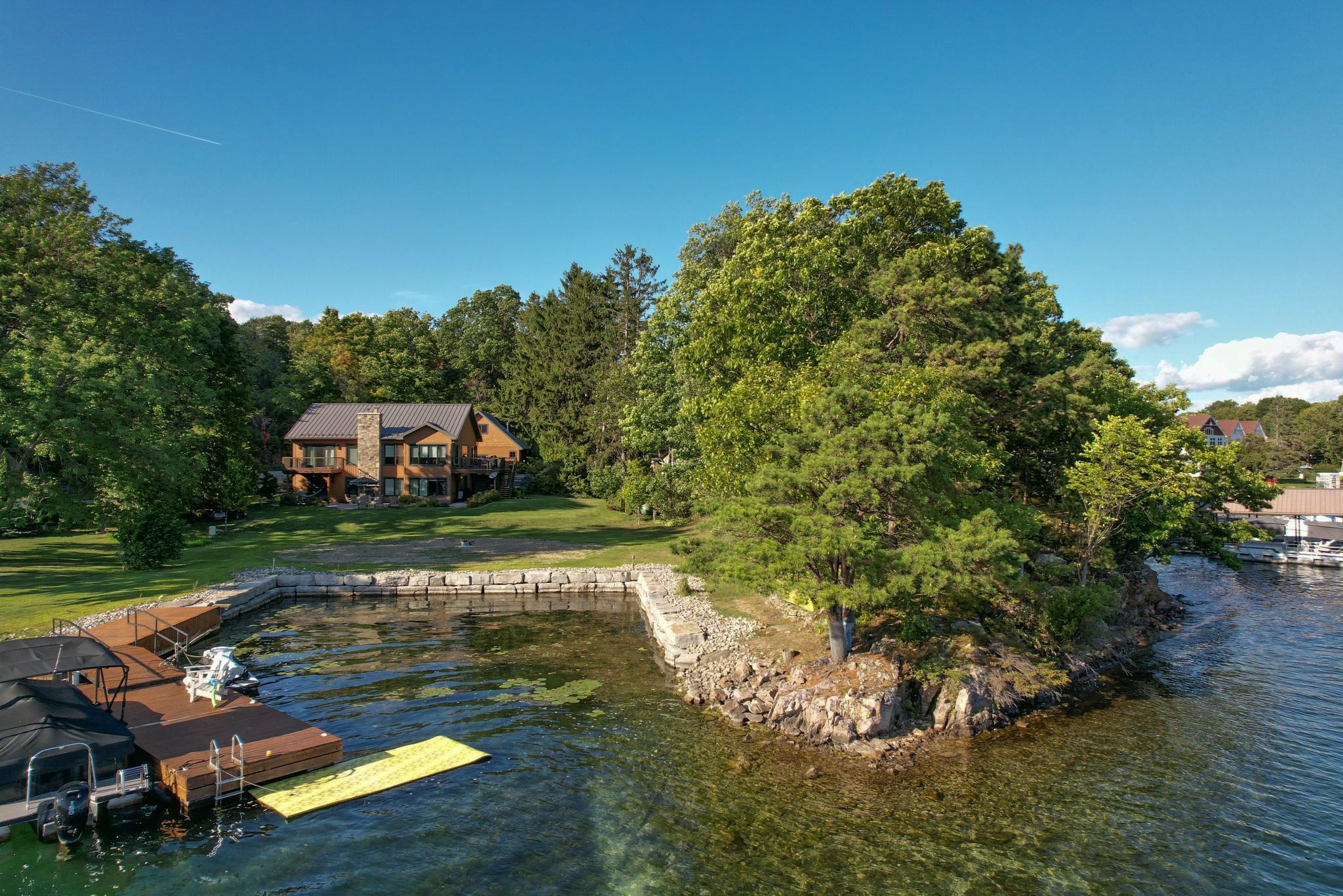 • Private, protected waterfront perfect for boating, swimming, and relaxing.