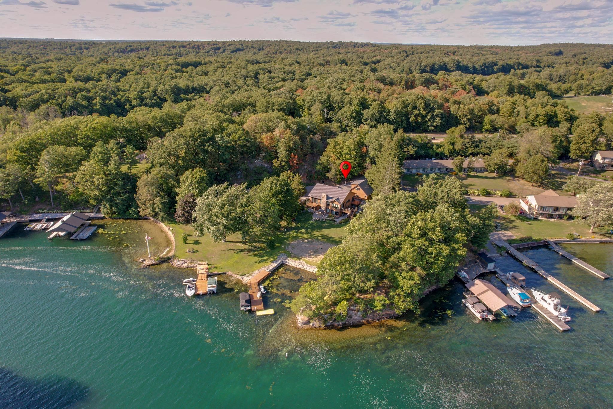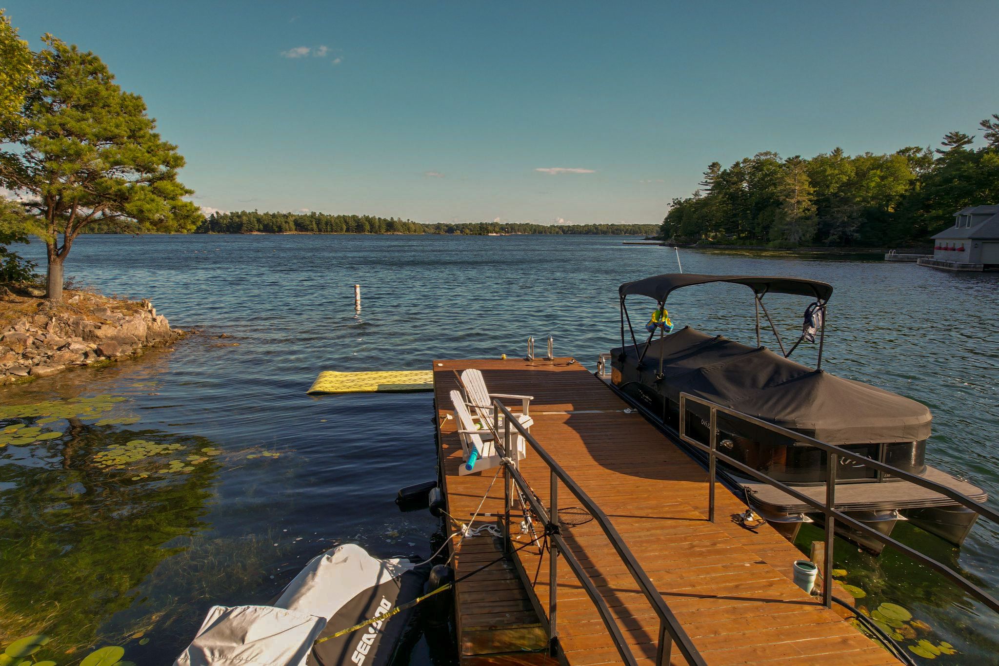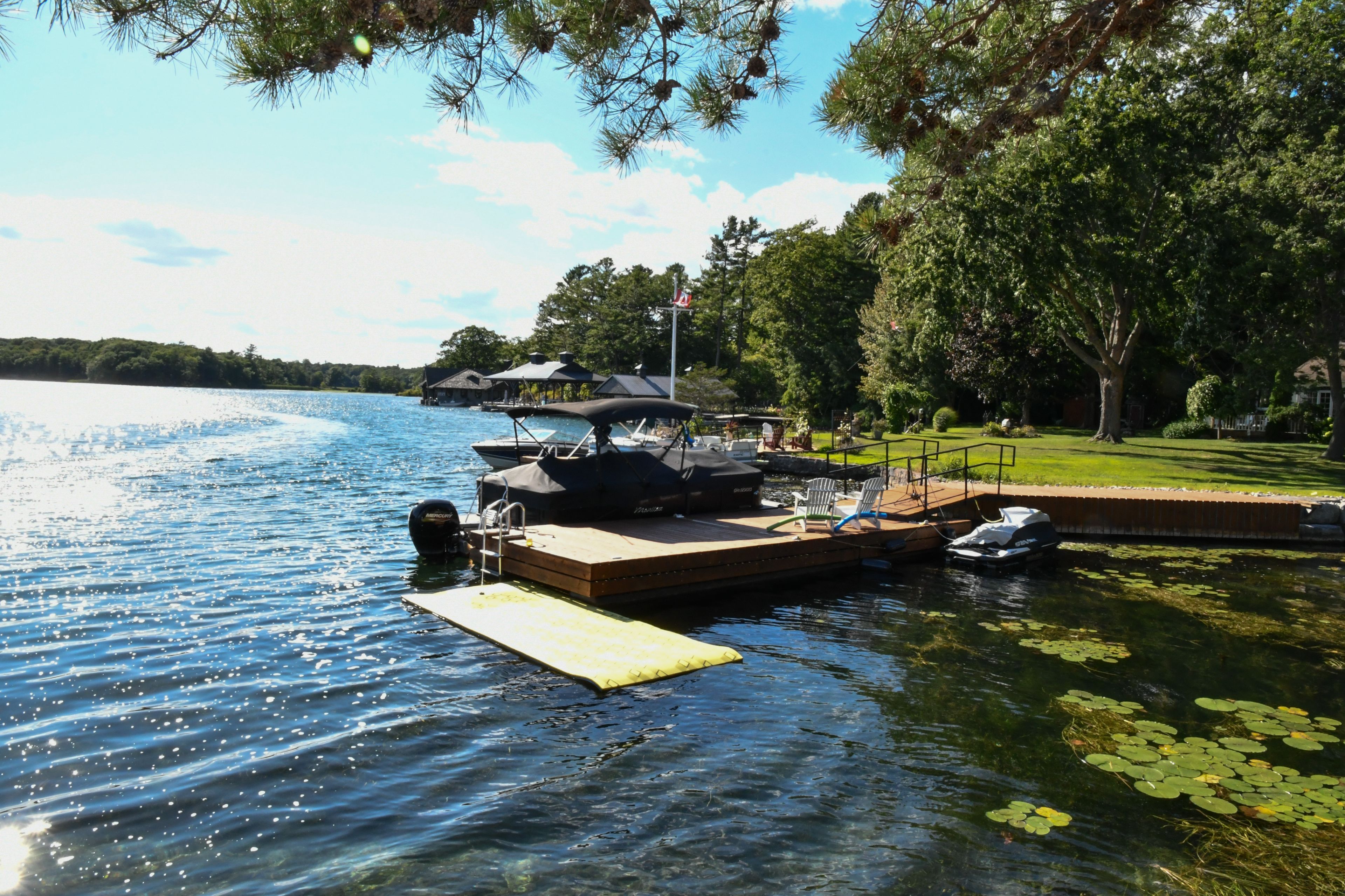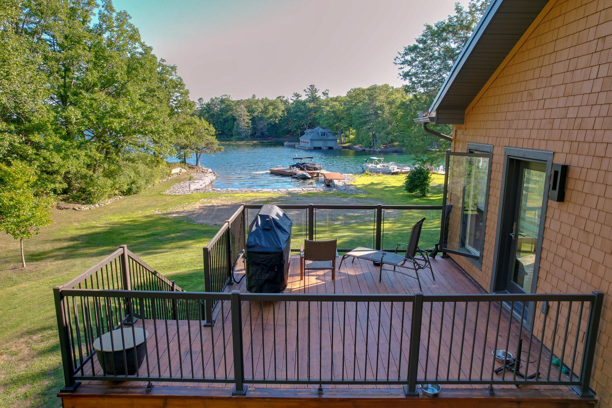 • Private, protected waterfront perfect for boating, swimming, and relaxing.
