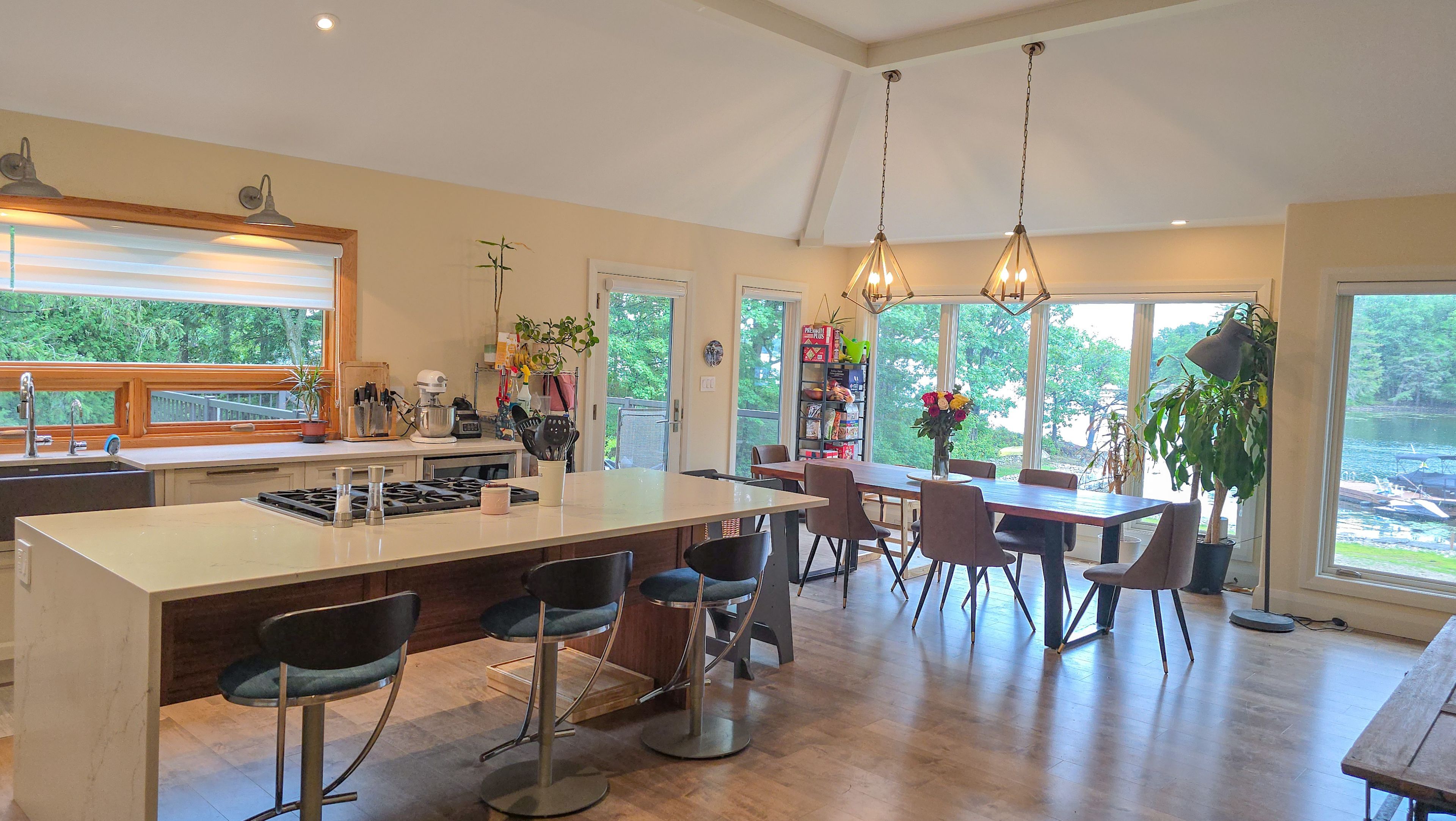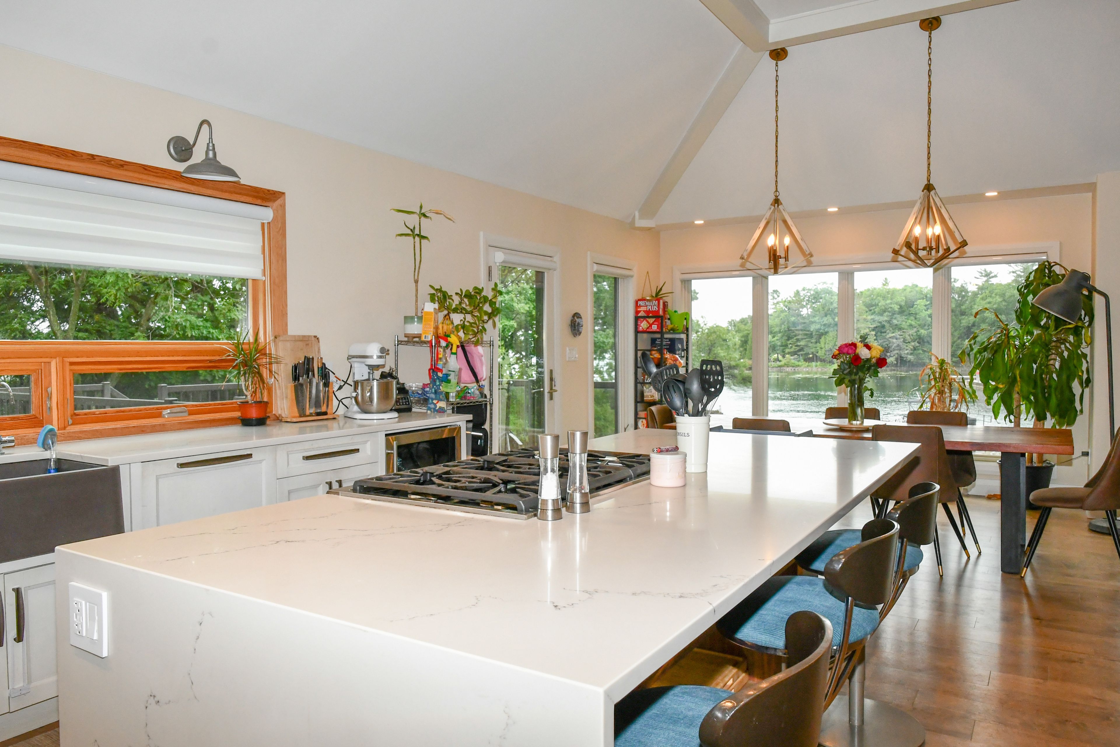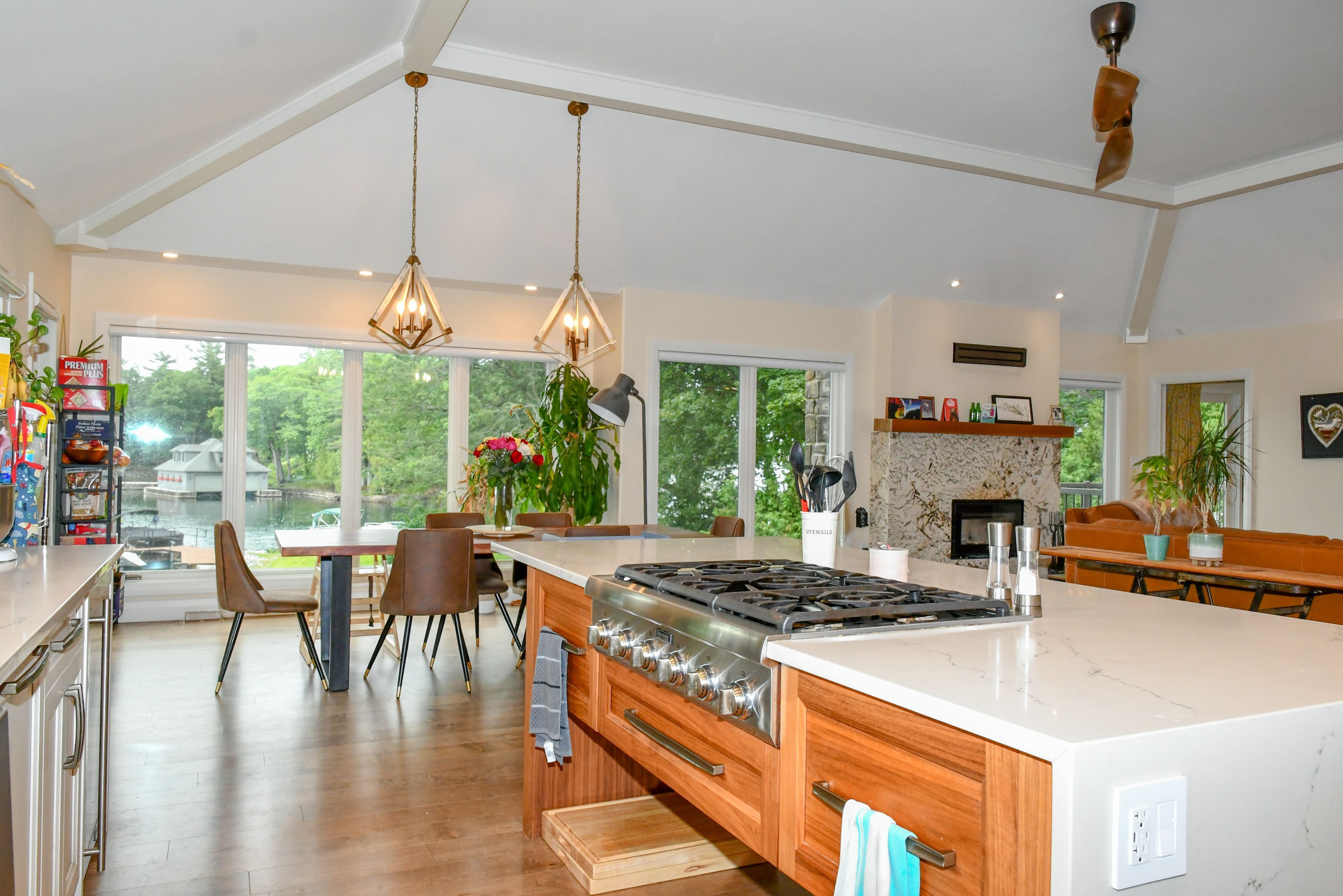 Set along the stunning shores of the st. Lawrence river in the heart of the thousand islands, 403 thousand island parkway offers a rare opportunity to own a truly exceptional waterfront retreat. With deep, clear water and stunning river views, this property delivers the perfect blend of natural beauty and refined living. Enjoy a private, protected waterfront ideal for boating, swimming, or simply relaxing in complete tranquility. Whether it's morning coffee overlooking the water or evenings taking in the peaceful surroundings, every moment here is defined by the river's beauty. Built in 2017, this custom-designed home showcases modern elegance and quality craftsmanship throughout. Expansive windows capture breathtaking views, while high-end finishes create a sophisticated yet comfortable living space. Two spacious detached garages provide ample room for vehicles, storage, or hobbies. Perfectly located, the property offers easy access to local restaurants, smuggler's glen golf course, and the thousand islands parkway walking and cycling path stretching from gananoque to brockville. This is a rare chance to experience luxury waterfront living in one of canada's most sought-after destinations-where privacy, recreation, and natural beauty come together seamlessly.