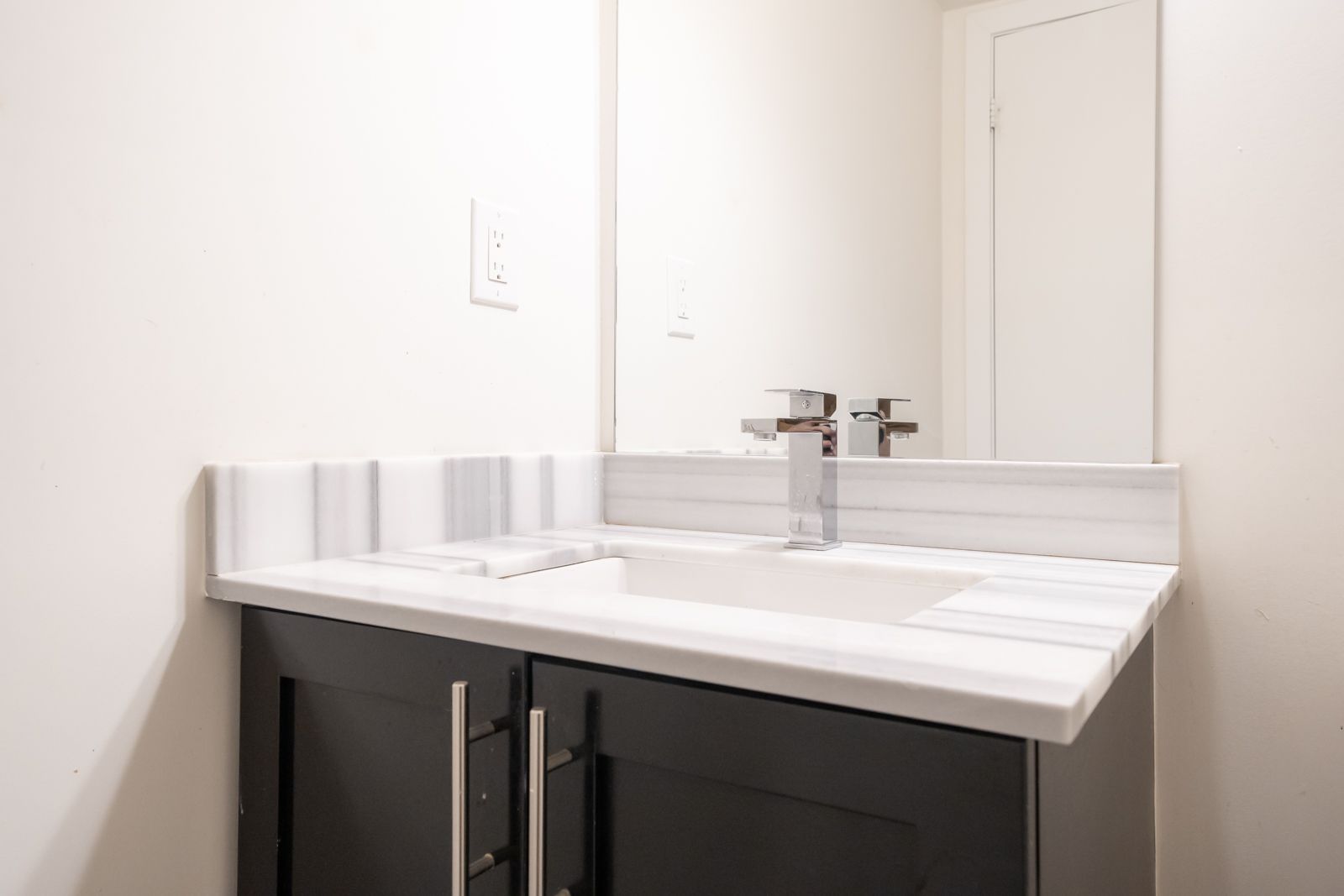 • Stylish kitchen boasting quartz countertops and stainless steel appliances.