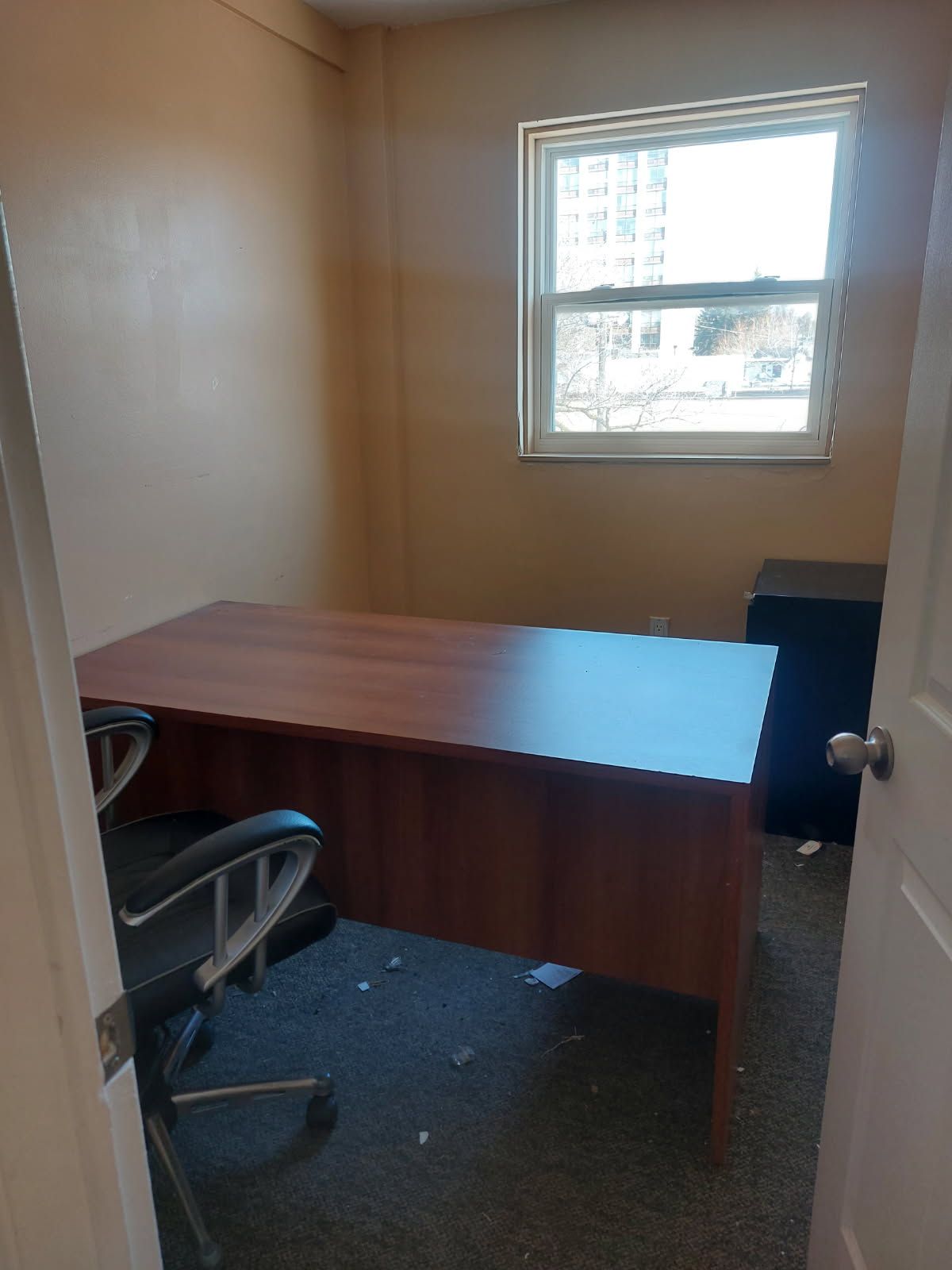 • Office space comes with a desk and rolling chair provided.