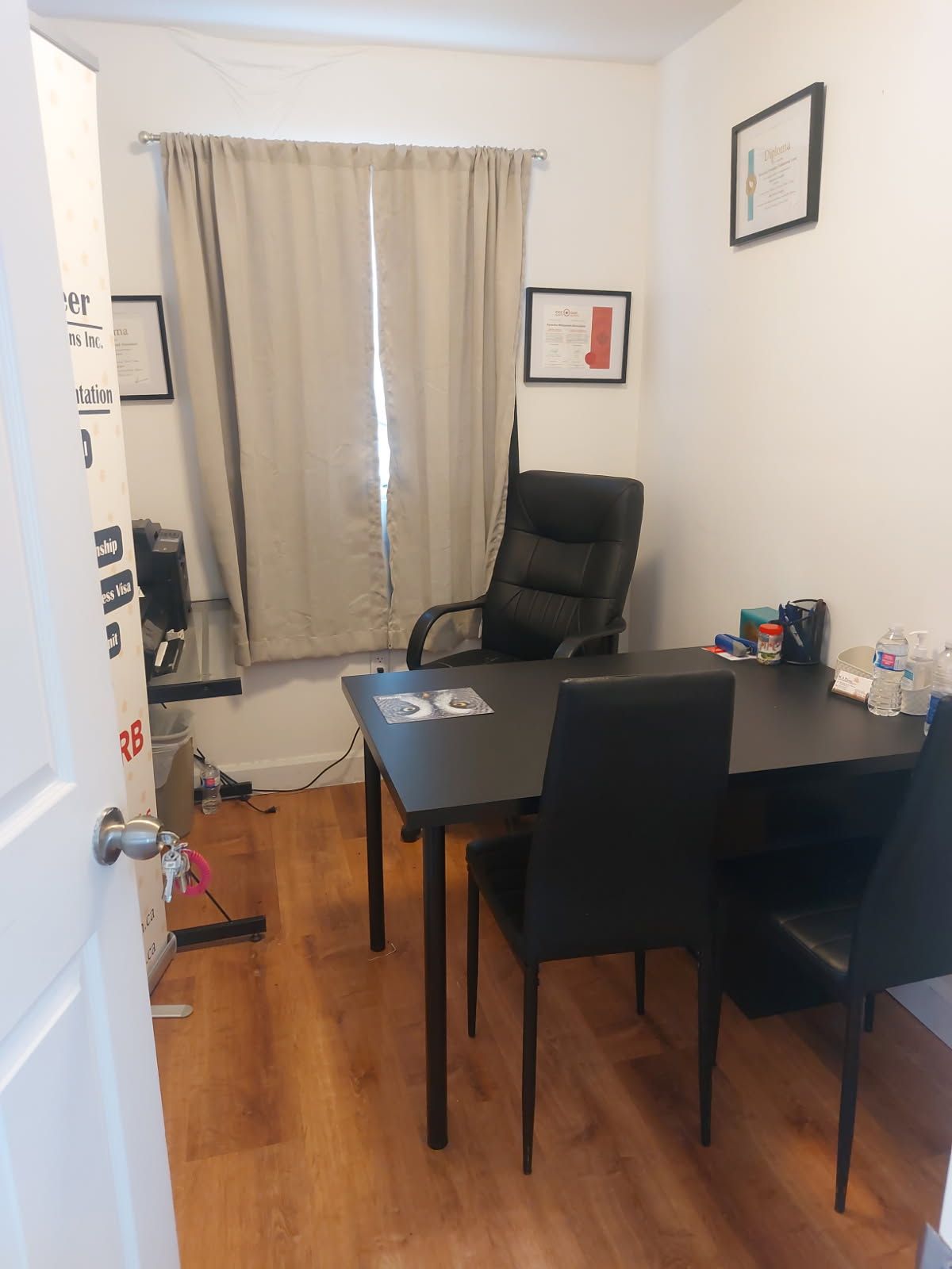 Office includes 1 desk and 1 rolling chair. You have access to the internet, kitchenette, and the board rooms(on request). There is a shared parking lot and receptionist on site for mailing purposes.