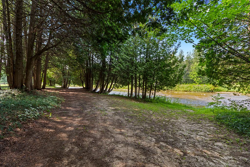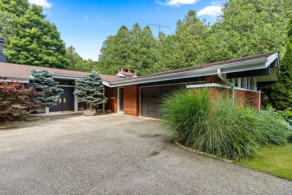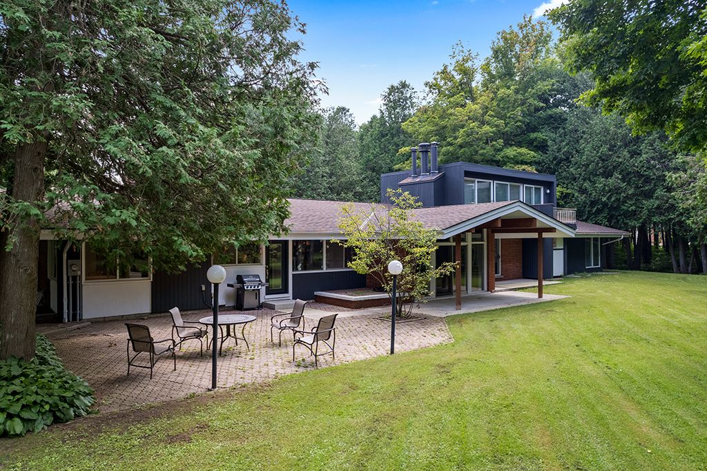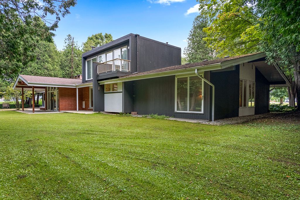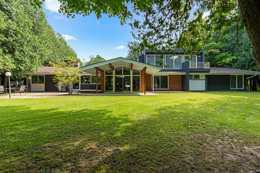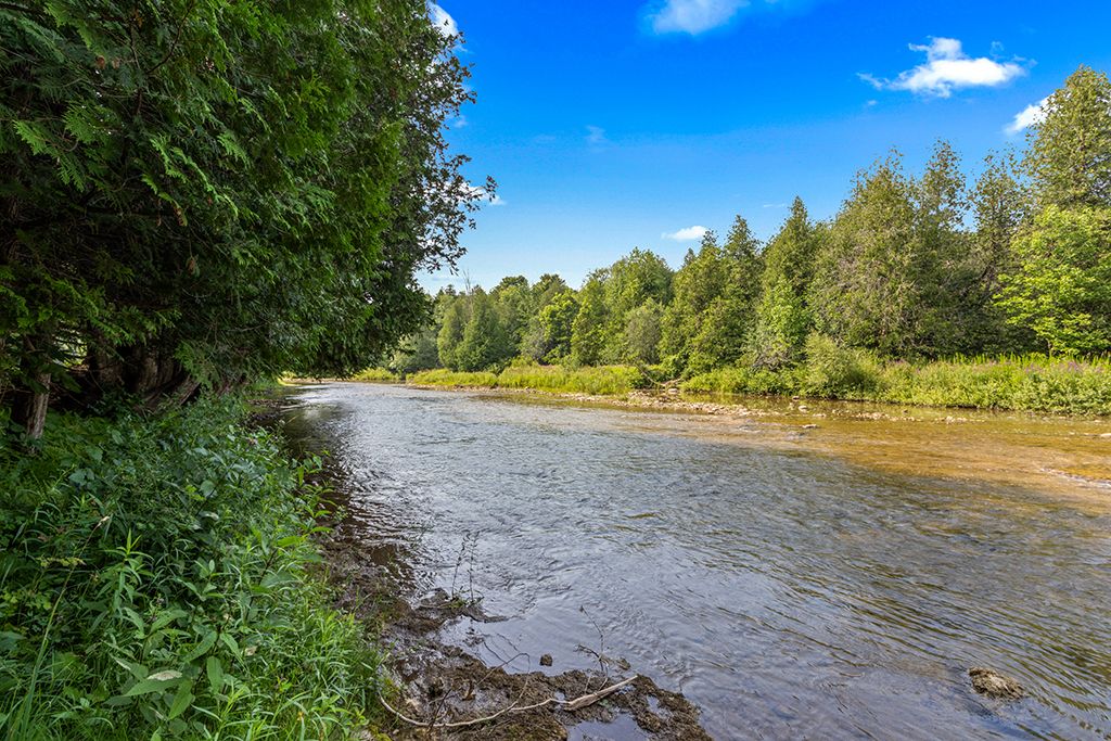 Architectural elegance meets natural serenity in this 3,500 sq. Ft. Frank lloyd wright-inspired bungalow, set on over 5 acres backing directly onto the saugeen river. Swim, fish, kayak, paddleboard, canoe, or cross-country ski-right from your own backyard. A rare blend of timeless design, privacy, and year-round recreation, this home exemplifies wright's philosophy of harmony between form and nature. Striking horizontal lines, vaulted ceilings, expansive windows, and rich natural materials frame breathtaking countryside views. The open-concept interior offers warmth and versatility from a chef's kitchen to a sun-drenched dining area and living room, with wood-burning fireplace, and a separate family room with a second wood burning fireplace. Multiple walkouts extend living space outdoors, where a tranquil riverfront patio invites you to relax and entertain in total seclusion. The expansive primary suite is a true retreat, featuring a spa-inspired ensuite, private patio, and loft area. Additional bedrooms provide flexibility for guests, family, or a home office. The elongated u-shaped driveway sets the home well back from the municipally maintained road, creating a safe and private setting ideal for children, pets and seniors alike. Designed for adaptability, the layout can easily accommodate additional ensuites or a finished basement. Located just outside durham, this peaceful haven is steps from mcgowan falls and minutes from the art, food, and culture of the grey bruce region. Winter brings nearby beaver valley skiing, while warmer months offer hiking, camping, and boating on lake huron or georgian bay. A rare offering where architectural sophistication meets the beauty at the mouth of the bruce peninsula-just two hours from the gta.