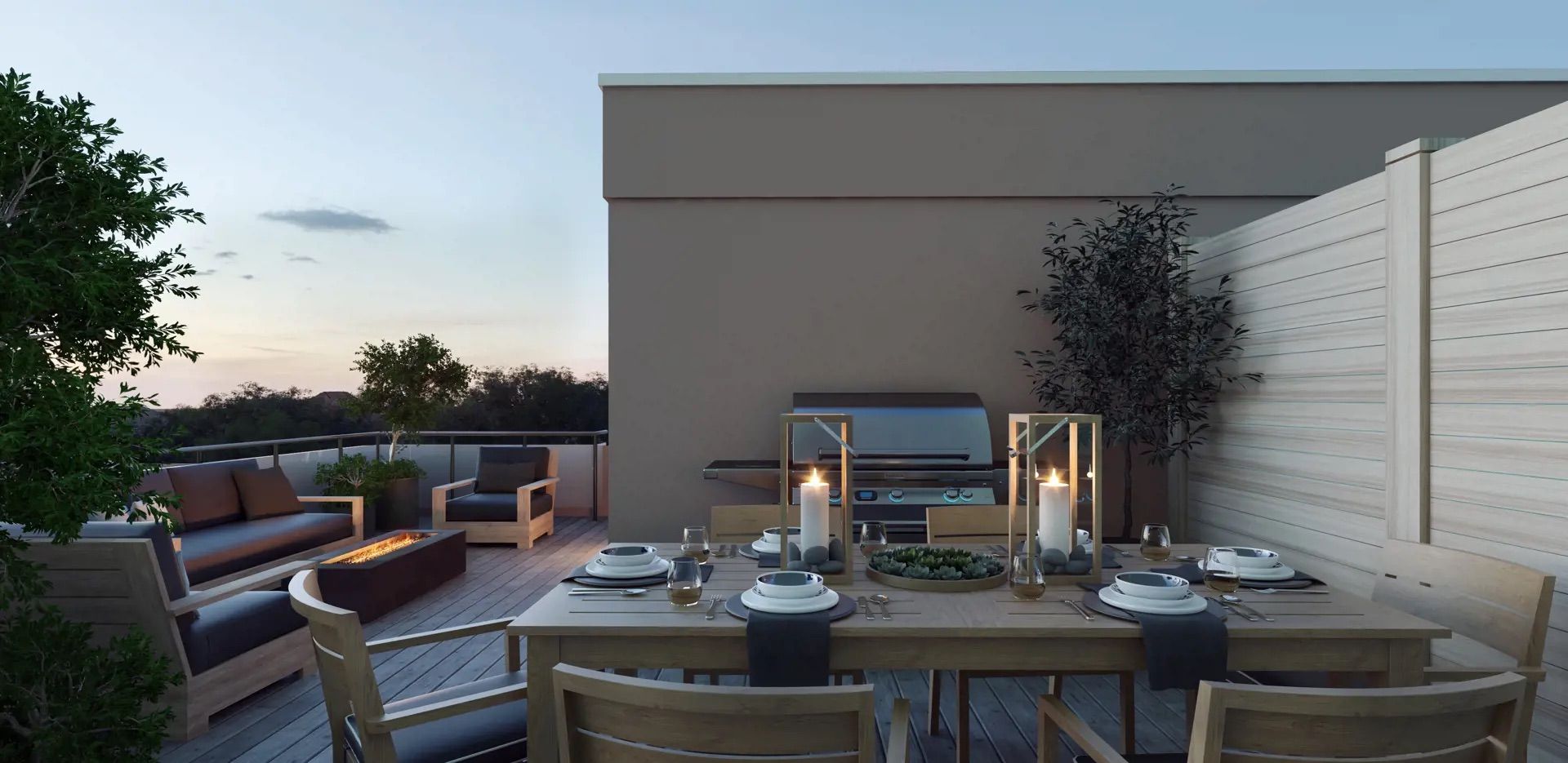 • Private terrace with skyline views for relaxing and hosting gatherings.