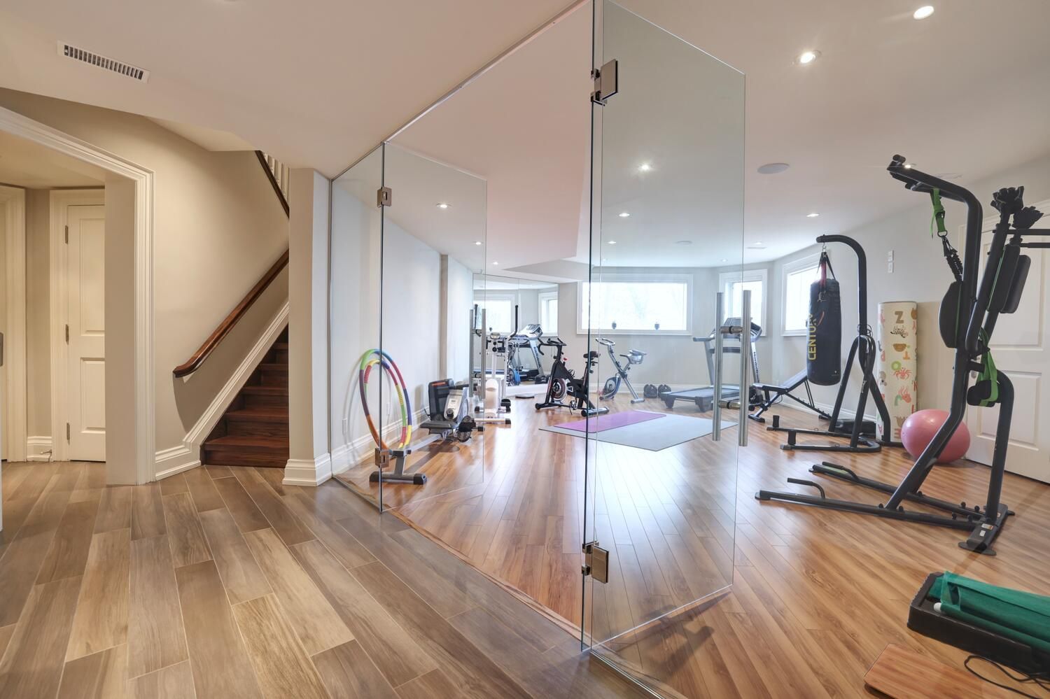 • Entertainment-ready lower level with home theatre, fitness studio, and wine cellar.