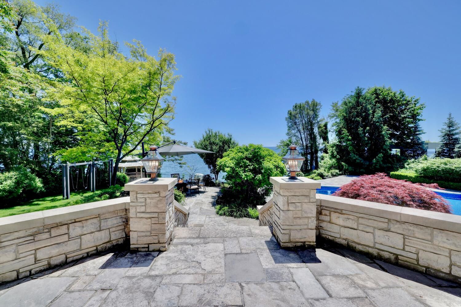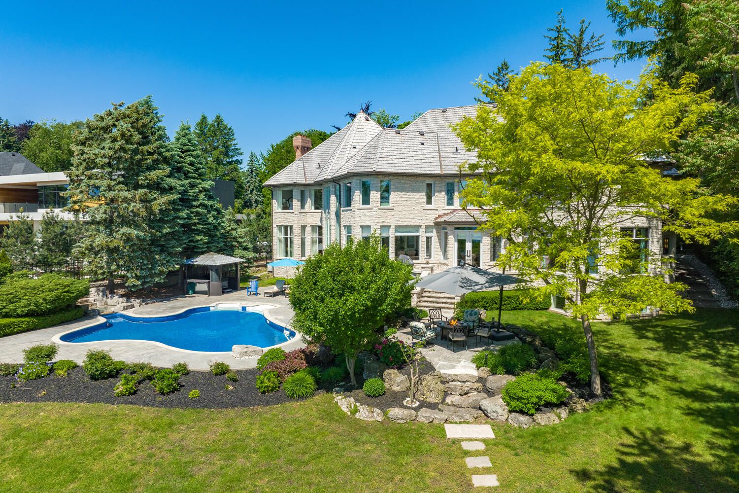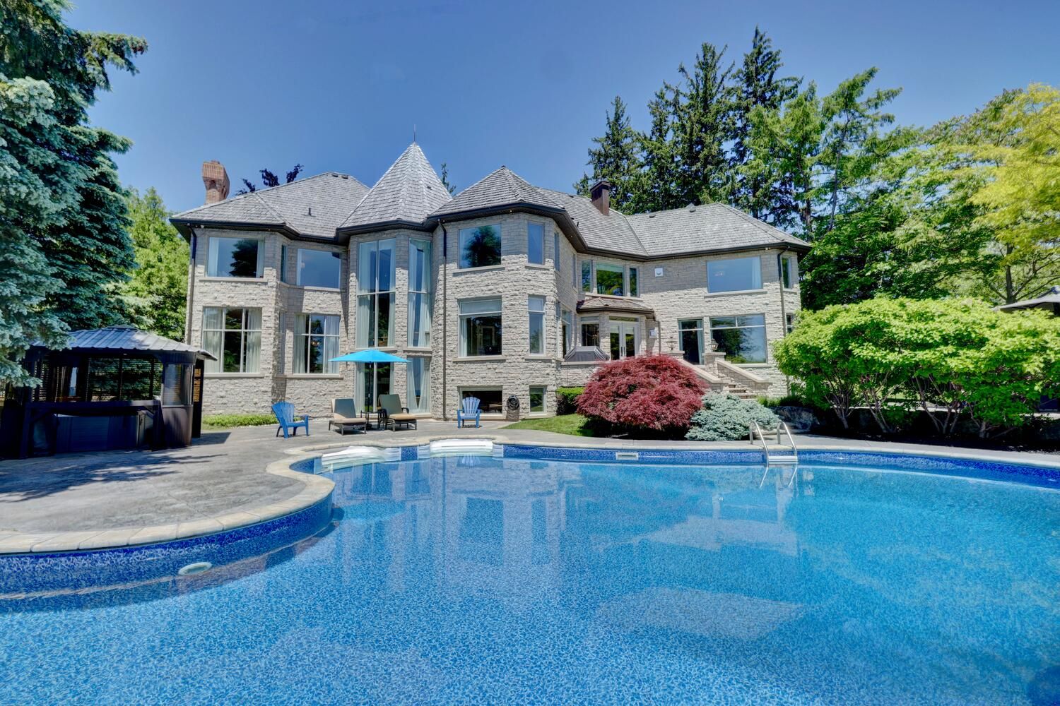 Experience unparalleled waterfront luxury in prestigious burlington within the greater toronto area. This fully renovated 11,563 sq. Ft. Estate showcases world-class amenities, breathtaking lake views, and refined designer finishes throughout. Set on a meticulously landscaped one-acre property with 120 feet of accessible shoreline, the residence features a private dock with boat hoists, a seawall, and resort-style outdoor living. A striking white stone english manor blends timeless architecture with contemporary elegance, following a $4 million transformation completed in 2016-2017 by studio h using only the finest materials. A winding circular driveway leads to an impressive façade and a grand three-tier stone fountain, while the backyard offers a private retreat with a saltwater pool, cascading waterfall, expansive stone terraces, bbq area, gazebo, playground, hot tub, and fragrant perennial gardens along the lake. This 20 room mansion w/10 bathrooms & 7 bedrooms offers utmost luxury. Inside, sweeping panoramic water views and natural light define the home. The main level boasts elegant principal rooms, a dramatic domed two-storey marble foyer overlooking the lake, soaring 10' and 11' ceilings, and a custom selba kitchen designed for both luxury and function. The upper level features six spacious bedrooms, each with a spa-inspired stone bathroom including steam showers and heated floors. The primary suite offers stunning views of the pool, gardens, and lake ontario, along with a lavish ensuite featuring a freestanding neptune tub, glass steam shower, double vanity with alabaster countertop, and separate powder room. The lower level is designed for comfort and entertainment, featuring heated floors, a home theatre, glass wine bar, music studio, recreation room, fitness studio, nanny's suite, steam room, cedar closet, and a climate-controlled wine cellar. Crafted with exceptional materials, this residence is a rare opportunity to own a world-class lakefront estate.