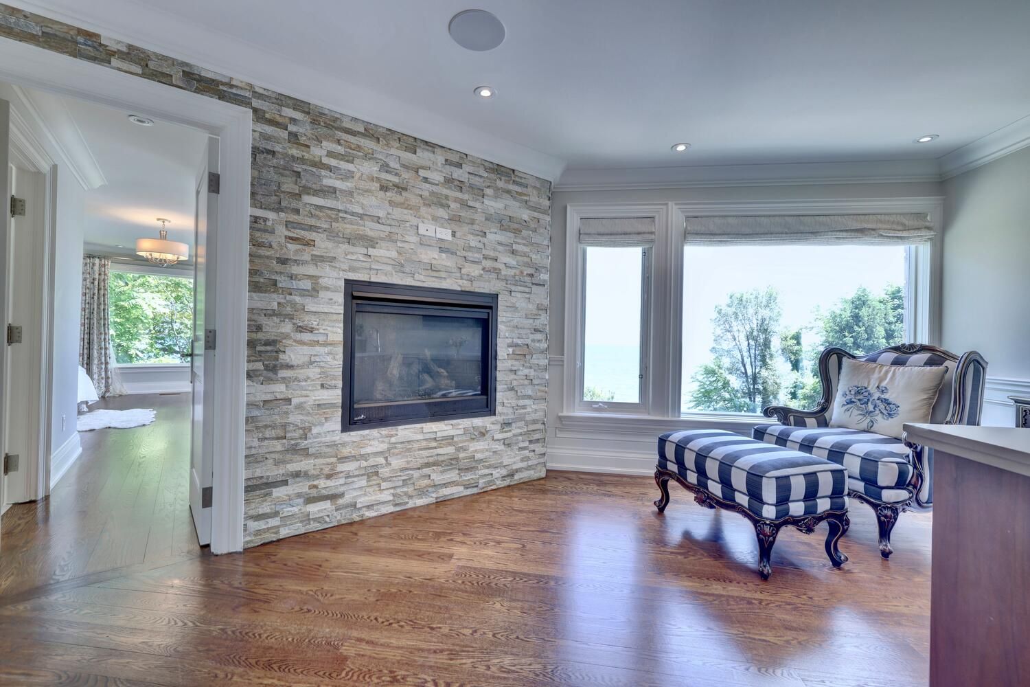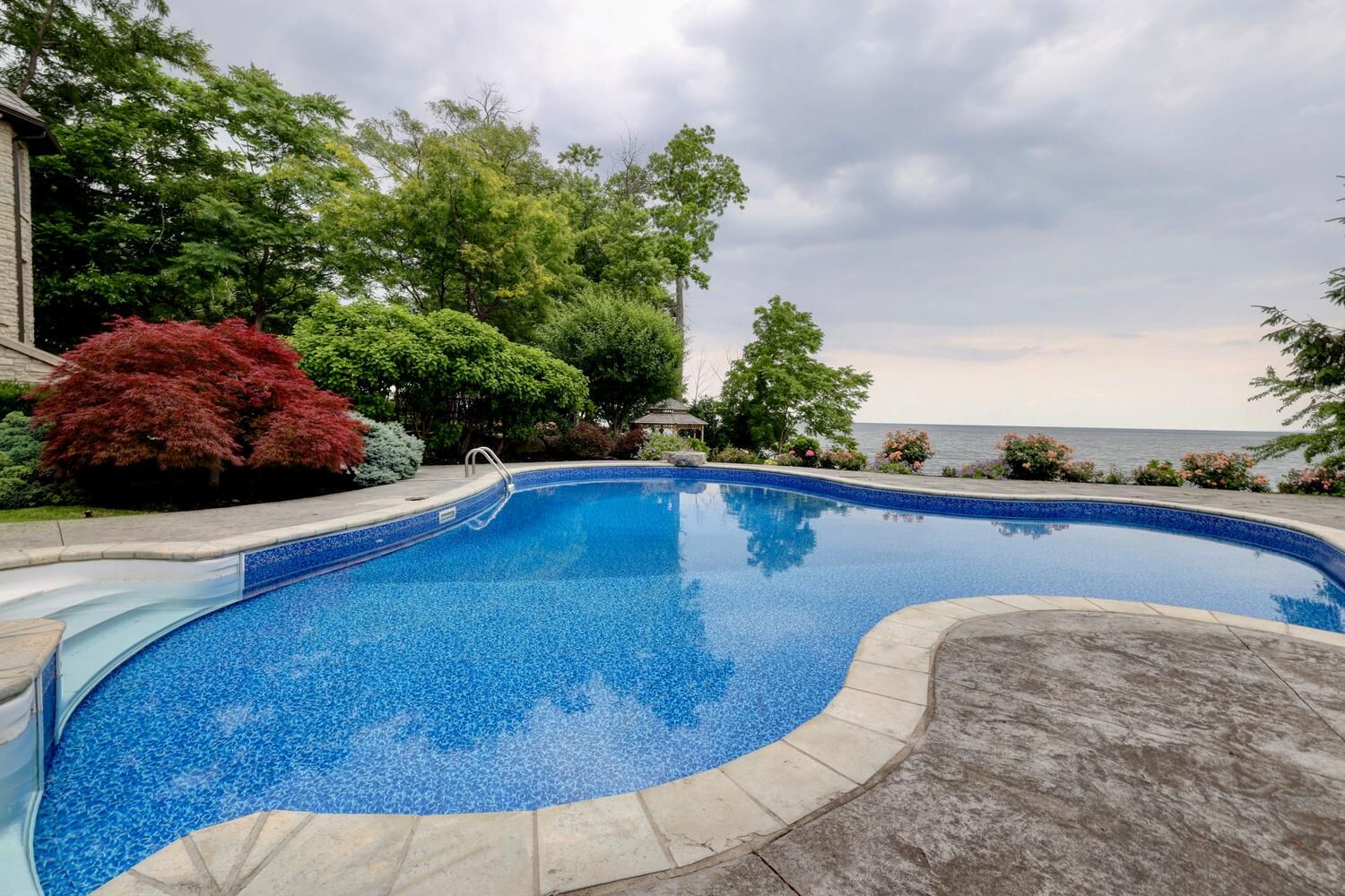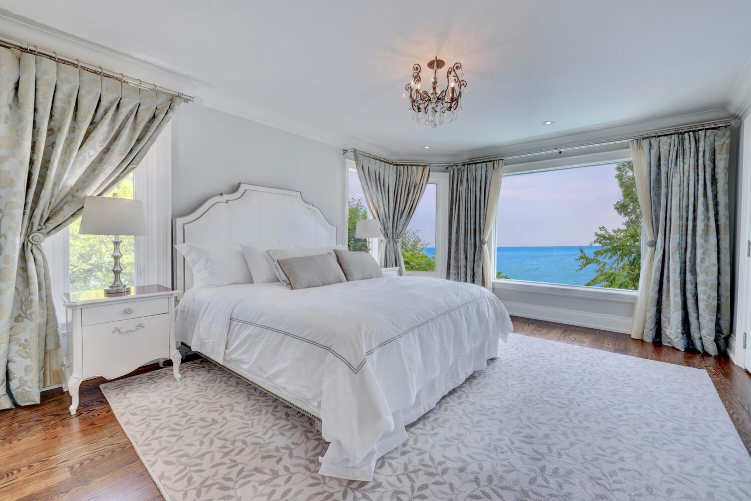 Experience unparalleled waterfront luxury in prestigious burlington within the greater toronto area. This fully renovated 11,563 sq. Ft. Estate showcases world-class amenities, breathtaking lake views, and refined designer finishes throughout. Set on a meticulously landscaped one-acre property with 120 feet of accessible shoreline, the residence features a private dock with boat hoists, a seawall, and resort-style outdoor living. A striking white stone english manor blends timeless architecture with contemporary elegance, following a $4 million transformation completed in 2016-2017 by studio h using only the finest materials. A winding circular driveway leads to an impressive façade and a grand three-tier stone fountain, while the backyard offers a private retreat with a saltwater pool, cascading waterfall, expansive stone terraces, bbq area, gazebo, playground, hot tub, and fragrant perennial gardens along the lake. This 20 room mansion w/10 bathrooms & 7 bedrooms offers utmost luxury. Inside, sweeping panoramic water views and natural light define the home. The main level boasts elegant principal rooms, a dramatic domed two-storey marble foyer overlooking the lake, soaring 10' and 11' ceilings, and a custom selba kitchen designed for both luxury and function. The upper level features six spacious bedrooms, each with a spa-inspired stone bathroom including steam showers and heated floors. The primary suite offers stunning views of the pool, gardens, and lake ontario, along with a lavish ensuite featuring a freestanding neptune tub, glass steam shower, double vanity with alabaster countertop, and separate powder room. The lower level is designed for comfort and entertainment, featuring heated floors, a home theatre, glass wine bar, music studio, recreation room, fitness studio, nanny's suite, steam room, cedar closet, and a climate-controlled wine cellar. Crafted with exceptional materials, this residence is a rare opportunity to own a world-class lakefront estate.