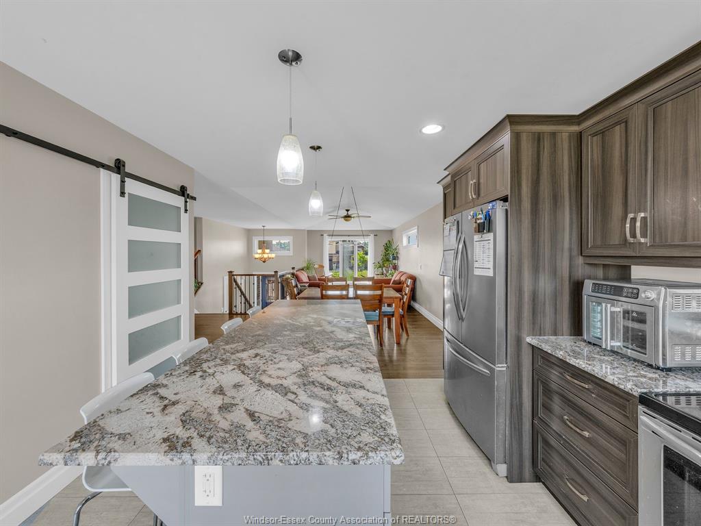 You won't want to miss this sprawling 5+ bedroom, 3-bath dethomasis built home with bonus room in amherstburg’s sought-after kingsbridge subdivision. Offering an amazing floor plan with ample living space for everyone. The layout includes a generous primary suite with two walk-in closets and a private ensuite, plus a fully finished basement with a cozy gas fireplace, ideal for family movie nights or a teen retreat. Rough in for a wet bar. The fenced backyard provides room for play, pets, and outdoor gatherings. Large deck with large concrete patio. Great kitchen and convenient main floor laundry/pantry. Plenty of space for a growing family, guests and a home office, plus the benefit of living in a vibrant, expanding neighbourhood close to schools, parks, and amenities, this property offers great value for the space. A smart opportunity to make the growing community of amherstburg your next home!