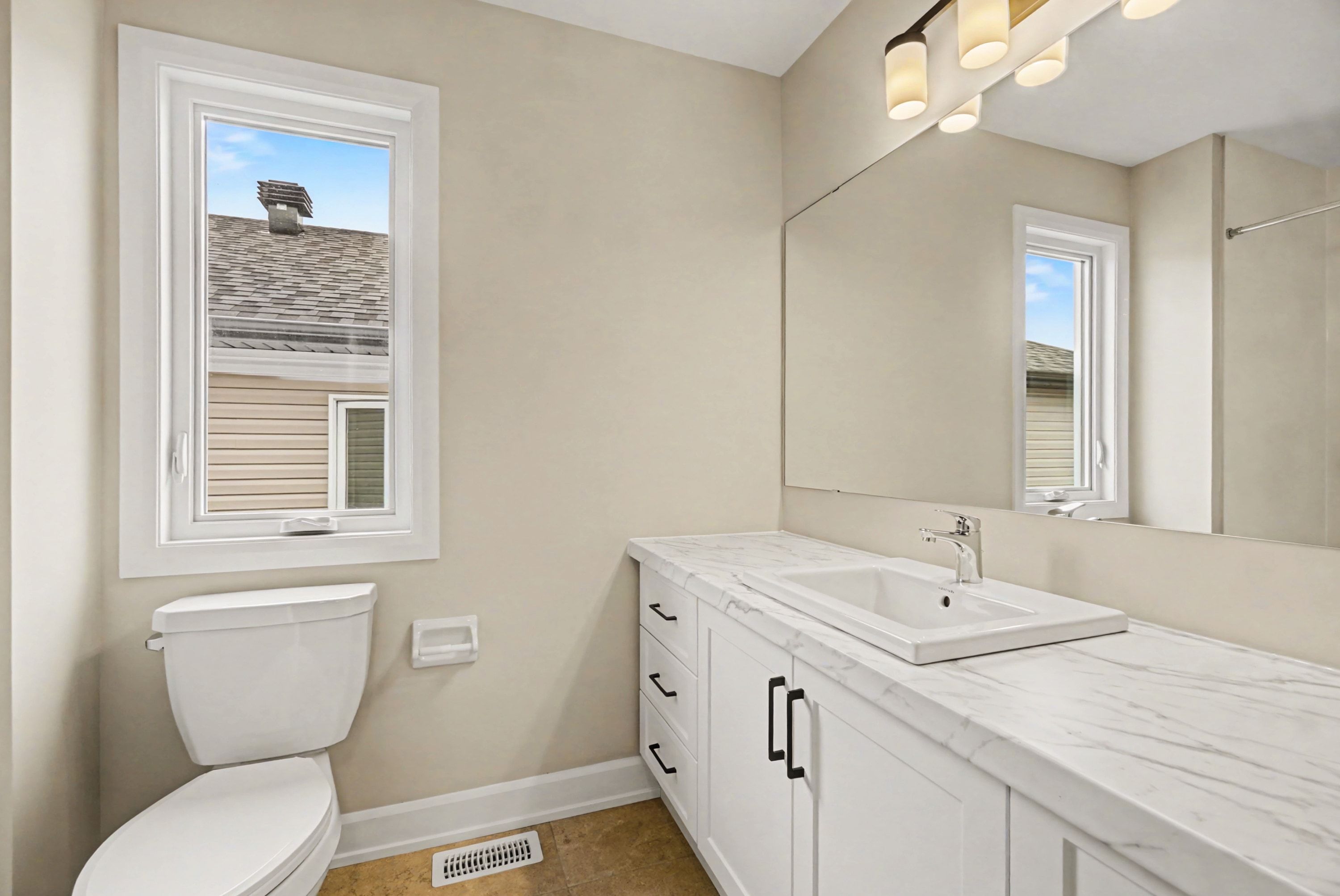 • Generous great room designed for relaxing and entertaining with contemporary finishes.