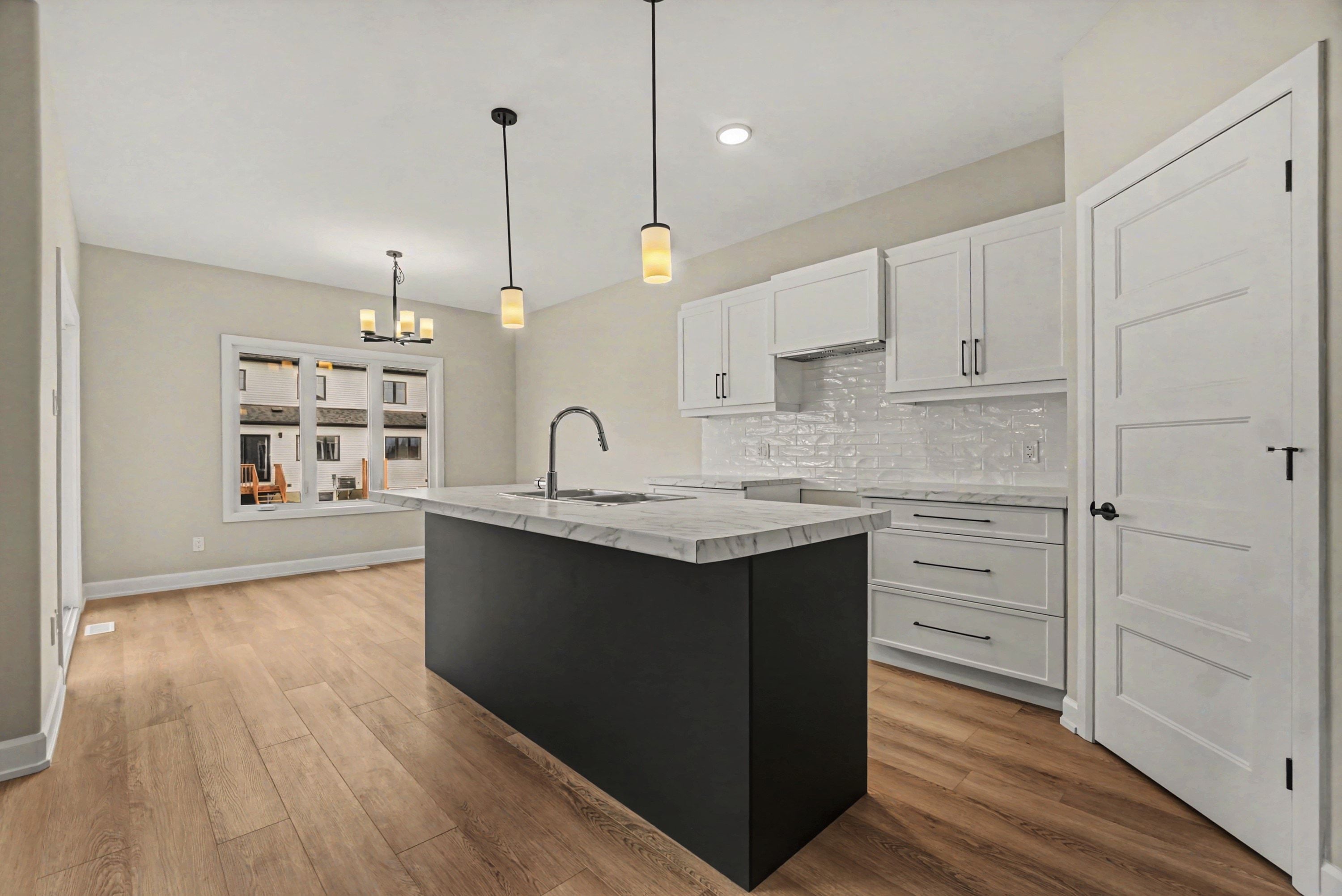 • Modern open-concept design with a spacious gourmet kitchen and walk-in pantry.