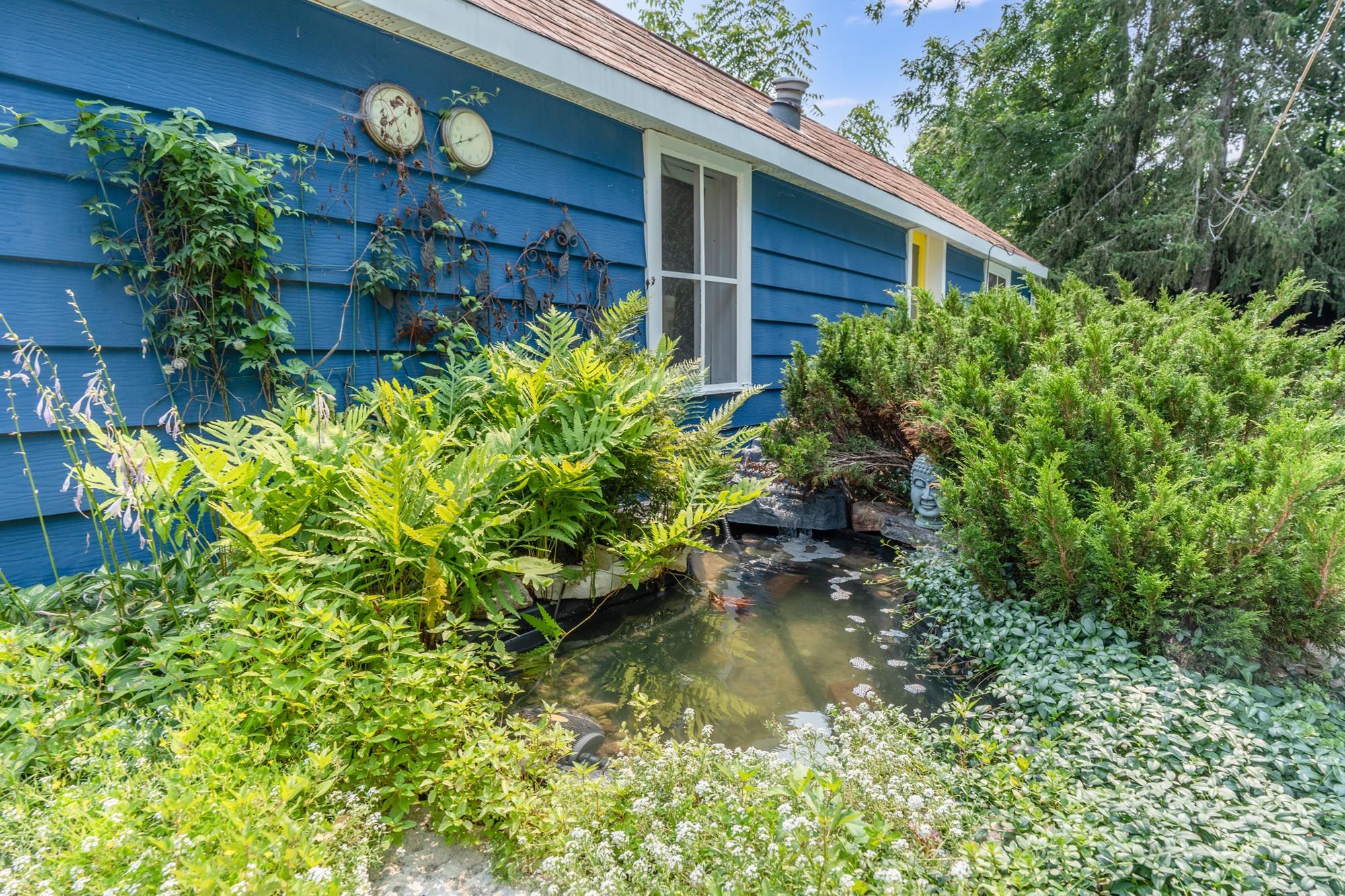 • Backyard oasis featuring an inground pool, pool house, and lush landscaping.