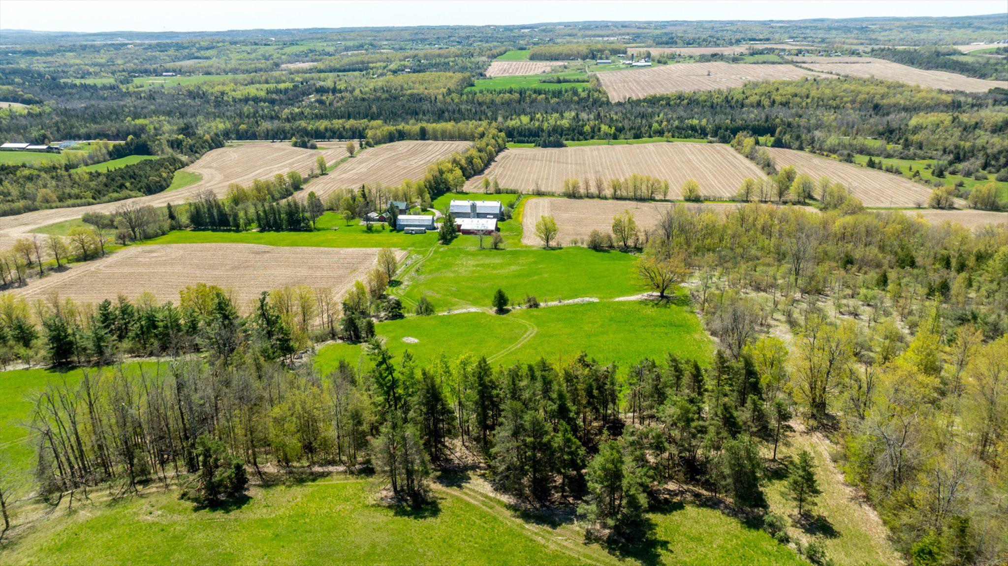 "own your own private estate" cavan area 209+ acre estate type property nestled on sheltered hillside. Property consists of fertile farmland, maple bush and wetlands. Spectacular setting and views, private driveway. Outbuildings are in very good condition and lend themselves well to livestock or storage. Home is 1 3/4 storey brick, built in the 1900s, upgrades over the years include; steel roof, newer windows, doors and walkways. Impressive front entrance foyer has extra height and circular staircase in incredible condition. Original trim and floors throughout the house, from its bay windows in the living room and original dining room to the 2nd staircase off the kitchen, which leads to an upper bedroom. Well designed for country living, attached woodshed and covered walkway to garage, as well as plenty of storage and deck on which to bbq, enjoy the birds and wildlife. Good schools, easy access to #115 or #7 hwy. Truly a hidden treasure in the rolling picturesque cavan hills!