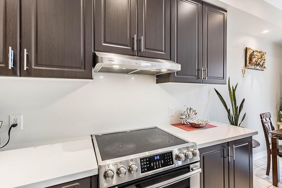 • Modern kitchen equipped with quartz countertops and stainless steel appliances.
