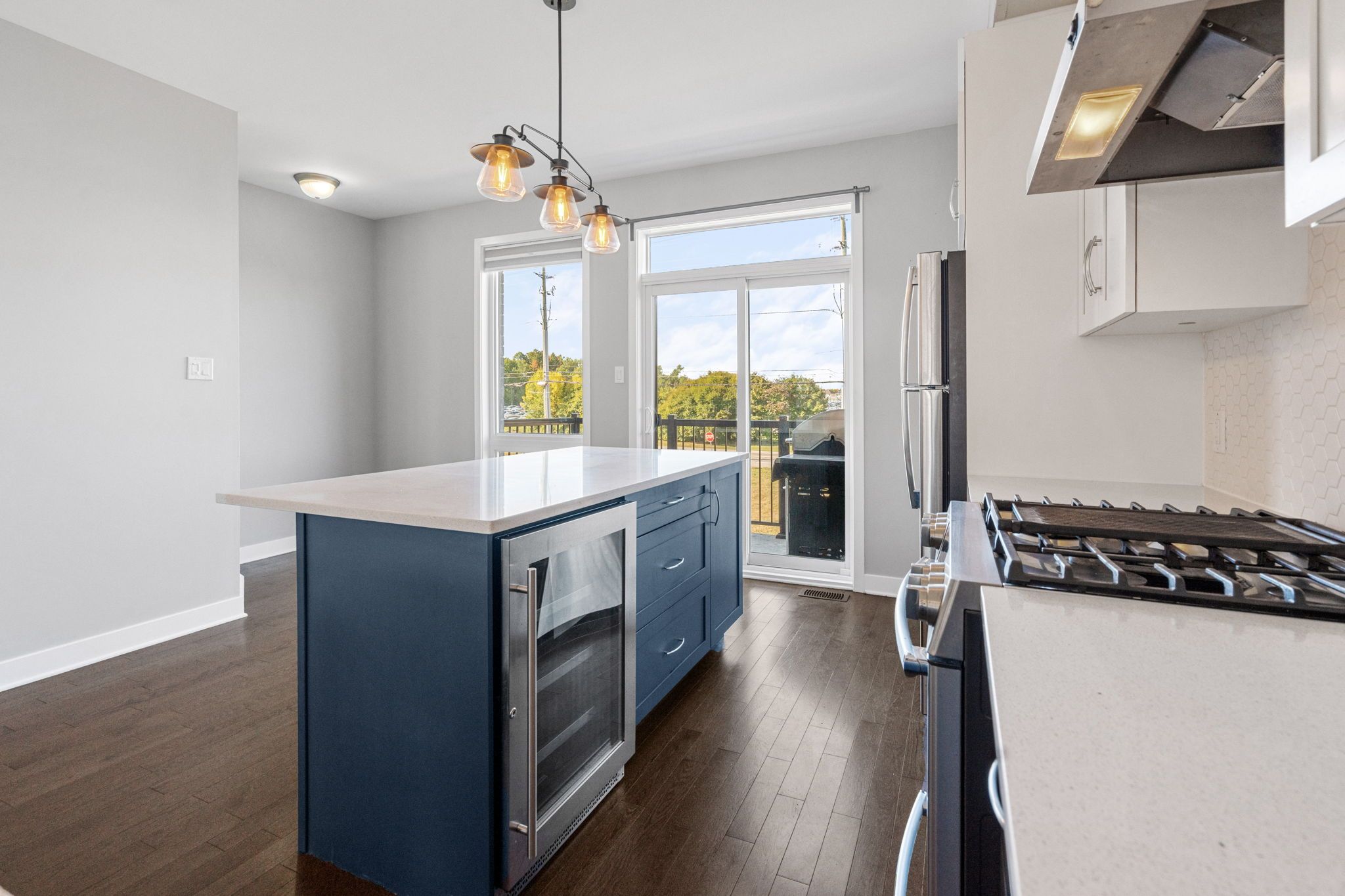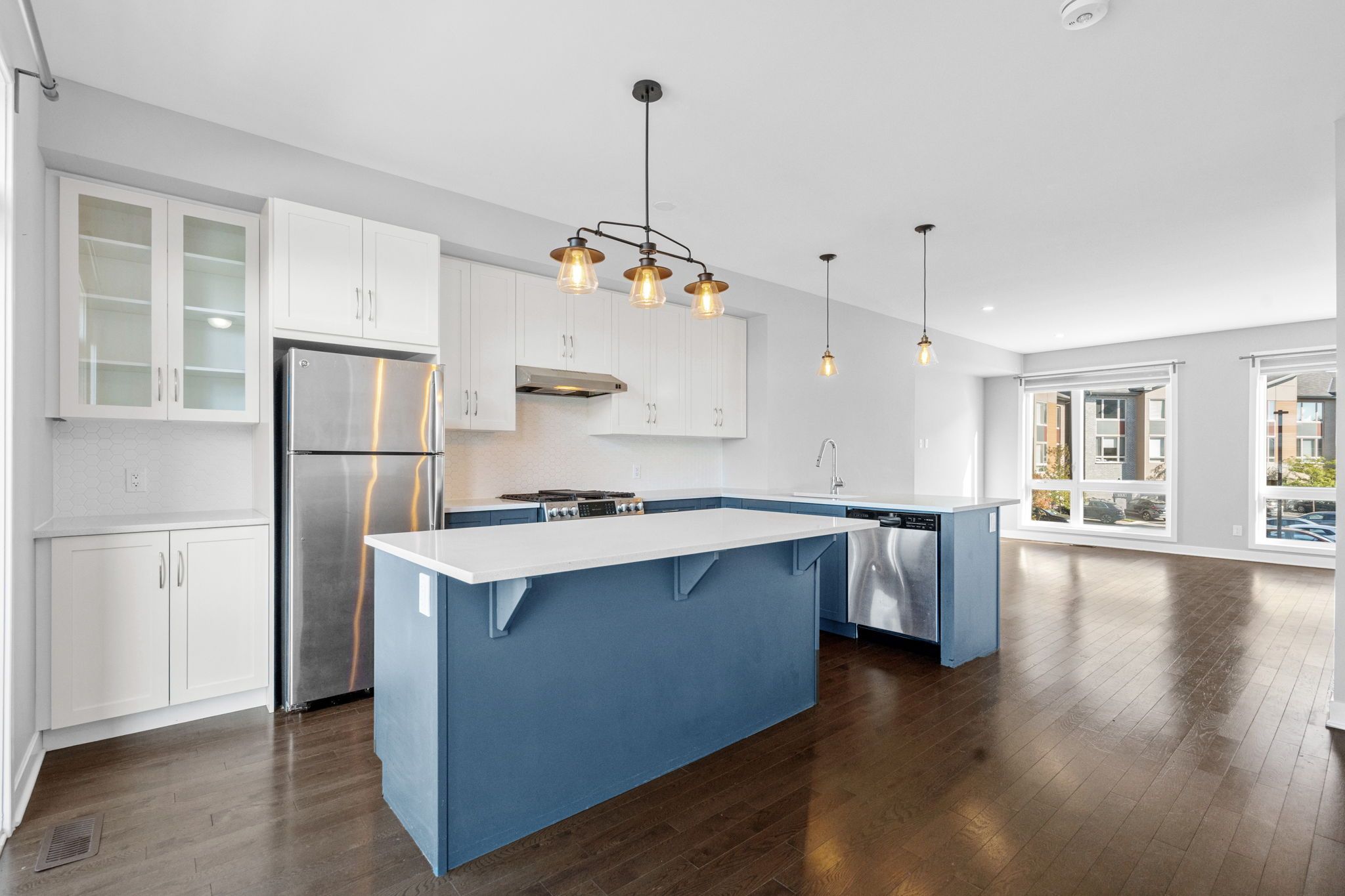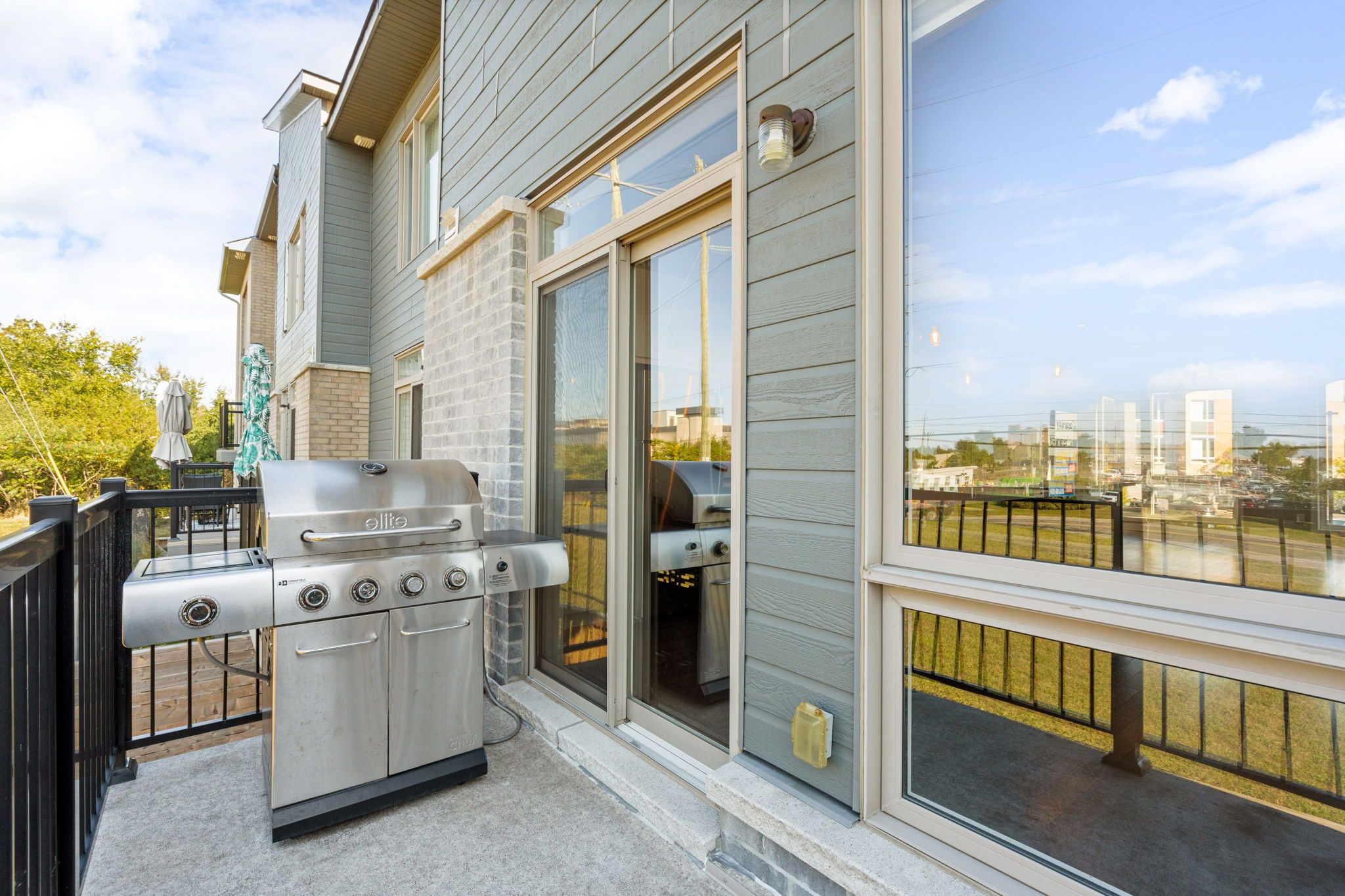 Welcome to windsor park/hunt club, where convenience meets comfort just steps from shops, restaurants, parks, and transit. This large "chandler" model modern townhome boasts over 1660 sq ft of living space. Features 3 above grade bedrooms , 2. 5 bathrooms, cozy den, and stylish upgrades throughout, including a bright open-concept main floor with a modern kitchen with quartz countertops, gas stove, stainless steel appliances, full height upper cabinets and oversized windows. The primary bedroom offers a walk-in closet and spacious ensuite with a glass shower, while laundry is conveniently located on the bedroom level. A finished basement/den provides versatile space for a gym, office, or extra storage, and outdoor living is enhanced by a private backyard and second-storey balcony complete with gas line for bbq. With a one-car garage, driveway parking, and neutral finishes, this home is move-in ready. Ideally situated on a quiet street, this home offers close proximity to shopping and groceries. Its just 15 minutes from downtown via the airport parkway and only a few minutes from ottawa international airport making it perfect for professionals, young families, or anyone seeking low-maintenance living in a connected neighbourhood.