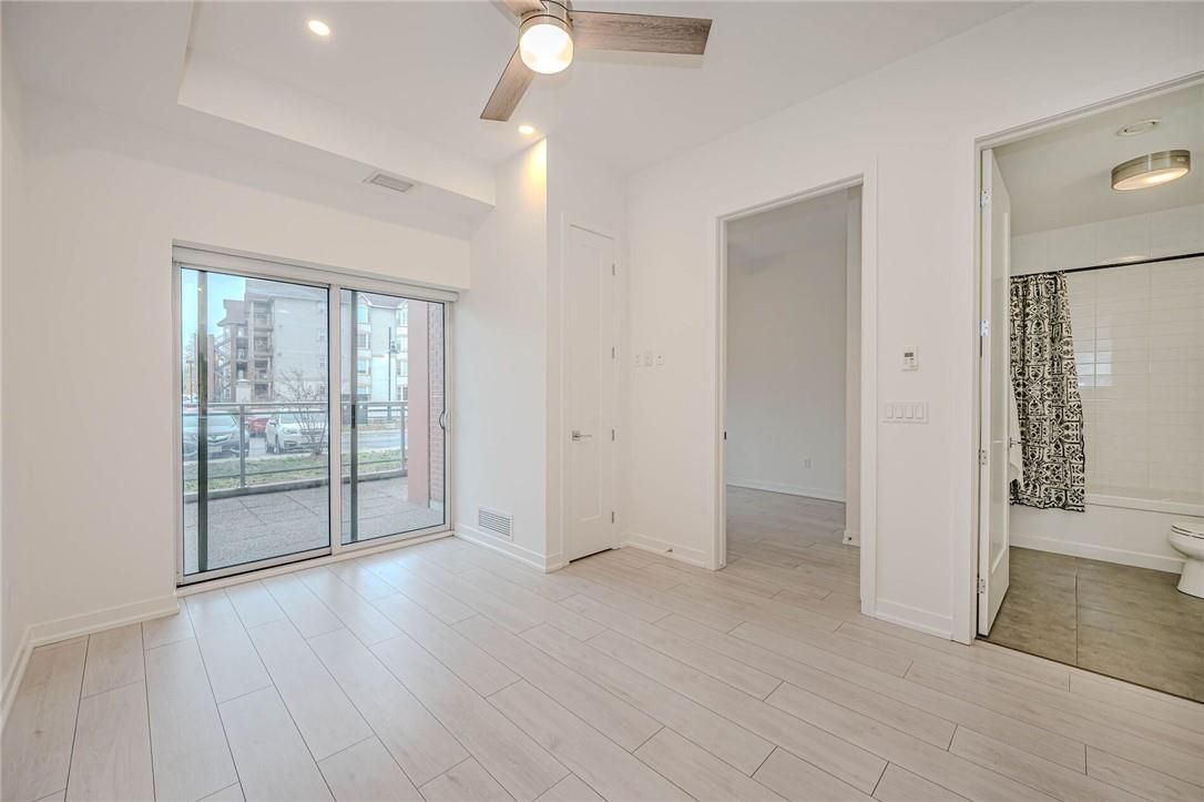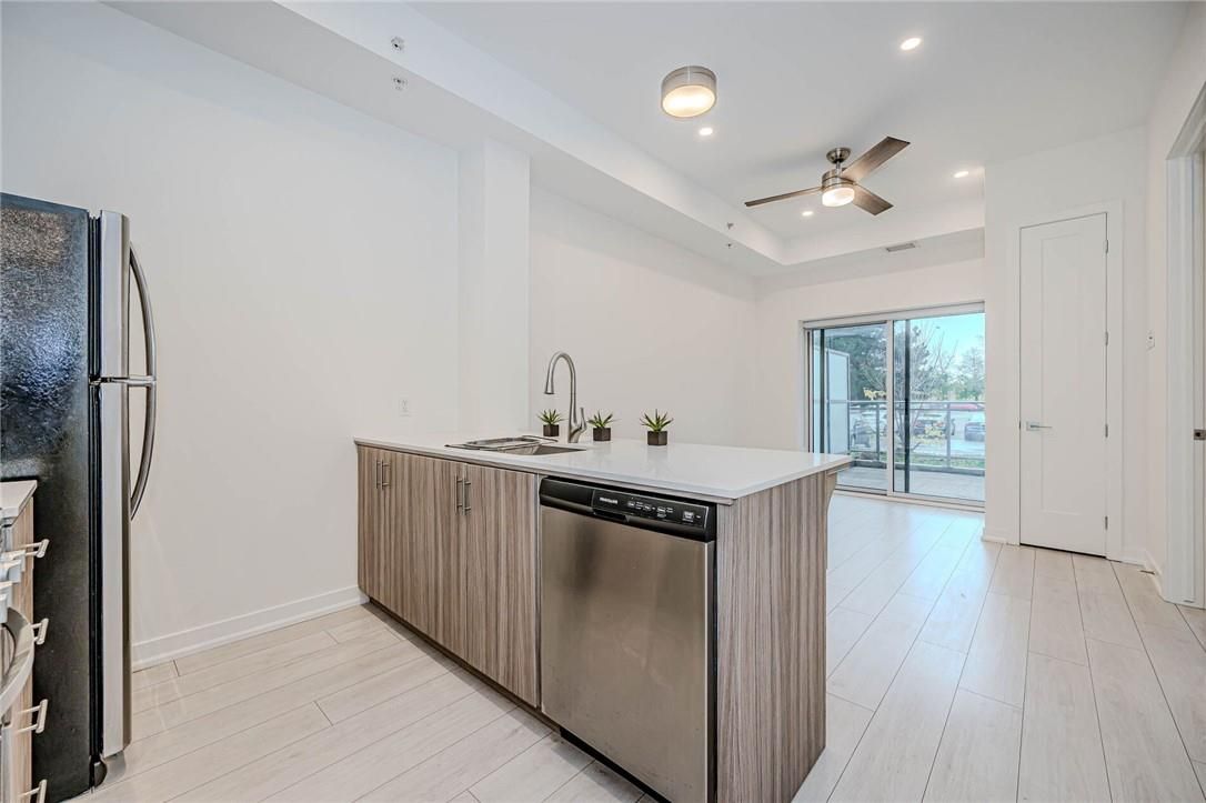 Recently updated and superbly suited for seniors and entry buyers looking in burlington! No elevator required-this ground-level, 1-bedroom plus den (battersea model) is the epitome of easy condo living and has a rare walkout to an extra-large private outdoor terrace, perfect for pet lovers and sun worshippers alike. Quiet, end-of-cul-de-sac building, located off of tobyn drive in desirable tansley woods, with walking trails, community centre and parks, only minutes from main travel routes. This unit has been upgraded recently with new luxury vinyl flooring throughout, hardware &designer paint. Bright and airy 10ft ceilings (only on 1st and 4th floors), 2 ceiling fans, extra large windows with coverings, primary bedroom with ensuite privilege plus flexible separate den space for office, tv area or extra guests(can accommodate wall bed). All stainless steel appliances, in-suite laundry, 1 underground parking spot and 1 locker included. Condo fee includes heat and water, building maintenance, snow removal, visitor parking, party room and more. Flexible possession available!