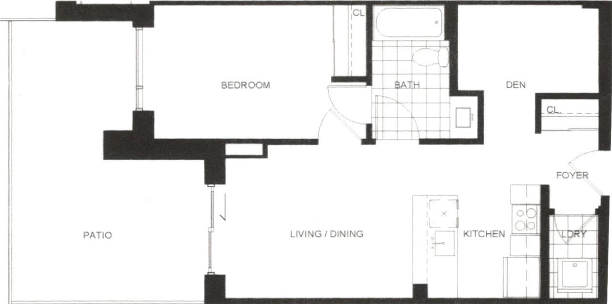 • Bright unit with high ceilings and large windows for natural light.