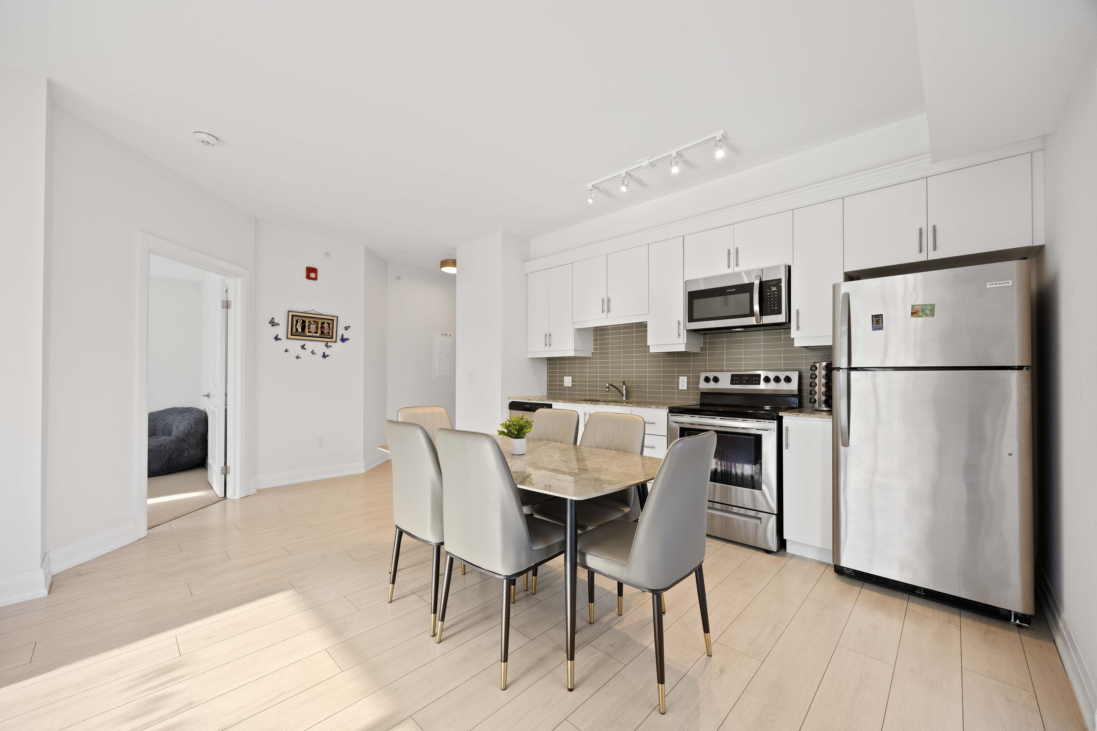 • Bright corner suite with 9-foot ceilings and large windows for natural light.